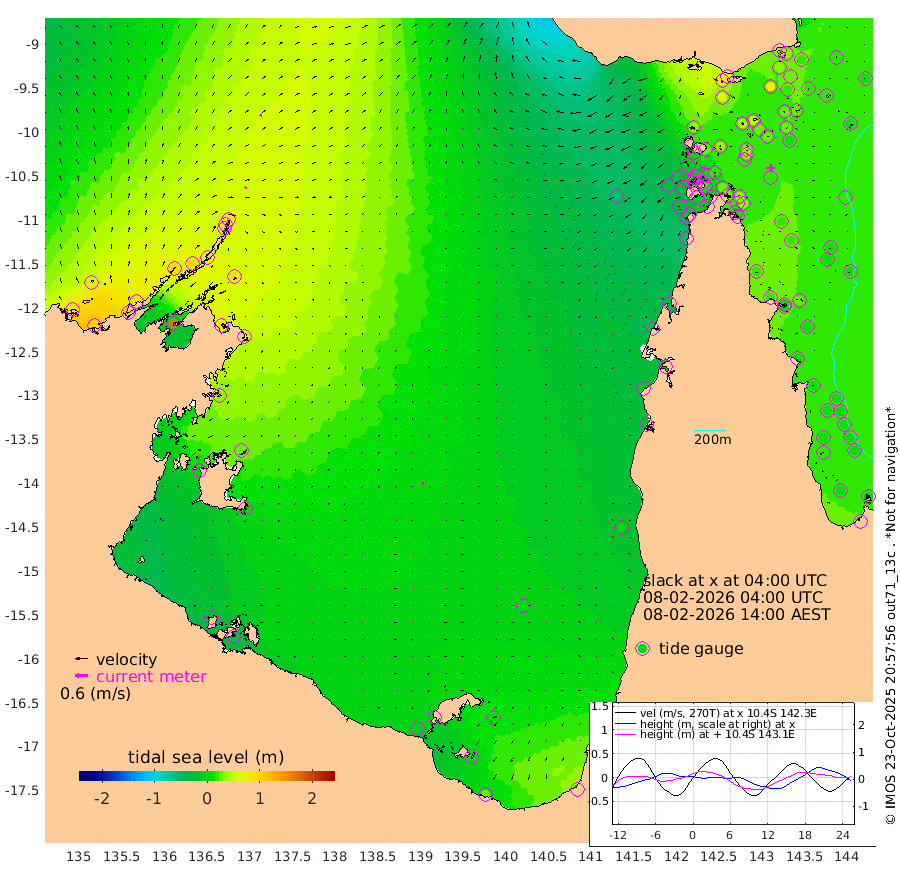 8cm/s 57T +3cm/s rms + 7cm/s -42T. ARA-GOC87 57m 11cm/s -151T +3cm/s rms + 2cm/s -2T. ARA-GOC87 60m 11cm/s 36T +2cm/s rms + 3cm/s 61T. ARA-GOC87 47m 35cm Daru 32cm Bobo Island 11cm Meer Island Barge 19cm Bramble Cay 24cm Unnamed Cay 21cm Pearce Cay 18cm Stephens Island 16cm Merrie England Shoals 30cm Mutacomal Reef 18cm Darnley Island Barge 14cm East Cay 24cm Yorke Island Barge 25cm Rennel Island 26cm Aureed Island 26cm Dungeness Reef 50cm Zagai Island 45cm Yam Island 74cm Dauan Island 70cm Saibai Island 55cm Phipi Reef 63cm Warrior Reef - West 32cm Mabuiag Island Barge 13cm Half Way Island 28cm Coconut Island 20cm Dugong Islet 30cm Poll Island 20cm Kirkcaldie Reef 31cm Suarji Island 31cm Sue Islet -10cm Hawkesbury Island 14cm Alert Patches 20cm Twin Island 4cm Badu Island 26cm St Pauls (Moa Island) 7cm Kubin (Moa Island) 14cm Ince Point 3cm Thursday Island 8cm Nardana Patches 3cm Turtle Head 0cm Round Island -14cm Goods Island -36cm Booby Island -30cm White Rocks Area -53cm Carpentaria 20cm Papou Point -24cm Bampfield Head -37cm Crab Island -28cm Red Wallis Island -4cm Packe Island 16cm Harrington Reef -8cm Herald Camp 8cm Sharp Point -9cm Red Island Point 3cm Possession Island 28cm Alpha Rock 23cm Frederick Point 34cm Wyborn Reef Light 36cm Tetley Island 18cm Triangle Reef 10cm Turtle Head Island 11cm Maclennan Cay 7cm Raine Island 21cm Mcsweeny Reef 19cm Collette Reef 14cm Shadwell Reef 18cm Hannibal Island 17cm Round Point -58cm Vrilya Point 9cm Cape Grenville 13cm Hicks Island 25cm Sir Charles Hardy Island 3cm Harvey Island 8cm Kay Reef 11cm Rocky Island 12cm Chapman Island 10cm Ham Reef 10cm Jubilee Reef 6cm Night Island 8cm Unnamed Reef No. 3 8cm Morris Island 3cm 1st 3 Mile Opening 5cm Creech Reef 16cm Fife Island 7cm Eden Reef 3cm Stanley Island 6cm Normanby River 76cm Yabooma Island 99cm Hutchison River 78cm Elcho Island 73cm North West Crocodile Island 74cm Cape Wessel 83cm Stevens Island 94cm Guluwuru Island 72cm Hopeful Bay 64cm Auster Point 68cm Two Island Bay 101cm Cadell Strait 165cm Mallison Island 81cm Melville Bay (Gove Harbour) 85cm Truant Island 59cm Cape Arnhem 32cm Cape Grey 26cm Hawk Island -4cm Milner Bay (Groote Eylandt) -5cm Cape Beatrice -36cm West Island -45cm Centre Island -2cm Mornington Island -2cm West Wellesley Islands 14cm Bountiful Island 24cm Albert River Mouth 5cm Sweers Island 14cm Karumba 1cm Nassau River Offshore 2cm Christmas Creek -16cm Archer River -13cm Boyd Point -11cm Weipa (Humbug Point) -48cm Pennefather River -33cm Cullen Point