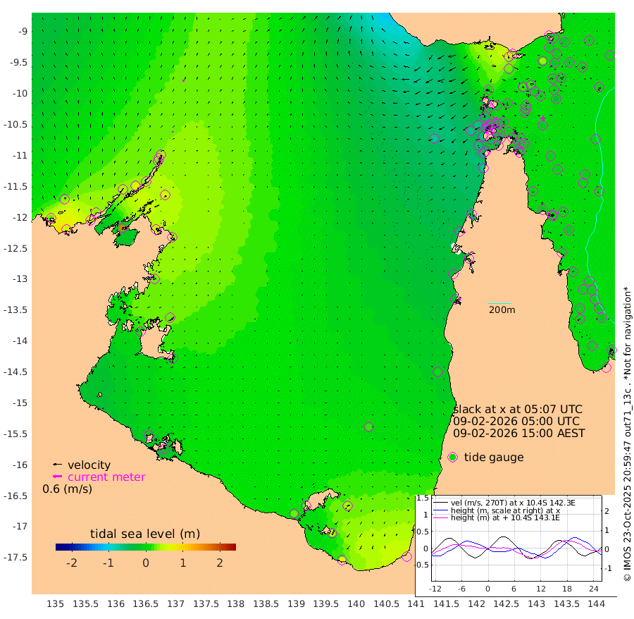 9cm/s 12T +3cm/s rms + 7cm/s -42T. ARA-GOC87 57m 9cm/s -136T +3cm/s rms + 2cm/s -2T. ARA-GOC87 60m 12cm/s 8T +2cm/s rms + 3cm/s 61T. ARA-GOC87 47m 4cm Daru 0cm Bobo Island -6cm Meer Island Barge -4cm Bramble Cay -5cm Unnamed Cay -13cm Pearce Cay -10cm Stephens Island -11cm Merrie England Shoals -2cm Mutacomal Reef -5cm Darnley Island Barge -6cm East Cay -2cm Yorke Island Barge -7cm Rennel Island -4cm Aureed Island -6cm Dungeness Reef 22cm Zagai Island 16cm Yam Island 48cm Dauan Island 50cm Saibai Island 29cm Phipi Reef 33cm Warrior Reef - West 6cm Mabuiag Island Barge -16cm Half Way Island -5cm Coconut Island -13cm Dugong Islet -3cm Poll Island -10cm Kirkcaldie Reef -4cm Suarji Island 3cm Sue Islet -47cm Hawkesbury Island -21cm Alert Patches -15cm Twin Island -29cm Badu Island -9cm St Pauls (Moa Island) -29cm Kubin (Moa Island) -19cm Ince Point -30cm Thursday Island -24cm Nardana Patches -31cm Turtle Head -35cm Round Island -48cm Goods Island -65cm Booby Island -63cm White Rocks Area -68cm Carpentaria -11cm Papou Point -61cm Bampfield Head -57cm Crab Island -58cm Red Wallis Island -38cm Packe Island -20cm Harrington Reef -40cm Herald Camp 2cm Sharp Point -35cm Red Island Point -31cm Possession Island -3cm Alpha Rock -13cm Frederick Point -2cm Wyborn Reef Light -1cm Tetley Island -1cm Triangle Reef -30cm Turtle Head Island -7cm Maclennan Cay -5cm Raine Island -7cm Mcsweeny Reef -5cm Collette Reef -2cm Shadwell Reef -7cm Hannibal Island -9cm Round Point -70cm Vrilya Point -11cm Cape Grenville -7cm Hicks Island 5cm Sir Charles Hardy Island -3cm Harvey Island -9cm Kay Reef -4cm Rocky Island -2cm Chapman Island -2cm Ham Reef -4cm Jubilee Reef -7cm Night Island -5cm Unnamed Reef No. 3 -7cm Morris Island -11cm 1st 3 Mile Opening -9cm Creech Reef -1cm Fife Island -7cm Eden Reef -11cm Stanley Island -11cm Normanby River 29cm Yabooma Island 46cm Hutchison River 36cm Elcho Island 33cm North West Crocodile Island 42cm Cape Wessel 42cm Stevens Island 69cm Guluwuru Island 37cm Hopeful Bay 28cm Auster Point 33cm Two Island Bay 58cm Cadell Strait 161cm Mallison Island 55cm Melville Bay (Gove Harbour) 56cm Truant Island 43cm Cape Arnhem 27cm Cape Grey 24cm Hawk Island 8cm Milner Bay (Groote Eylandt) 10cm Cape Beatrice -9cm West Island -15cm Centre Island 28cm Mornington Island 26cm West Wellesley Islands 45cm Bountiful Island 65cm Albert River Mouth 45cm Sweers Island 52cm Karumba 21cm Nassau River Offshore 12cm Christmas Creek -16cm Archer River -20cm Boyd Point -19cm Weipa (Humbug Point) -53cm Pennefather River -45cm Cullen Point