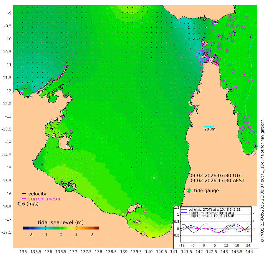 16cm/s -23T +3cm/s rms + 7cm/s -42T. ARA-GOC87 57m 2cm/s -35T +3cm/s rms + 2cm/s -2T. ARA-GOC87 60m 16cm/s -24T +2cm/s rms + 3cm/s 61T. ARA-GOC87 47m -20cm Daru -14cm Bobo Island -3cm Meer Island Barge -6cm Bramble Cay -15cm Unnamed Cay -23cm Pearce Cay -12cm Stephens Island -12cm Merrie England Shoals -17cm Mutacomal Reef -5cm Darnley Island Barge -1cm East Cay -12cm Yorke Island Barge -21cm Rennel Island -13cm Aureed Island -32cm Dungeness Reef -28cm Zagai Island -30cm Yam Island -49cm Dauan Island -31cm Saibai Island -58cm Phipi Reef -29cm Warrior Reef - West -62cm Mabuiag Island Barge -19cm Half Way Island -28cm Coconut Island -23cm Dugong Islet -35cm Poll Island -33cm Kirkcaldie Reef -52cm Suarji Island -28cm Sue Islet -106cm Hawkesbury Island -64cm Alert Patches -53cm Twin Island -107cm Badu Island -58cm St Pauls (Moa Island) -84cm Kubin (Moa Island) -66cm Ince Point -75cm Thursday Island -73cm Nardana Patches -87cm Turtle Head -87cm Round Island -104cm Goods Island -108cm Booby Island -107cm White Rocks Area -65cm Carpentaria -50cm Papou Point -108cm Bampfield Head -87cm Crab Island -93cm Red Wallis Island -82cm Packe Island -28cm Harrington Reef -82cm Herald Camp -7cm Sharp Point -75cm Red Island Point -69cm Possession Island -33cm Alpha Rock -41cm Frederick Point -25cm Wyborn Reef Light -27cm Tetley Island -7cm Triangle Reef -46cm Turtle Head Island -5cm Maclennan Cay -6cm Raine Island -15cm Mcsweeny Reef -10cm Collette Reef -6cm Shadwell Reef -9cm Hannibal Island -10cm Round Point -77cm Vrilya Point -3cm Cape Grenville -6cm Hicks Island 2cm Sir Charles Hardy Island -1cm Harvey Island 0cm Kay Reef -3cm Rocky Island -2cm Chapman Island 2cm Ham Reef -2cm Jubilee Reef -1cm Night Island 2cm Unnamed Reef No. 3 -4cm Morris Island -13cm 1st 3 Mile Opening -3cm Creech Reef 2cm Fife Island 1cm Eden Reef 0cm Stanley Island 2cm Normanby River -83cm Yabooma Island -93cm Hutchison River -75cm Elcho Island -72cm North West Crocodile Island -21cm Cape Wessel -57cm Stevens Island -6cm Guluwuru Island -48cm Hopeful Bay -46cm Auster Point -36cm Two Island Bay -55cm Cadell Strait 108cm Mallison Island -17cm Melville Bay (Gove Harbour) -18cm Truant Island -5cm Cape Arnhem -6cm Cape Grey 6cm Hawk Island 17cm Milner Bay (Groote Eylandt) 21cm Cape Beatrice 37cm West Island 39cm Centre Island 45cm Mornington Island 44cm West Wellesley Islands 33cm Bountiful Island 47cm Albert River Mouth 39cm Sweers Island 41cm Karumba 25cm Nassau River Offshore 7cm Christmas Creek -28cm Archer River -36cm Boyd Point -45cm Weipa (Humbug Point) -54cm Pennefather River -56cm Cullen Point
