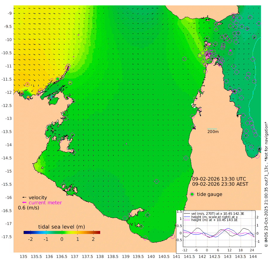 16cm/s 123T +3cm/s rms + 7cm/s -42T. ARA-GOC87 57m 17cm/s -4T +3cm/s rms + 2cm/s -2T. ARA-GOC87 60m 18cm/s 112T +2cm/s rms + 3cm/s 61T. ARA-GOC87 47m -28cm Daru -34cm Bobo Island -41cm Meer Island Barge -39cm Bramble Cay -35cm Unnamed Cay -30cm Pearce Cay -37cm Stephens Island -36cm Merrie England Shoals -30cm Mutacomal Reef -44cm Darnley Island Barge -43cm East Cay -39cm Yorke Island Barge -30cm Rennel Island -38cm Aureed Island -22cm Dungeness Reef -19cm Zagai Island -13cm Yam Island -5cm Dauan Island -21cm Saibai Island 2cm Phipi Reef -22cm Warrior Reef - West 8cm Mabuiag Island Barge -26cm Half Way Island -25cm Coconut Island -28cm Dugong Islet -14cm Poll Island -16cm Kirkcaldie Reef -12cm Suarji Island -23cm Sue Islet 37cm Hawkesbury Island -2cm Alert Patches -3cm Twin Island 32cm Badu Island 3cm St Pauls (Moa Island) 26cm Kubin (Moa Island) 7cm Ince Point 14cm Thursday Island 12cm Nardana Patches 17cm Turtle Head 32cm Round Island 27cm Goods Island 31cm Booby Island 31cm White Rocks Area -1cm Carpentaria 3cm Papou Point 27cm Bampfield Head 33cm Crab Island 26cm Red Wallis Island 23cm Packe Island -26cm Harrington Reef 26cm Herald Camp -2cm Sharp Point 18cm Red Island Point 14cm Possession Island -12cm Alpha Rock -13cm Frederick Point -23cm Wyborn Reef Light -20cm Tetley Island -36cm Triangle Reef -9cm Turtle Head Island -41cm Maclennan Cay -36cm Raine Island -36cm Mcsweeny Reef -39cm Collette Reef -39cm Shadwell Reef -42cm Hannibal Island -36cm Round Point 29cm Vrilya Point -42cm Cape Grenville -38cm Hicks Island -56cm Sir Charles Hardy Island -12cm Harvey Island -47cm Kay Reef -43cm Rocky Island -45cm Chapman Island -46cm Ham Reef -43cm Jubilee Reef -36cm Night Island -47cm Unnamed Reef No. 3 -43cm Morris Island -38cm 1st 3 Mile Opening -44cm Creech Reef -41cm Fife Island -51cm Eden Reef -45cm Stanley Island -46cm Normanby River 120cm Yabooma Island 119cm Hutchison River 109cm Elcho Island 111cm North West Crocodile Island 43cm Cape Wessel 98cm Stevens Island 8cm Guluwuru Island 84cm Hopeful Bay 71cm Auster Point 76cm Two Island Bay 91cm Cadell Strait -86cm Mallison Island 24cm Melville Bay (Gove Harbour) 25cm Truant Island 8cm Cape Arnhem 5cm Cape Grey 7cm Hawk Island 10cm Milner Bay (Groote Eylandt) 0cm Cape Beatrice -11cm West Island -9cm Centre Island -25cm Mornington Island -31cm West Wellesley Islands -26cm Bountiful Island -2cm Albert River Mouth 11cm Sweers Island 4cm Karumba -24cm Nassau River Offshore -30cm Christmas Creek -13cm Archer River -14cm Boyd Point -8cm Weipa (Humbug Point) 17cm Pennefather River 13cm Cullen Point