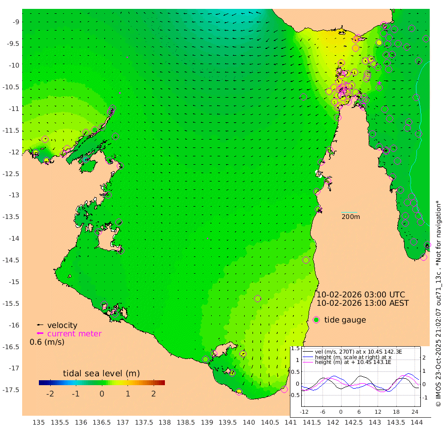14cm/s -88T +3cm/s rms + 7cm/s -42T. ARA-GOC87 57m 12cm/s -135T +3cm/s rms + 2cm/s -2T. ARA-GOC87 60m 13cm/s -89T +2cm/s rms + 3cm/s 61T. ARA-GOC87 47m 22cm Daru 7cm Bobo Island -13cm Meer Island Barge -10cm Bramble Cay 3cm Unnamed Cay 2cm Pearce Cay -4cm Stephens Island -8cm Merrie England Shoals 12cm Mutacomal Reef -7cm Darnley Island Barge -14cm East Cay 5cm Yorke Island Barge 13cm Rennel Island 6cm Aureed Island 32cm Dungeness Reef 56cm Zagai Island 60cm Yam Island 109cm Dauan Island 90cm Saibai Island 101cm Phipi Reef 72cm Warrior Reef - West 78cm Mabuiag Island Barge 5cm Half Way Island 21cm Coconut Island 17cm Dugong Islet 39cm Poll Island 36cm Kirkcaldie Reef 63cm Suarji Island 37cm Sue Islet 69cm Hawkesbury Island 55cm Alert Patches 49cm Twin Island 84cm Badu Island 64cm St Pauls (Moa Island) 69cm Kubin (Moa Island) 61cm Ince Point 60cm Thursday Island 63cm Nardana Patches 71cm Turtle Head 63cm Round Island 68cm Goods Island 55cm Booby Island 58cm White Rocks Area 8cm Carpentaria 52cm Papou Point 51cm Bampfield Head 41cm Crab Island 50cm Red Wallis Island 57cm Packe Island 13cm Harrington Reef 63cm Herald Camp 17cm Sharp Point 54cm Red Island Point 49cm Possession Island 38cm Alpha Rock 35cm Frederick Point 16cm Wyborn Reef Light 21cm Tetley Island -4cm Triangle Reef 11cm Turtle Head Island -7cm Maclennan Cay -10cm Raine Island 1cm Mcsweeny Reef -4cm Collette Reef -8cm Shadwell Reef -9cm Hannibal Island -13cm Round Point 16cm Vrilya Point -16cm Cape Grenville -8cm Hicks Island -3cm Sir Charles Hardy Island -4cm Harvey Island -21cm Kay Reef -12cm Rocky Island -16cm Chapman Island -16cm Ham Reef -12cm Jubilee Reef -15cm Night Island -19cm Unnamed Reef No. 3 -15cm Morris Island -7cm 1st 3 Mile Opening -15cm Creech Reef -16cm Fife Island -23cm Eden Reef -20cm Stanley Island -24cm Normanby River 54cm Yabooma Island 66cm Hutchison River 49cm Elcho Island 52cm North West Crocodile Island 4cm Cape Wessel 28cm Stevens Island 11cm Guluwuru Island 20cm Hopeful Bay 15cm Auster Point 12cm Two Island Bay 35cm Cadell Strait -71cm Mallison Island 14cm Melville Bay (Gove Harbour) 10cm Truant Island 6cm Cape Arnhem 11cm Cape Grey 3cm Hawk Island -5cm Milner Bay (Groote Eylandt) 2cm Cape Beatrice -9cm West Island -17cm Centre Island 23cm Mornington Island 25cm West Wellesley Islands 58cm Bountiful Island 68cm Albert River Mouth 45cm Sweers Island 63cm Karumba 33cm Nassau River Offshore 35cm Christmas Creek 25cm Archer River 26cm Boyd Point 39cm Weipa (Humbug Point) 5cm Pennefather River 23cm Cullen Point