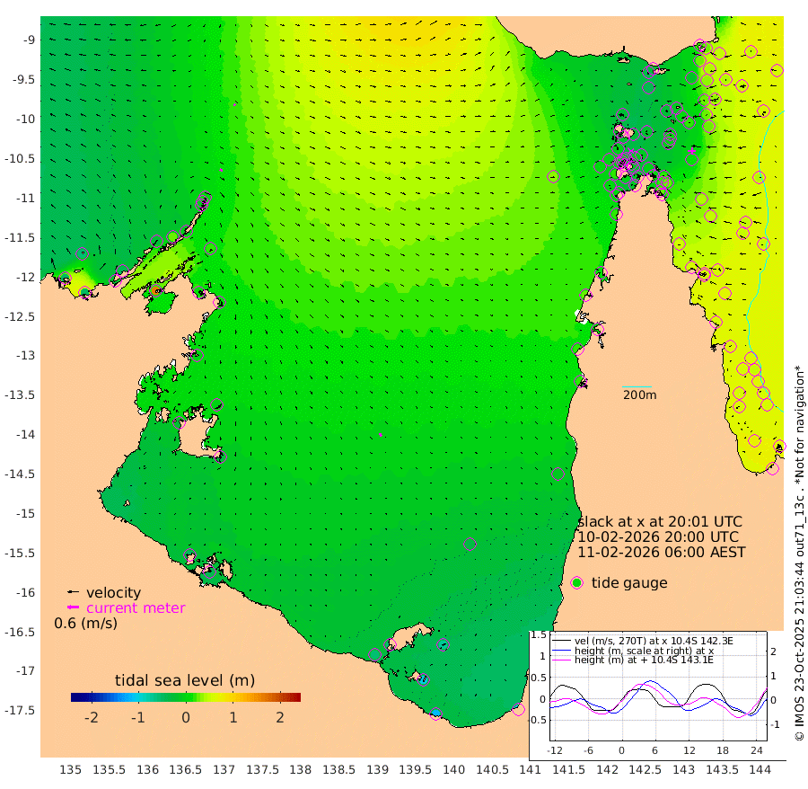15cm/s 116T +3cm/s rms + 7cm/s -42T. ARA-GOC87 57m 17cm/s 149T +3cm/s rms + 2cm/s -2T. ARA-GOC87 60m 10cm/s 122T +2cm/s rms + 3cm/s 61T. ARA-GOC87 47m 18cm Daru 29cm Bobo Island 53cm Meer Island Barge 52cm Bramble Cay 39cm Unnamed Cay 35cm Pearce Cay 41cm Stephens Island 46cm Merrie England Shoals 25cm Mutacomal Reef 49cm Darnley Island Barge 55cm East Cay 36cm Yorke Island Barge 24cm Rennel Island 30cm Aureed Island 6cm Dungeness Reef -14cm Zagai Island -24cm Yam Island -43cm Dauan Island -24cm Saibai Island -40cm Phipi Reef -22cm Warrior Reef - West -26cm Mabuiag Island Barge 23cm Half Way Island 17cm Coconut Island 15cm Dugong Islet -6cm Poll Island -4cm Kirkcaldie Reef -22cm Suarji Island 4cm Sue Islet -4cm Hawkesbury Island -9cm Alert Patches -12cm Twin Island -13cm Badu Island -26cm St Pauls (Moa Island) -17cm Kubin (Moa Island) -18cm Ince Point -16cm Thursday Island -18cm Nardana Patches -13cm Turtle Head -10cm Round Island -2cm Goods Island 7cm Booby Island -3cm White Rocks Area 35cm Carpentaria -20cm Papou Point 21cm Bampfield Head 2cm Crab Island 2cm Red Wallis Island -7cm Packe Island 16cm Harrington Reef -7cm Herald Camp -11cm Sharp Point -9cm Red Island Point -10cm Possession Island -4cm Alpha Rock 1cm Frederick Point 23cm Wyborn Reef Light 17cm Tetley Island 45cm Triangle Reef 24cm Turtle Head Island 46cm Maclennan Cay 52cm Raine Island 38cm Mcsweeny Reef 46cm Collette Reef 52cm Shadwell Reef 53cm Hannibal Island 54cm Round Point 17cm Vrilya Point 55cm Cape Grenville 48cm Hicks Island 56cm Sir Charles Hardy Island 15cm Harvey Island 65cm Kay Reef 56cm Rocky Island 64cm Chapman Island 61cm Ham Reef 57cm Jubilee Reef 49cm Night Island 62cm Unnamed Reef No. 3 59cm Morris Island 53cm 1st 3 Mile Opening 58cm Creech Reef 54cm Fife Island 73cm Eden Reef 63cm Stanley Island 63cm Normanby River -52cm Yabooma Island -46cm Hutchison River -44cm Elcho Island -54cm North West Crocodile Island 5cm Cape Wessel -25cm Stevens Island 28cm Guluwuru Island -15cm Hopeful Bay -8cm Auster Point -15cm Two Island Bay -19cm Cadell Strait 158cm Mallison Island 14cm Melville Bay (Gove Harbour) 19cm Truant Island 15cm Cape Arnhem -1cm Cape Grey -7cm Hawk Island -30cm Milner Bay (Groote Eylandt) -34cm Cape Beatrice -46cm West Island -42cm Centre Island -53cm Mornington Island -54cm West Wellesley Islands -74cm Bountiful Island -113cm Albert River Mouth -101cm Sweers Island -107cm Karumba -37cm Nassau River Offshore -10cm Christmas Creek 16cm Archer River 21cm Boyd Point 13cm Weipa (Humbug Point) 23cm Pennefather River 14cm Cullen Point