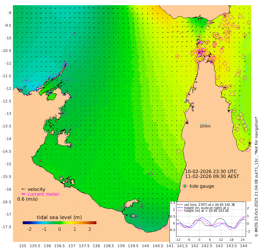 23cm/s -99T +3cm/s rms + 7cm/s -42T. ARA-GOC87 57m 19cm/s 170T +3cm/s rms + 2cm/s -2T. ARA-GOC87 60m 28cm/s -106T +2cm/s rms + 3cm/s 61T. ARA-GOC87 47m 82cm Daru 83cm Bobo Island 55cm Meer Island Barge 67cm Bramble Cay 82cm Unnamed Cay 94cm Pearce Cay 83cm Stephens Island 82cm Merrie England Shoals 88cm Mutacomal Reef 73cm Darnley Island Barge 63cm East Cay 80cm Yorke Island Barge 92cm Rennel Island 90cm Aureed Island 95cm Dungeness Reef 68cm Zagai Island 77cm Yam Island 52cm Dauan Island 45cm Saibai Island 65cm Phipi Reef 72cm Warrior Reef - West 67cm Mabuiag Island Barge 91cm Half Way Island 92cm Coconut Island 100cm Dugong Islet 92cm Poll Island 96cm Kirkcaldie Reef 107cm Suarji Island 83cm Sue Islet 104cm Hawkesbury Island 109cm Alert Patches 103cm Twin Island 88cm Badu Island 97cm St Pauls (Moa Island) 94cm Kubin (Moa Island) 98cm Ince Point 100cm Thursday Island 98cm Nardana Patches 103cm Turtle Head 90cm Round Island 105cm Goods Island 106cm Booby Island 112cm White Rocks Area 92cm Carpentaria 85cm Papou Point 111cm Bampfield Head 79cm Crab Island 104cm Red Wallis Island 102cm Packe Island 111cm Harrington Reef 100cm Herald Camp 21cm Sharp Point 93cm Red Island Point 97cm Possession Island 86cm Alpha Rock 102cm Frederick Point 87cm Wyborn Reef Light 87cm Tetley Island 57cm Triangle Reef 103cm Turtle Head Island 64cm Maclennan Cay 45cm Raine Island 82cm Mcsweeny Reef 73cm Collette Reef 53cm Shadwell Reef 77cm Hannibal Island 73cm Round Point 76cm Vrilya Point 71cm Cape Grenville 64cm Hicks Island 67cm Sir Charles Hardy Island 22cm Harvey Island 62cm Kay Reef 53cm Rocky Island 51cm Chapman Island 48cm Ham Reef 50cm Jubilee Reef 49cm Night Island 52cm Unnamed Reef No. 3 55cm Morris Island 54cm 1st 3 Mile Opening 56cm Creech Reef 51cm Fife Island 55cm Eden Reef 56cm Stanley Island 61cm Normanby River -86cm Yabooma Island -97cm Hutchison River -94cm Elcho Island -89cm North West Crocodile Island -69cm Cape Wessel -99cm Stevens Island -76cm Guluwuru Island -89cm Hopeful Bay -71cm Auster Point -82cm Two Island Bay -108cm Cadell Strait -160cm Mallison Island -69cm Melville Bay (Gove Harbour) -70cm Truant Island -50cm Cape Arnhem -34cm Cape Grey -33cm Hawk Island -36cm Milner Bay (Groote Eylandt) -23cm Cape Beatrice -6cm West Island -6cm Centre Island -12cm Mornington Island -3cm West Wellesley Islands -14cm Bountiful Island -65cm Albert River Mouth -68cm Sweers Island -50cm Karumba 14cm Nassau River Offshore 38cm Christmas Creek 51cm Archer River 60cm Boyd Point 61cm Weipa (Humbug Point) 53cm Pennefather River 68cm Cullen Point