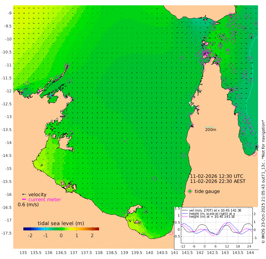 5cm/s 52T +3cm/s rms + 7cm/s -42T. ARA-GOC87 57m 25cm/s 3T +3cm/s rms + 2cm/s -2T. ARA-GOC87 60m 9cm/s 83T +2cm/s rms + 3cm/s 61T. ARA-GOC87 47m -15cm Daru -11cm Bobo Island -36cm Meer Island Barge -29cm Bramble Cay -22cm Unnamed Cay -11cm Pearce Cay -19cm Stephens Island -19cm Merrie England Shoals -11cm Mutacomal Reef -29cm Darnley Island Barge -34cm East Cay -22cm Yorke Island Barge -12cm Rennel Island -12cm Aureed Island -10cm Dungeness Reef -14cm Zagai Island -8cm Yam Island -42cm Dauan Island -47cm Saibai Island -40cm Phipi Reef -23cm Warrior Reef - West -24cm Mabuiag Island Barge -4cm Half Way Island -7cm Coconut Island -5cm Dugong Islet -1cm Poll Island -5cm Kirkcaldie Reef -1cm Suarji Island -15cm Sue Islet -38cm Hawkesbury Island -10cm Alert Patches -1cm Twin Island -40cm Badu Island 0cm St Pauls (Moa Island) -20cm Kubin (Moa Island) -9cm Ince Point -11cm Thursday Island -12cm Nardana Patches -26cm Turtle Head -26cm Round Island -36cm Goods Island -36cm Booby Island -22cm White Rocks Area -25cm Carpentaria 0cm Papou Point -42cm Bampfield Head -27cm Crab Island -25cm Red Wallis Island -21cm Packe Island 5cm Harrington Reef -37cm Herald Camp 2cm Sharp Point -22cm Red Island Point -9cm Possession Island -2cm Alpha Rock -1cm Frederick Point -8cm Wyborn Reef Light -6cm Tetley Island -31cm Triangle Reef -2cm Turtle Head Island -31cm Maclennan Cay -40cm Raine Island -19cm Mcsweeny Reef -28cm Collette Reef -39cm Shadwell Reef -28cm Hannibal Island -27cm Round Point -22cm Vrilya Point -29cm Cape Grenville -31cm Hicks Island -47cm Sir Charles Hardy Island -8cm Harvey Island -39cm Kay Reef -42cm Rocky Island -45cm Chapman Island -45cm Ham Reef -42cm Jubilee Reef -30cm Night Island -42cm Unnamed Reef No. 3 -40cm Morris Island -42cm 1st 3 Mile Opening -40cm Creech Reef -33cm Fife Island -49cm Eden Reef -41cm Stanley Island -35cm Normanby River 29cm Yabooma Island 16cm Hutchison River 23cm Elcho Island 29cm North West Crocodile Island 13cm Cape Wessel 24cm Stevens Island -27cm Guluwuru Island 14cm Hopeful Bay 17cm Auster Point 22cm Two Island Bay 6cm Cadell Strait -111cm Mallison Island -14cm Melville Bay (Gove Harbour) -12cm Truant Island -11cm Cape Arnhem -5cm Cape Grey 4cm Hawk Island 33cm Milner Bay (Groote Eylandt) 27cm Cape Beatrice 45cm West Island 47cm Centre Island 7cm Mornington Island 10cm West Wellesley Islands -6cm Bountiful Island 18cm Albert River Mouth 28cm Sweers Island 14cm Karumba -15cm Nassau River Offshore -38cm Christmas Creek -46cm Archer River -45cm Boyd Point -50cm Weipa (Humbug Point) -24cm Pennefather River -29cm Cullen Point
