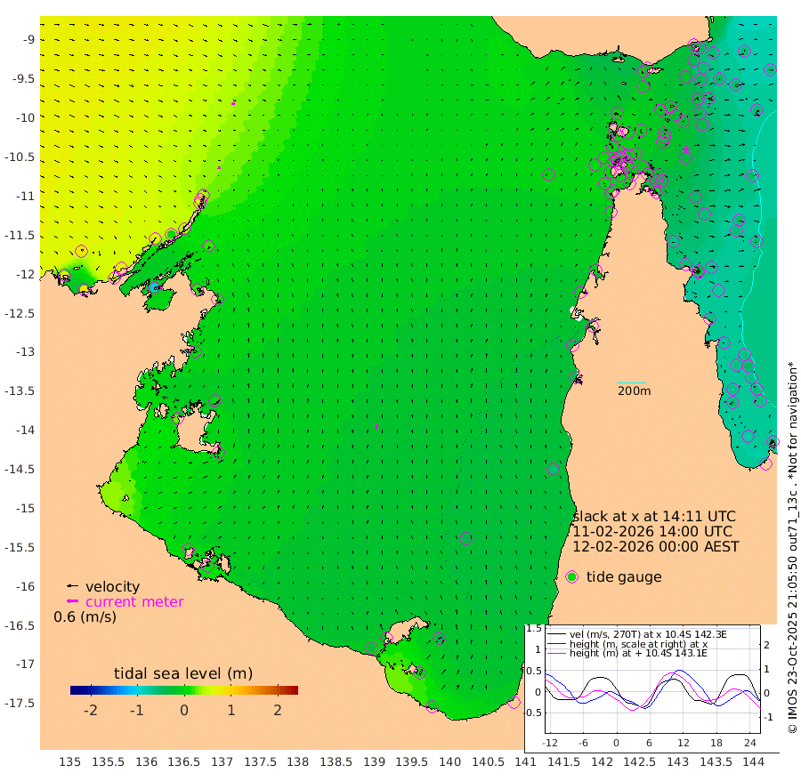 14cm/s 108T +3cm/s rms + 7cm/s -42T. ARA-GOC87 57m 23cm/s 6T +3cm/s rms + 2cm/s -2T. ARA-GOC87 60m 18cm/s 105T +2cm/s rms + 3cm/s 61T. ARA-GOC87 47m -37cm Daru -40cm Bobo Island -57cm Meer Island Barge -60cm Bramble Cay -53cm Unnamed Cay -42cm Pearce Cay -50cm Stephens Island -57cm Merrie England Shoals -44cm Mutacomal Reef -56cm Darnley Island Barge -62cm East Cay -47cm Yorke Island Barge -41cm Rennel Island -40cm Aureed Island -28cm Dungeness Reef -13cm Zagai Island -11cm Yam Island -7cm Dauan Island -21cm Saibai Island -14cm Phipi Reef -19cm Warrior Reef - West 1cm Mabuiag Island Barge -34cm Half Way Island -29cm Coconut Island -32cm Dugong Islet -13cm Poll Island -21cm Kirkcaldie Reef -5cm Suarji Island -25cm Sue Islet -2cm Hawkesbury Island -8cm Alert Patches -4cm Twin Island 1cm Badu Island 6cm St Pauls (Moa Island) 7cm Kubin (Moa Island) 2cm Ince Point 5cm Thursday Island 4cm Nardana Patches -3cm Turtle Head 5cm Round Island -4cm Goods Island 1cm Booby Island 5cm White Rocks Area -3cm Carpentaria 5cm Papou Point -2cm Bampfield Head 5cm Crab Island 2cm Red Wallis Island 1cm Packe Island -27cm Harrington Reef -4cm Herald Camp 1cm Sharp Point -6cm Red Island Point 3cm Possession Island -11cm Alpha Rock -14cm Frederick Point -33cm Wyborn Reef Light -27cm Tetley Island -49cm Triangle Reef -20cm Turtle Head Island -54cm Maclennan Cay -56cm Raine Island -47cm Mcsweeny Reef -56cm Collette Reef -59cm Shadwell Reef -61cm Hannibal Island -59cm Round Point 5cm Vrilya Point -62cm Cape Grenville -56cm Hicks Island -73cm Sir Charles Hardy Island -17cm Harvey Island -71cm Kay Reef -64cm Rocky Island -68cm Chapman Island -66cm Ham Reef -62cm Jubilee Reef -51cm Night Island -66cm Unnamed Reef No. 3 -64cm Morris Island -57cm 1st 3 Mile Opening -62cm Creech Reef -57cm Fife Island -76cm Eden Reef -67cm Stanley Island -68cm Normanby River 80cm Yabooma Island 76cm Hutchison River 73cm Elcho Island 75cm North West Crocodile Island 39cm Cape Wessel 67cm Stevens Island 3cm Guluwuru Island 51cm Hopeful Bay 53cm Auster Point 61cm Two Island Bay 60cm Cadell Strait -102cm Mallison Island 16cm Melville Bay (Gove Harbour) 20cm Truant Island 9cm Cape Arnhem 5cm Cape Grey 6cm Hawk Island 23cm Milner Bay (Groote Eylandt) 10cm Cape Beatrice 11cm West Island 12cm Centre Island -27cm Mornington Island -30cm West Wellesley Islands -39cm Bountiful Island -13cm Albert River Mouth -2cm Sweers Island -17cm Karumba -42cm Nassau River Offshore -53cm Christmas Creek -43cm Archer River -34cm Boyd Point -36cm Weipa (Humbug Point) -7cm Pennefather River -7cm Cullen Point