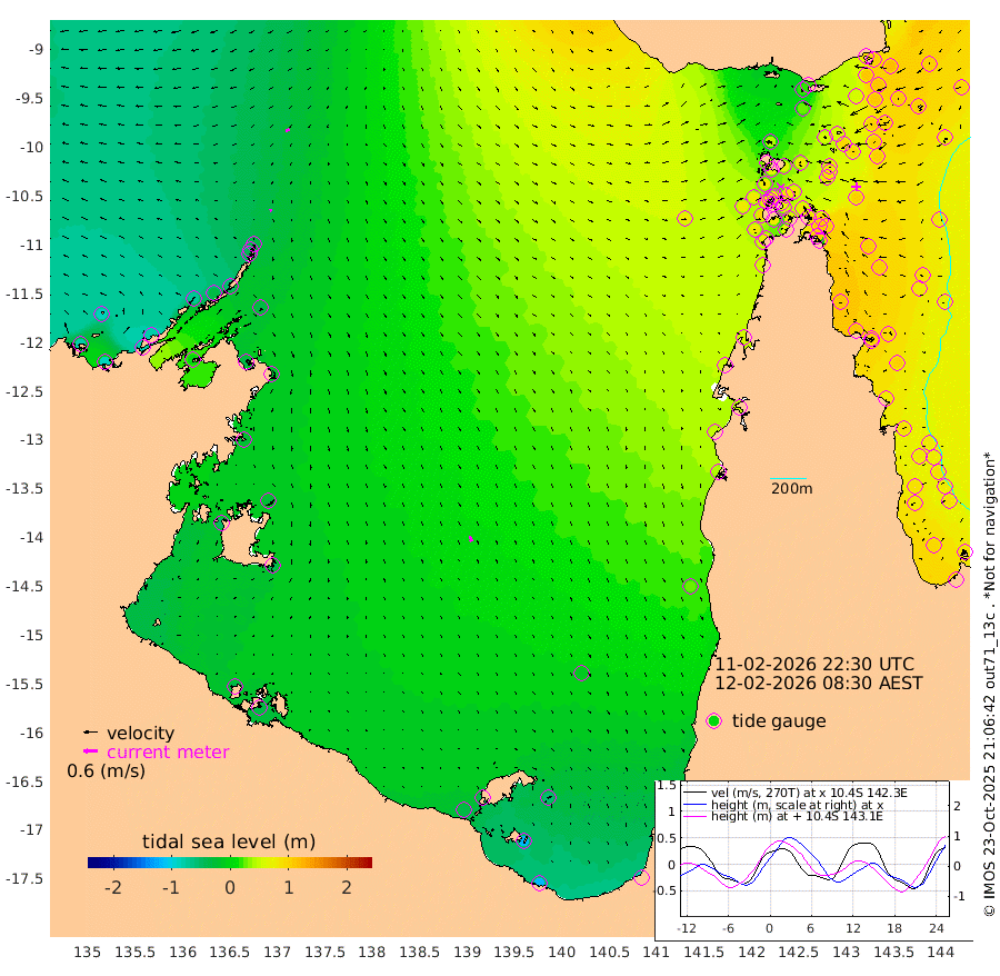 10cm/s -126T +3cm/s rms + 7cm/s -42T. ARA-GOC87 57m 24cm/s 163T +3cm/s rms + 2cm/s -2T. ARA-GOC87 60m 16cm/s -116T +2cm/s rms + 3cm/s 61T. ARA-GOC87 47m 92cm Daru 99cm Bobo Island 82cm Meer Island Barge 98cm Bramble Cay 106cm Unnamed Cay 109cm Pearce Cay 104cm Stephens Island 113cm Merrie England Shoals 107cm Mutacomal Reef 98cm Darnley Island Barge 93cm East Cay 96cm Yorke Island Barge 103cm Rennel Island 101cm Aureed Island 90cm Dungeness Reef 53cm Zagai Island 57cm Yam Island 16cm Dauan Island 22cm Saibai Island 29cm Phipi Reef 53cm Warrior Reef - West 38cm Mabuiag Island Barge 100cm Half Way Island 97cm Coconut Island 102cm Dugong Islet 81cm Poll Island 84cm Kirkcaldie Reef 78cm Suarji Island 77cm Sue Islet 78cm Hawkesbury Island 86cm Alert Patches 82cm Twin Island 56cm Badu Island 67cm St Pauls (Moa Island) 65cm Kubin (Moa Island) 70cm Ince Point 70cm Thursday Island 68cm Nardana Patches 72cm Turtle Head 66cm Round Island 75cm Goods Island 77cm Booby Island 81cm White Rocks Area 78cm Carpentaria 60cm Papou Point 93cm Bampfield Head 54cm Crab Island 78cm Red Wallis Island 79cm Packe Island 112cm Harrington Reef 73cm Herald Camp 12cm Sharp Point 65cm Red Island Point 74cm Possession Island 78cm Alpha Rock 93cm Frederick Point 103cm Wyborn Reef Light 99cm Tetley Island 81cm Triangle Reef 110cm Turtle Head Island 85cm Maclennan Cay 70cm Raine Island 102cm Mcsweeny Reef 99cm Collette Reef 81cm Shadwell Reef 108cm Hannibal Island 107cm Round Point 58cm Vrilya Point 102cm Cape Grenville 89cm Hicks Island 96cm Sir Charles Hardy Island 29cm Harvey Island 100cm Kay Reef 82cm Rocky Island 86cm Chapman Island 80cm Ham Reef 79cm Jubilee Reef 75cm Night Island 85cm Unnamed Reef No. 3 86cm Morris Island 76cm 1st 3 Mile Opening 83cm Creech Reef 82cm Fife Island 94cm Eden Reef 90cm Stanley Island 96cm Normanby River -77cm Yabooma Island -83cm Hutchison River -81cm Elcho Island -84cm North West Crocodile Island -35cm Cape Wessel -69cm Stevens Island -32cm Guluwuru Island -57cm Hopeful Bay -45cm Auster Point -57cm Two Island Bay -77cm Cadell Strait 6cm Mallison Island -34cm Melville Bay (Gove Harbour) -31cm Truant Island -23cm Cape Arnhem -27cm Cape Grey -25cm Hawk Island -46cm Milner Bay (Groote Eylandt) -39cm Cape Beatrice -37cm West Island -35cm Centre Island -41cm Mornington Island -35cm West Wellesley Islands -58cm Bountiful Island -117cm Albert River Mouth -114cm Sweers Island -101cm Karumba -10cm Nassau River Offshore 23cm Christmas Creek 45cm Archer River 52cm Boyd Point 49cm Weipa (Humbug Point) 47cm Pennefather River 54cm Cullen Point