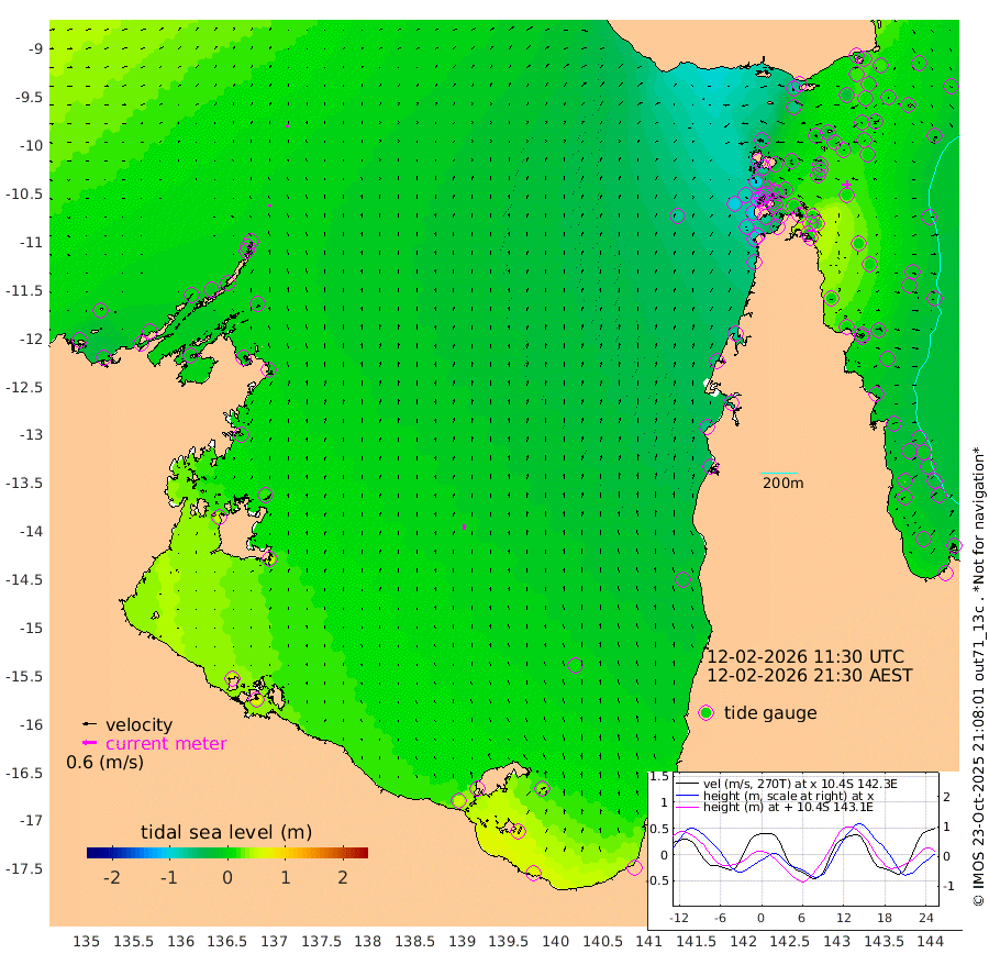 11cm/s 20T +3cm/s rms + 7cm/s -42T. ARA-GOC87 57m 25cm/s 0T +3cm/s rms + 2cm/s -2T. ARA-GOC87 60m 12cm/s 45T +2cm/s rms + 3cm/s 61T. ARA-GOC87 47m 5cm Daru 15cm Bobo Island -12cm Meer Island Barge 4cm Bramble Cay 8cm Unnamed Cay 12cm Pearce Cay 8cm Stephens Island 17cm Merrie England Shoals 18cm Mutacomal Reef -1cm Darnley Island Barge -4cm East Cay 2cm Yorke Island Barge 9cm Rennel Island 11cm Aureed Island -2cm Dungeness Reef -16cm Zagai Island -15cm Yam Island -72cm Dauan Island -62cm Saibai Island -65cm Phipi Reef -27cm Warrior Reef - West -55cm Mabuiag Island Barge 13cm Half Way Island 8cm Coconut Island 10cm Dugong Islet 1cm Poll Island -2cm Kirkcaldie Reef -13cm Suarji Island -10cm Sue Islet -98cm Hawkesbury Island -27cm Alert Patches -15cm Twin Island -93cm Badu Island -24cm St Pauls (Moa Island) -72cm Kubin (Moa Island) -39cm Ince Point -48cm Thursday Island -47cm Nardana Patches -70cm Turtle Head -81cm Round Island -92cm Goods Island -101cm Booby Island -78cm White Rocks Area -74cm Carpentaria -19cm Papou Point -110cm Bampfield Head -82cm Crab Island -82cm Red Wallis Island -70cm Packe Island 21cm Harrington Reef -103cm Herald Camp -1cm Sharp Point -55cm Red Island Point -43cm Possession Island -4cm Alpha Rock -2cm Frederick Point 12cm Wyborn Reef Light 9cm Tetley Island -11cm Triangle Reef 3cm Turtle Head Island -10cm Maclennan Cay -19cm Raine Island 7cm Mcsweeny Reef 2cm Collette Reef -14cm Shadwell Reef 6cm Hannibal Island 6cm Round Point -73cm Vrilya Point 2cm Cape Grenville -6cm Hicks Island -17cm Sir Charles Hardy Island 0cm Harvey Island -3cm Kay Reef -15cm Rocky Island -15cm Chapman Island -18cm Ham Reef -17cm Jubilee Reef -9cm Night Island -12cm Unnamed Reef No. 3 -13cm Morris Island -25cm 1st 3 Mile Opening -16cm Creech Reef -6cm Fife Island -16cm Eden Reef -12cm Stanley Island -1cm Normanby River -4cm Yabooma Island -14cm Hutchison River -3cm Elcho Island 2cm North West Crocodile Island 12cm Cape Wessel 11cm Stevens Island -14cm Guluwuru Island 4cm Hopeful Bay 3cm Auster Point 1cm Two Island Bay -10cm Cadell Strait -13cm Mallison Island -8cm Melville Bay (Gove Harbour) -8cm Truant Island -5cm Cape Arnhem 6cm Cape Grey 16cm Hawk Island 47cm Milner Bay (Groote Eylandt) 45cm Cape Beatrice 67cm West Island 68cm Centre Island 43cm Mornington Island 50cm West Wellesley Islands 36cm Bountiful Island 63cm Albert River Mouth 73cm Sweers Island 52cm Karumba 10cm Nassau River Offshore -26cm Christmas Creek -53cm Archer River -65cm Boyd Point -73cm Weipa (Humbug Point) -55cm Pennefather River -74cm Cullen Point
