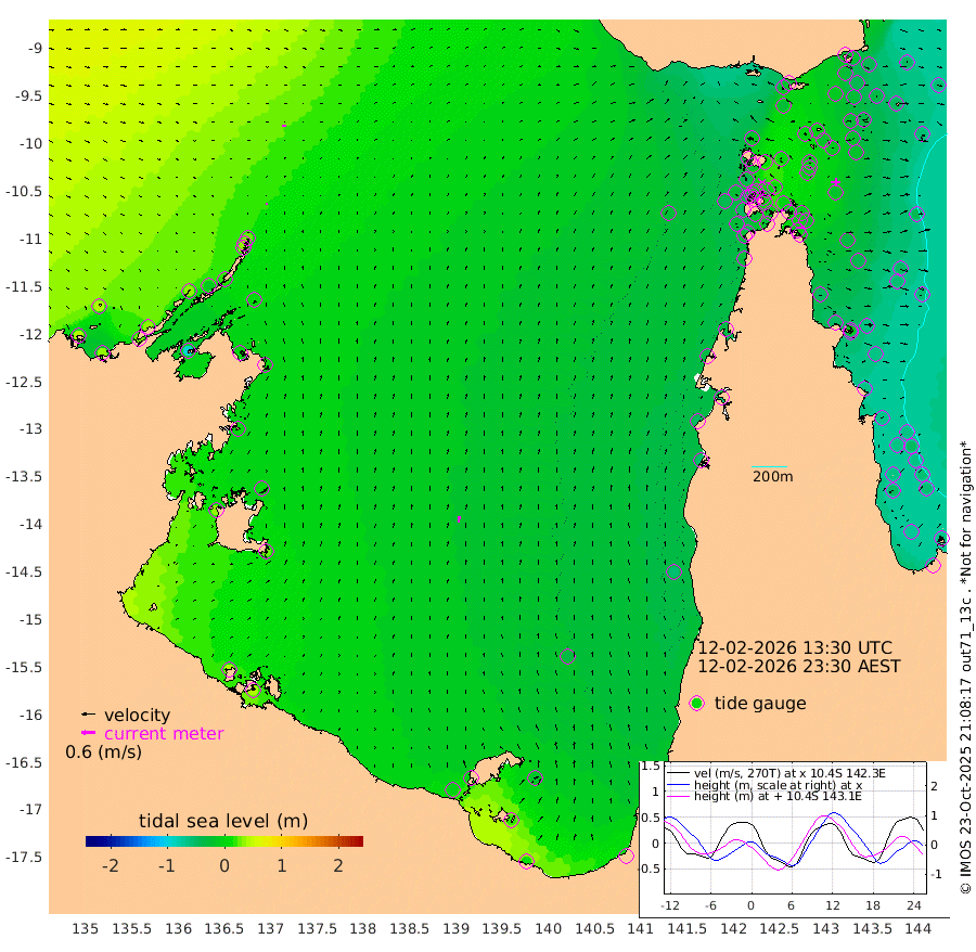 10cm/s 80T +3cm/s rms + 7cm/s -42T. ARA-GOC87 57m 27cm/s 6T +3cm/s rms + 2cm/s -2T. ARA-GOC87 60m 15cm/s 90T +2cm/s rms + 3cm/s 61T. ARA-GOC87 47m -24cm Daru -21cm Bobo Island -53cm Meer Island Barge -50cm Bramble Cay -41cm Unnamed Cay -25cm Pearce Cay -37cm Stephens Island -42cm Merrie England Shoals -27cm Mutacomal Reef -46cm Darnley Island Barge -54cm East Cay -34cm Yorke Island Barge -27cm Rennel Island -21cm Aureed Island -18cm Dungeness Reef -4cm Zagai Island -4cm Yam Island -21cm Dauan Island -26cm Saibai Island -27cm Phipi Reef -13cm Warrior Reef - West -10cm Mabuiag Island Barge -20cm Half Way Island -13cm Coconut Island -18cm Dugong Islet -2cm Poll Island -11cm Kirkcaldie Reef 6cm Suarji Island -15cm Sue Islet -42cm Hawkesbury Island -7cm Alert Patches 2cm Twin Island -32cm Badu Island 8cm St Pauls (Moa Island) -19cm Kubin (Moa Island) -5cm Ince Point -8cm Thursday Island -7cm Nardana Patches -25cm Turtle Head -29cm Round Island -39cm Goods Island -39cm Booby Island -26cm White Rocks Area -26cm Carpentaria 6cm Papou Point -47cm Bampfield Head -30cm Crab Island -29cm Red Wallis Island -25cm Packe Island -6cm Harrington Reef -46cm Herald Camp 5cm Sharp Point -23cm Red Island Point -9cm Possession Island -2cm Alpha Rock -3cm Frederick Point -18cm Wyborn Reef Light -13cm Tetley Island -44cm Triangle Reef -14cm Turtle Head Island -48cm Maclennan Cay -56cm Raine Island -34cm Mcsweeny Reef -45cm Collette Reef -56cm Shadwell Reef -49cm Hannibal Island -49cm Round Point -27cm Vrilya Point -52cm Cape Grenville -51cm Hicks Island -66cm Sir Charles Hardy Island -15cm Harvey Island -63cm Kay Reef -61cm Rocky Island -64cm Chapman Island -63cm Ham Reef -60cm Jubilee Reef -48cm Night Island -61cm Unnamed Reef No. 3 -61cm Morris Island -59cm 1st 3 Mile Opening -60cm Creech Reef -50cm Fife Island -74cm Eden Reef -65cm Stanley Island -61cm Normanby River 38cm Yabooma Island 31cm Hutchison River 36cm Elcho Island 39cm North West Crocodile Island 28cm Cape Wessel 37cm Stevens Island -9cm Guluwuru Island 22cm Hopeful Bay 30cm Auster Point 34cm Two Island Bay 25cm Cadell Strait -95cm Mallison Island 3cm Melville Bay (Gove Harbour) 7cm Truant Island 3cm Cape Arnhem 6cm Cape Grey 8cm Hawk Island 36cm Milner Bay (Groote Eylandt) 27cm Cape Beatrice 40cm West Island 40cm Centre Island -4cm Mornington Island -2cm West Wellesley Islands -17cm Bountiful Island 10cm Albert River Mouth 21cm Sweers Island 1cm Karumba -30cm Nassau River Offshore -53cm Christmas Creek -58cm Archer River -51cm Boyd Point -59cm Weipa (Humbug Point) -31cm Pennefather River -35cm Cullen Point