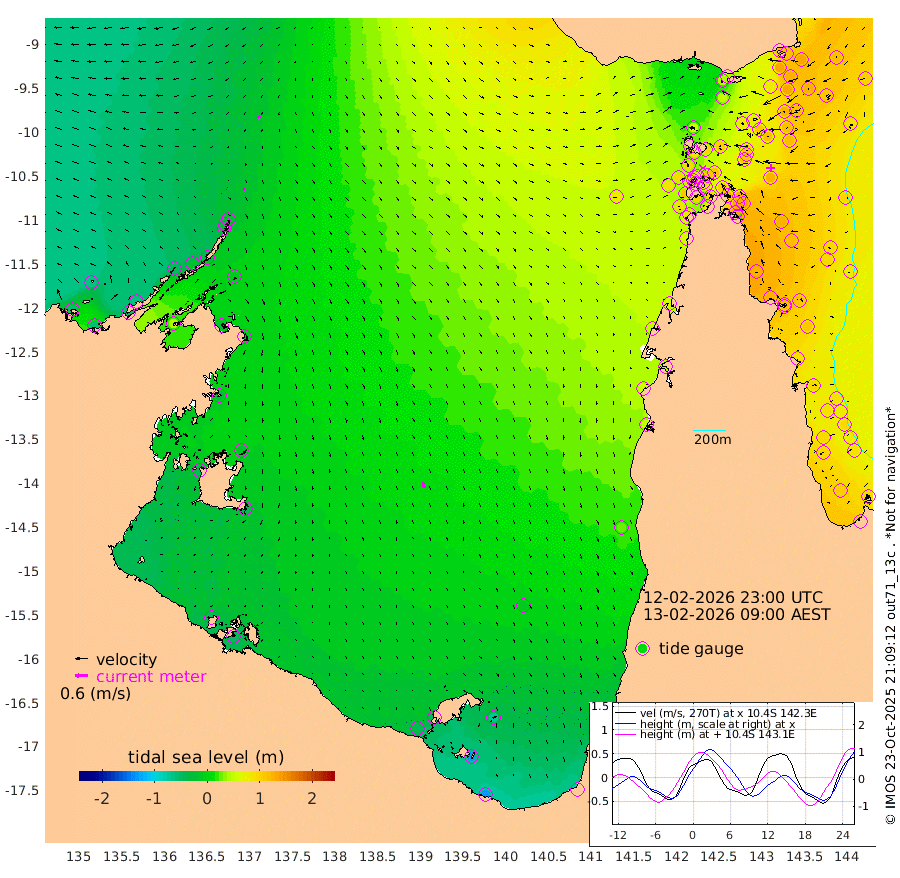 9cm/s -140T +3cm/s rms + 7cm/s -42T. ARA-GOC87 57m 27cm/s 166T +3cm/s rms + 2cm/s -2T. ARA-GOC87 60m 15cm/s -118T +2cm/s rms + 3cm/s 61T. ARA-GOC87 47m 116cm Daru 119cm Bobo Island 89cm Meer Island Barge 113cm Bramble Cay 127cm Unnamed Cay 129cm Pearce Cay 121cm Stephens Island 134cm Merrie England Shoals 134cm Mutacomal Reef 112cm Darnley Island Barge 102cm East Cay 114cm Yorke Island Barge 125cm Rennel Island 119cm Aureed Island 112cm Dungeness Reef 76cm Zagai Island 81cm Yam Island 41cm Dauan Island 43cm Saibai Island 51cm Phipi Reef 78cm Warrior Reef - West 57cm Mabuiag Island Barge 119cm Half Way Island 120cm Coconut Island 123cm Dugong Islet 105cm Poll Island 106cm Kirkcaldie Reef 101cm Suarji Island 98cm Sue Islet 96cm Hawkesbury Island 109cm Alert Patches 105cm Twin Island 74cm Badu Island 91cm St Pauls (Moa Island) 85cm Kubin (Moa Island) 91cm Ince Point 89cm Thursday Island 88cm Nardana Patches 90cm Turtle Head 85cm Round Island 89cm Goods Island 85cm Booby Island 92cm White Rocks Area 77cm Carpentaria 79cm Papou Point 106cm Bampfield Head 60cm Crab Island 89cm Red Wallis Island 98cm Packe Island 135cm Harrington Reef 89cm Herald Camp 18cm Sharp Point 77cm Red Island Point 92cm Possession Island 102cm Alpha Rock 117cm Frederick Point 131cm Wyborn Reef Light 127cm Tetley Island 92cm Triangle Reef 133cm Turtle Head Island 93cm Maclennan Cay 75cm Raine Island 121cm Mcsweeny Reef 116cm Collette Reef 92cm Shadwell Reef 126cm Hannibal Island 124cm Round Point 59cm Vrilya Point 115cm Cape Grenville 100cm Hicks Island 107cm Sir Charles Hardy Island 32cm Harvey Island 109cm Kay Reef 89cm Rocky Island 92cm Chapman Island 85cm Ham Reef 84cm Jubilee Reef 82cm Night Island 90cm Unnamed Reef No. 3 92cm Morris Island 80cm 1st 3 Mile Opening 88cm Creech Reef 91cm Fife Island 99cm Eden Reef 96cm Stanley Island 103cm Normanby River -56cm Yabooma Island -59cm Hutchison River -63cm Elcho Island -66cm North West Crocodile Island -20cm Cape Wessel -46cm Stevens Island -17cm Guluwuru Island -38cm Hopeful Bay -29cm Auster Point -41cm Two Island Bay -56cm Cadell Strait 40cm Mallison Island -19cm Melville Bay (Gove Harbour) -15cm Truant Island -14cm Cape Arnhem -25cm Cape Grey -22cm Hawk Island -52cm Milner Bay (Groote Eylandt) -45cm Cape Beatrice -52cm West Island -51cm Centre Island -50cm Mornington Island -44cm West Wellesley Islands -69cm Bountiful Island -128cm Albert River Mouth -129cm Sweers Island -111cm Karumba -13cm Nassau River Offshore 24cm Christmas Creek 46cm Archer River 55cm Boyd Point 52cm Weipa (Humbug Point) 47cm Pennefather River 58cm Cullen Point