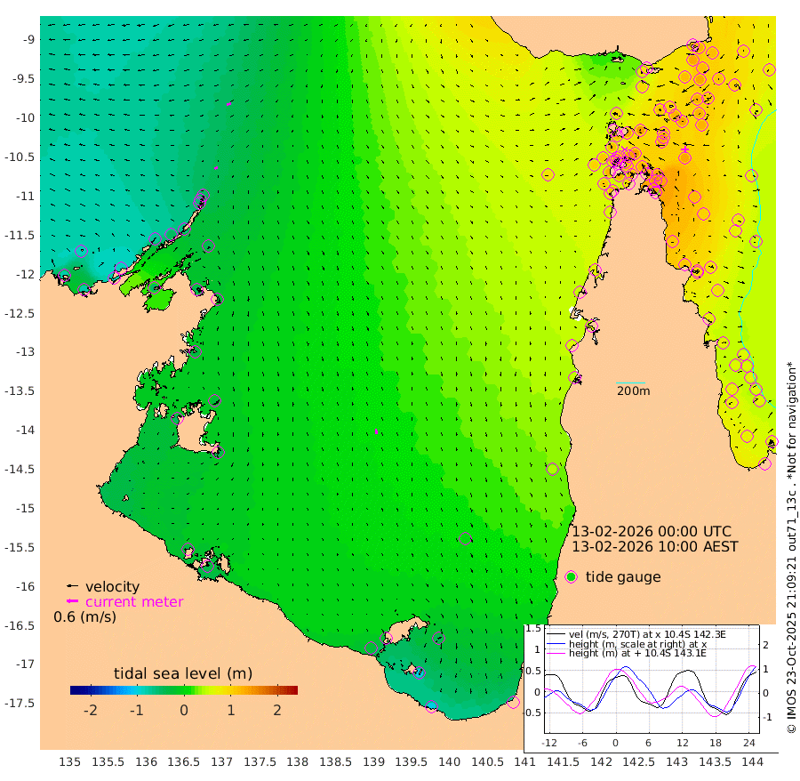 17cm/s -107T +3cm/s rms + 7cm/s -42T. ARA-GOC87 57m 27cm/s 170T +3cm/s rms + 2cm/s -2T. ARA-GOC87 60m 24cm/s -105T +2cm/s rms + 3cm/s 61T. ARA-GOC87 47m 123cm Daru 122cm Bobo Island 71cm Meer Island Barge 95cm Bramble Cay 118cm Unnamed Cay 128cm Pearce Cay 112cm Stephens Island 119cm Merrie England Shoals 133cm Mutacomal Reef 100cm Darnley Island Barge 84cm East Cay 111cm Yorke Island Barge 127cm Rennel Island 124cm Aureed Island 127cm Dungeness Reef 105cm Zagai Island 112cm Yam Island 87cm Dauan Island 81cm Saibai Island 97cm Phipi Reef 114cm Warrior Reef - West 92cm Mabuiag Island Barge 120cm Half Way Island 131cm Coconut Island 131cm Dugong Islet 128cm Poll Island 126cm Kirkcaldie Reef 139cm Suarji Island 118cm Sue Islet 118cm Hawkesbury Island 139cm Alert Patches 136cm Twin Island 102cm Badu Island 129cm St Pauls (Moa Island) 113cm Kubin (Moa Island) 123cm Ince Point 120cm Thursday Island 120cm Nardana Patches 119cm Turtle Head 109cm Round Island 111cm Goods Island 103cm Booby Island 112cm White Rocks Area 83cm Carpentaria 110cm Papou Point 120cm Bampfield Head 75cm Crab Island 108cm Red Wallis Island 122cm Packe Island 146cm Harrington Reef 113cm Herald Camp 31cm Sharp Point 104cm Red Island Point 121cm Possession Island 123cm Alpha Rock 139cm Frederick Point 134cm Wyborn Reef Light 135cm Tetley Island 81cm Triangle Reef 137cm Turtle Head Island 80cm Maclennan Cay 56cm Raine Island 115cm Mcsweeny Reef 105cm Collette Reef 74cm Shadwell Reef 110cm Hannibal Island 106cm Round Point 67cm Vrilya Point 95cm Cape Grenville 84cm Hicks Island 89cm Sir Charles Hardy Island 28cm Harvey Island 83cm Kay Reef 68cm Rocky Island 69cm Chapman Island 63cm Ham Reef 63cm Jubilee Reef 64cm Night Island 68cm Unnamed Reef No. 3 70cm Morris Island 61cm 1st 3 Mile Opening 68cm Creech Reef 72cm Fife Island 69cm Eden Reef 70cm Stanley Island 77cm Normanby River -76cm Yabooma Island -82cm Hutchison River -85cm Elcho Island -83cm North West Crocodile Island -45cm Cape Wessel -75cm Stevens Island -48cm Guluwuru Island -66cm Hopeful Bay -53cm Auster Point -64cm Two Island Bay -82cm Cadell Strait -51cm Mallison Island -42cm Melville Bay (Gove Harbour) -40cm Truant Island -29cm Cape Arnhem -32cm Cape Grey -26cm Hawk Island -50cm Milner Bay (Groote Eylandt) -39cm Cape Beatrice -36cm West Island -37cm Centre Island -29cm Mornington Island -23cm West Wellesley Islands -42cm Bountiful Island -100cm Albert River Mouth -103cm Sweers Island -79cm Karumba 7cm Nassau River Offshore 38cm Christmas Creek 52cm Archer River 62cm Boyd Point 61cm Weipa (Humbug Point) 50cm Pennefather River 68cm Cullen Point