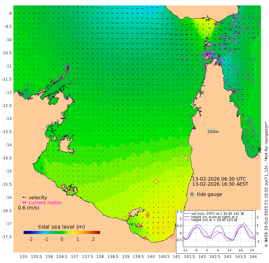 18cm/s -59T +3cm/s rms + 7cm/s -42T. ARA-GOC87 57m 12cm/s -94T +3cm/s rms + 2cm/s -2T. ARA-GOC87 60m 16cm/s -51T +2cm/s rms + 3cm/s 61T. ARA-GOC87 47m -61cm Daru -66cm Bobo Island -25cm Meer Island Barge -43cm Bramble Cay -58cm Unnamed Cay -69cm Pearce Cay -56cm Stephens Island -62cm Merrie England Shoals -71cm Mutacomal Reef -45cm Darnley Island Barge -31cm East Cay -53cm Yorke Island Barge -64cm Rennel Island -65cm Aureed Island -60cm Dungeness Reef -48cm Zagai Island -49cm Yam Island -9cm Dauan Island -9cm Saibai Island -3cm Phipi Reef -39cm Warrior Reef - West -35cm Mabuiag Island Barge -66cm Half Way Island -74cm Coconut Island -69cm Dugong Islet -70cm Poll Island -60cm Kirkcaldie Reef -70cm Suarji Island -56cm Sue Islet -45cm Hawkesbury Island -70cm Alert Patches -75cm Twin Island -37cm Badu Island -69cm St Pauls (Moa Island) -52cm Kubin (Moa Island) -62cm Ince Point -61cm Thursday Island -60cm Nardana Patches -49cm Turtle Head -46cm Round Island -44cm Goods Island -46cm Booby Island -58cm White Rocks Area -58cm Carpentaria -60cm Papou Point -61cm Bampfield Head -31cm Crab Island -54cm Red Wallis Island -58cm Packe Island -86cm Harrington Reef -34cm Herald Camp -14cm Sharp Point -36cm Red Island Point -59cm Possession Island -73cm Alpha Rock -79cm Frederick Point -81cm Wyborn Reef Light -82cm Tetley Island -34cm Triangle Reef -87cm Turtle Head Island -30cm Maclennan Cay -13cm Raine Island -59cm Mcsweeny Reef -48cm Collette Reef -24cm Shadwell Reef -52cm Hannibal Island -51cm Round Point -36cm Vrilya Point -41cm Cape Grenville -32cm Hicks Island -26cm Sir Charles Hardy Island -11cm Harvey Island -31cm Kay Reef -18cm Rocky Island -19cm Chapman Island -15cm Ham Reef -17cm Jubilee Reef -23cm Night Island -20cm Unnamed Reef No. 3 -21cm Morris Island -15cm 1st 3 Mile Opening -19cm Creech Reef -27cm Fife Island -17cm Eden Reef -20cm Stanley Island -27cm Normanby River -12cm Yabooma Island -10cm Hutchison River -7cm Elcho Island -2cm North West Crocodile Island -38cm Cape Wessel -26cm Stevens Island -13cm Guluwuru Island -15cm Hopeful Bay -30cm Auster Point -25cm Two Island Bay -10cm Cadell Strait -17cm Mallison Island -16cm Melville Bay (Gove Harbour) -27cm Truant Island -13cm Cape Arnhem 8cm Cape Grey 11cm Hawk Island 20cm Milner Bay (Groote Eylandt) 29cm Cape Beatrice 35cm West Island 36cm Centre Island 86cm Mornington Island 80cm West Wellesley Islands 121cm Bountiful Island 150cm Albert River Mouth 141cm Sweers Island 149cm Karumba 74cm Nassau River Offshore 51cm Christmas Creek 20cm Archer River -1cm Boyd Point 10cm Weipa (Humbug Point) -17cm Pennefather River -24cm Cullen Point