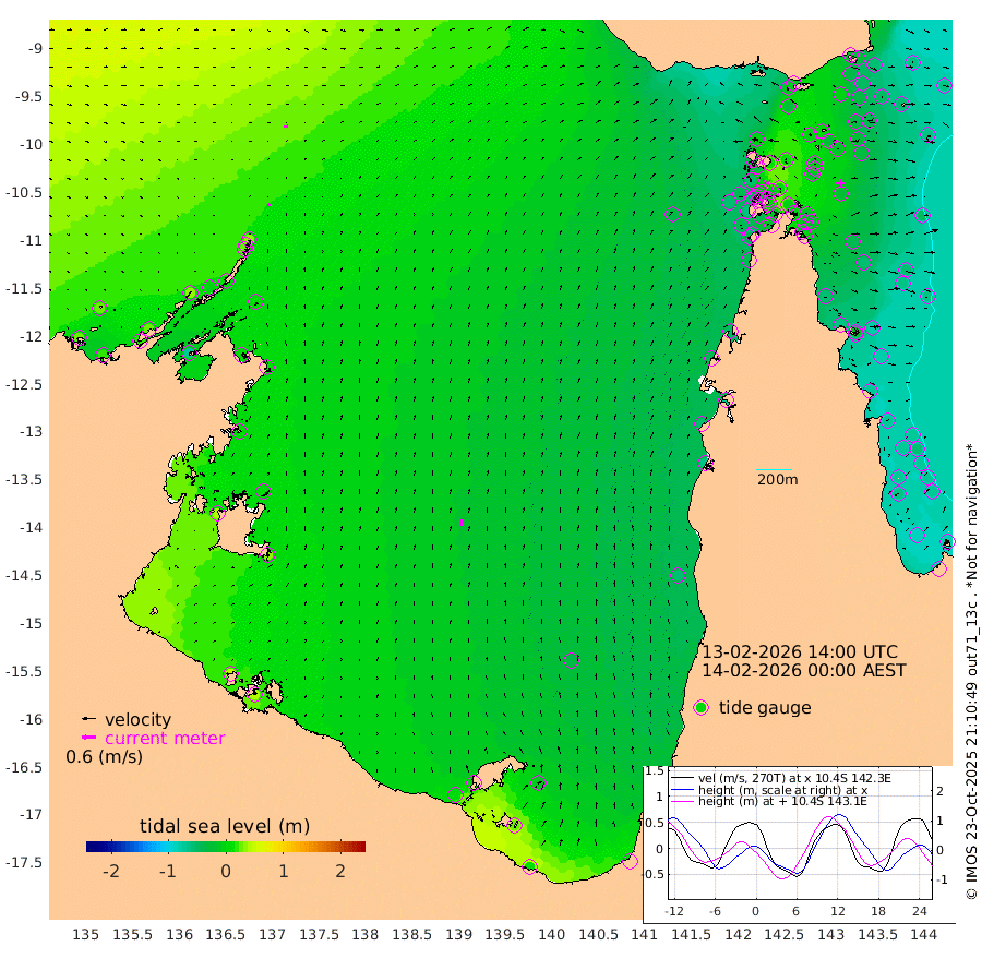 12cm/s 75T +3cm/s rms + 7cm/s -42T. ARA-GOC87 57m 29cm/s 9T +3cm/s rms + 2cm/s -2T. ARA-GOC87 60m 17cm/s 86T +2cm/s rms + 3cm/s 61T. ARA-GOC87 47m -30cm Daru -25cm Bobo Island -64cm Meer Island Barge -62cm Bramble Cay -52cm Unnamed Cay -34cm Pearce Cay -48cm Stephens Island -55cm Merrie England Shoals -35cm Mutacomal Reef -55cm Darnley Island Barge -66cm East Cay -41cm Yorke Island Barge -36cm Rennel Island -25cm Aureed Island -24cm Dungeness Reef 2cm Zagai Island -3cm Yam Island -12cm Dauan Island -12cm Saibai Island -23cm Phipi Reef -7cm Warrior Reef - West -4cm Mabuiag Island Barge -30cm Half Way Island -15cm Coconut Island -26cm Dugong Islet -4cm Poll Island -16cm Kirkcaldie Reef 9cm Suarji Island -14cm Sue Islet -58cm Hawkesbury Island -9cm Alert Patches 1cm Twin Island -38cm Badu Island 9cm St Pauls (Moa Island) -30cm Kubin (Moa Island) -8cm Ince Point -12cm Thursday Island -11cm Nardana Patches -34cm Turtle Head -42cm Round Island -53cm Goods Island -54cm Booby Island -41cm White Rocks Area -33cm Carpentaria 7cm Papou Point -63cm Bampfield Head -43cm Crab Island -43cm Red Wallis Island -39cm Packe Island -13cm Harrington Reef -66cm Herald Camp 7cm Sharp Point -29cm Red Island Point -16cm Possession Island -2cm Alpha Rock -6cm Frederick Point -23cm Wyborn Reef Light -17cm Tetley Island -51cm Triangle Reef -25cm Turtle Head Island -59cm Maclennan Cay -67cm Raine Island -43cm Mcsweeny Reef -54cm Collette Reef -66cm Shadwell Reef -59cm Hannibal Island -62cm Round Point -39cm Vrilya Point -65cm Cape Grenville -63cm Hicks Island -77cm Sir Charles Hardy Island -19cm Harvey Island -76cm Kay Reef -72cm Rocky Island -73cm Chapman Island -73cm Ham Reef -70cm Jubilee Reef -59cm Night Island -70cm Unnamed Reef No. 3 -73cm Morris Island -72cm 1st 3 Mile Opening -71cm Creech Reef -61cm Fife Island -88cm Eden Reef -79cm Stanley Island -76cm Normanby River 23cm Yabooma Island 19cm Hutchison River 25cm Elcho Island 28cm North West Crocodile Island 30cm Cape Wessel 31cm Stevens Island -2cm Guluwuru Island 14cm Hopeful Bay 26cm Auster Point 27cm Two Island Bay 20cm Cadell Strait -73cm Mallison Island 8cm Melville Bay (Gove Harbour) 12cm Truant Island 9cm Cape Arnhem 12cm Cape Grey 12cm Hawk Island 42cm Milner Bay (Groote Eylandt) 31cm Cape Beatrice 46cm West Island 45cm Centre Island -2cm Mornington Island 0cm West Wellesley Islands -14cm Bountiful Island 12cm Albert River Mouth 25cm Sweers Island -1cm Karumba -35cm Nassau River Offshore -60cm Christmas Creek -66cm Archer River -59cm Boyd Point -69cm Weipa (Humbug Point) -42cm Pennefather River -47cm Cullen Point