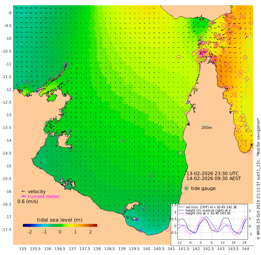 8cm/s -159T +3cm/s rms + 7cm/s -42T. ARA-GOC87 57m 30cm/s 167T +3cm/s rms + 2cm/s -2T. ARA-GOC87 60m 14cm/s -120T +2cm/s rms + 3cm/s 61T. ARA-GOC87 47m 140cm Daru 138cm Bobo Island 94cm Meer Island Barge 125cm Bramble Cay 146cm Unnamed Cay 145cm Pearce Cay 135cm Stephens Island 153cm Merrie England Shoals 158cm Mutacomal Reef 123cm Darnley Island Barge 108cm East Cay 129cm Yorke Island Barge 144cm Rennel Island 135cm Aureed Island 132cm Dungeness Reef 99cm Zagai Island 106cm Yam Island 66cm Dauan Island 64cm Saibai Island 74cm Phipi Reef 104cm Warrior Reef - West 75cm Mabuiag Island Barge 137cm Half Way Island 141cm Coconut Island 143cm Dugong Islet 128cm Poll Island 127cm Kirkcaldie Reef 122cm Suarji Island 119cm Sue Islet 108cm Hawkesbury Island 129cm Alert Patches 127cm Twin Island 88cm Badu Island 114cm St Pauls (Moa Island) 102cm Kubin (Moa Island) 111cm Ince Point 106cm Thursday Island 106cm Nardana Patches 106cm Turtle Head 100cm Round Island 99cm Goods Island 89cm Booby Island 99cm White Rocks Area 73cm Carpentaria 98cm Papou Point 113cm Bampfield Head 63cm Crab Island 96cm Red Wallis Island 113cm Packe Island 156cm Harrington Reef 100cm Herald Camp 25cm Sharp Point 86cm Red Island Point 107cm Possession Island 126cm Alpha Rock 139cm Frederick Point 156cm Wyborn Reef Light 153cm Tetley Island 100cm Triangle Reef 155cm Turtle Head Island 99cm Maclennan Cay 77cm Raine Island 137cm Mcsweeny Reef 130cm Collette Reef 99cm Shadwell Reef 140cm Hannibal Island 137cm Round Point 58cm Vrilya Point 124cm Cape Grenville 108cm Hicks Island 114cm Sir Charles Hardy Island 35cm Harvey Island 115cm Kay Reef 92cm Rocky Island 94cm Chapman Island 86cm Ham Reef 87cm Jubilee Reef 85cm Night Island 92cm Unnamed Reef No. 3 95cm Morris Island 82cm 1st 3 Mile Opening 90cm Creech Reef 96cm Fife Island 100cm Eden Reef 99cm Stanley Island 106cm Normanby River -37cm Yabooma Island -36cm Hutchison River -45cm Elcho Island -49cm North West Crocodile Island -6cm Cape Wessel -24cm Stevens Island -1cm Guluwuru Island -22cm Hopeful Bay -15cm Auster Point -25cm Two Island Bay -34cm Cadell Strait 74cm Mallison Island -3cm Melville Bay (Gove Harbour) 2cm Truant Island -3cm Cape Arnhem -22cm Cape Grey -19cm Hawk Island -56cm Milner Bay (Groote Eylandt) -49cm Cape Beatrice -63cm West Island -65cm Centre Island -58cm Mornington Island -51cm West Wellesley Islands -78cm Bountiful Island -134cm Albert River Mouth -140cm Sweers Island -119cm Karumba -16cm Nassau River Offshore 23cm Christmas Creek 44cm Archer River 55cm Boyd Point 52cm Weipa (Humbug Point) 46cm Pennefather River 58cm Cullen Point