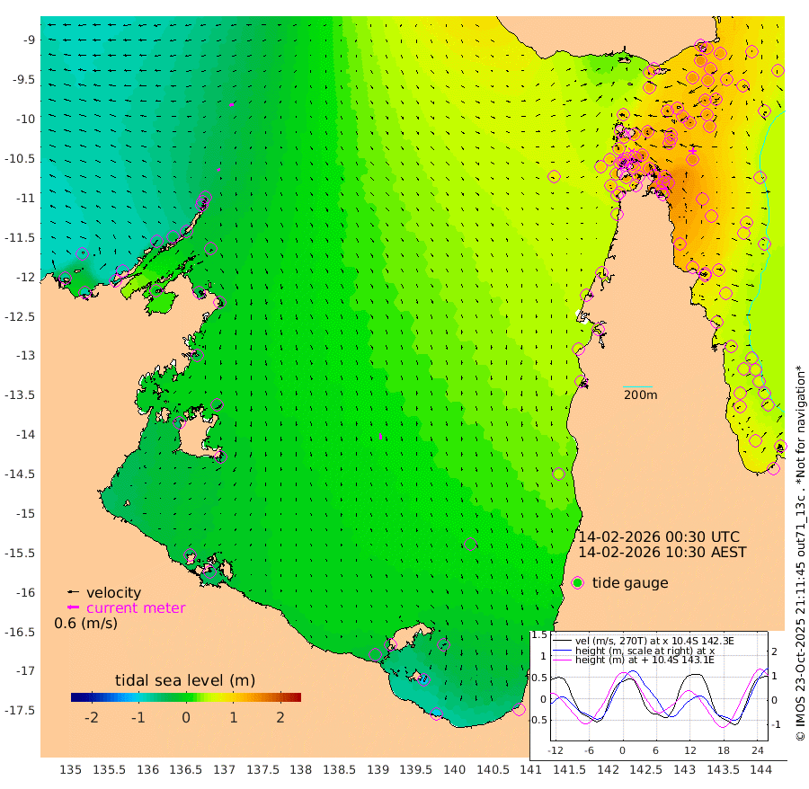15cm/s -110T +3cm/s rms + 7cm/s -42T. ARA-GOC87 57m 30cm/s 171T +3cm/s rms + 2cm/s -2T. ARA-GOC87 60m 23cm/s -103T +2cm/s rms + 3cm/s 61T. ARA-GOC87 47m 139cm Daru 135cm Bobo Island 69cm Meer Island Barge 99cm Bramble Cay 128cm Unnamed Cay 136cm Pearce Cay 118cm Stephens Island 128cm Merrie England Shoals 150cm Mutacomal Reef 104cm Darnley Island Barge 83cm East Cay 120cm Yorke Island Barge 138cm Rennel Island 134cm Aureed Island 141cm Dungeness Reef 127cm Zagai Island 133cm Yam Island 115cm Dauan Island 106cm Saibai Island 120cm Phipi Reef 139cm Warrior Reef - West 111cm Mabuiag Island Barge 130cm Half Way Island 147cm Coconut Island 143cm Dugong Islet 146cm Poll Island 141cm Kirkcaldie Reef 157cm Suarji Island 135cm Sue Islet 125cm Hawkesbury Island 156cm Alert Patches 154cm Twin Island 113cm Badu Island 149cm St Pauls (Moa Island) 125cm Kubin (Moa Island) 139cm Ince Point 133cm Thursday Island 134cm Nardana Patches 130cm Turtle Head 120cm Round Island 115cm Goods Island 102cm Booby Island 112cm White Rocks Area 77cm Carpentaria 126cm Papou Point 122cm Bampfield Head 74cm Crab Island 110cm Red Wallis Island 132cm Packe Island 159cm Harrington Reef 120cm Herald Camp 38cm Sharp Point 109cm Red Island Point 132cm Possession Island 143cm Alpha Rock 156cm Frederick Point 153cm Wyborn Reef Light 155cm Tetley Island 84cm Triangle Reef 149cm Turtle Head Island 79cm Maclennan Cay 52cm Raine Island 124cm Mcsweeny Reef 112cm Collette Reef 75cm Shadwell Reef 116cm Hannibal Island 110cm Round Point 63cm Vrilya Point 97cm Cape Grenville 85cm Hicks Island 90cm Sir Charles Hardy Island 28cm Harvey Island 82cm Kay Reef 65cm Rocky Island 66cm Chapman Island 59cm Ham Reef 60cm Jubilee Reef 63cm Night Island 64cm Unnamed Reef No. 3 66cm Morris Island 56cm 1st 3 Mile Opening 63cm Creech Reef 71cm Fife Island 62cm Eden Reef 66cm Stanley Island 72cm Normanby River -71cm Yabooma Island -75cm Hutchison River -80cm Elcho Island -79cm North West Crocodile Island -37cm Cape Wessel -64cm Stevens Island -36cm Guluwuru Island -59cm Hopeful Bay -47cm Auster Point -57cm Two Island Bay -71cm Cadell Strait -10cm Mallison Island -31cm Melville Bay (Gove Harbour) -28cm Truant Island -20cm Cape Arnhem -31cm Cape Grey -23cm Hawk Island -53cm Milner Bay (Groote Eylandt) -43cm Cape Beatrice -45cm West Island -47cm Centre Island -33cm Mornington Island -28cm West Wellesley Islands -50cm Bountiful Island -104cm Albert River Mouth -112cm Sweers Island -84cm Karumba 5cm Nassau River Offshore 39cm Christmas Creek 49cm Archer River 61cm Boyd Point 59cm Weipa (Humbug Point) 47cm Pennefather River 67cm Cullen Point