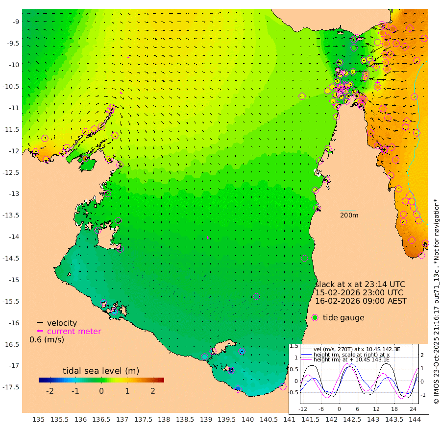 23cm/s 126T +3cm/s rms + 7cm/s -42T. ARA-GOC87 57m 26cm/s 165T +3cm/s rms + 2cm/s -2T. ARA-GOC87 60m 15cm/s 134T +2cm/s rms + 3cm/s 61T. ARA-GOC87 47m 132cm Daru 130cm Bobo Island 118cm Meer Island Barge 147cm Bramble Cay 157cm Unnamed Cay 143cm Pearce Cay 147cm Stephens Island 167cm Merrie England Shoals 153cm Mutacomal Reef 136cm Darnley Island Barge 128cm East Cay 130cm Yorke Island Barge 141cm Rennel Island 122cm Aureed Island 116cm Dungeness Reef 61cm Zagai Island 72cm Yam Island 17cm Dauan Island 11cm Saibai Island 19cm Phipi Reef 60cm Warrior Reef - West 31cm Mabuiag Island Barge 139cm Half Way Island 120cm Coconut Island 136cm Dugong Islet 100cm Poll Island 106cm Kirkcaldie Reef 67cm Suarji Island 90cm Sue Islet 89cm Hawkesbury Island 85cm Alert Patches 85cm Twin Island 65cm Badu Island 68cm St Pauls (Moa Island) 79cm Kubin (Moa Island) 72cm Ince Point 70cm Thursday Island 69cm Nardana Patches 76cm Turtle Head 72cm Round Island 84cm Goods Island 76cm Booby Island 85cm White Rocks Area 54cm Carpentaria 63cm Papou Point 91cm Bampfield Head 51cm Crab Island 77cm Red Wallis Island 88cm Packe Island 138cm Harrington Reef 73cm Herald Camp 5cm Sharp Point 54cm Red Island Point 67cm Possession Island 92cm Alpha Rock 107cm Frederick Point 146cm Wyborn Reef Light 137cm Tetley Island 106cm Triangle Reef 155cm Turtle Head Island 115cm Maclennan Cay 102cm Raine Island 142cm Mcsweeny Reef 138cm Collette Reef 117cm Shadwell Reef 154cm Hannibal Island 155cm Round Point 48cm Vrilya Point 141cm Cape Grenville 128cm Hicks Island 134cm Sir Charles Hardy Island 40cm Harvey Island 139cm Kay Reef 114cm Rocky Island 112cm Chapman Island 106cm Ham Reef 113cm Jubilee Reef 104cm Night Island 110cm Unnamed Reef No. 3 122cm Morris Island 112cm 1st 3 Mile Opening 114cm Creech Reef 115cm Fife Island 137cm Eden Reef 128cm Stanley Island 139cm Normanby River 84cm Yabooma Island 100cm Hutchison River 73cm Elcho Island 62cm North West Crocodile Island 71cm Cape Wessel 87cm Stevens Island 85cm Guluwuru Island 73cm Hopeful Bay 72cm Auster Point 71cm Two Island Bay 90cm Cadell Strait 171cm Mallison Island 68cm Melville Bay (Gove Harbour) 77cm Truant Island 41cm Cape Arnhem 5cm Cape Grey -10cm Hawk Island -57cm Milner Bay (Groote Eylandt) -57cm Cape Beatrice -97cm West Island -104cm Centre Island -100cm Mornington Island -90cm West Wellesley Islands -117cm Bountiful Island -154cm Albert River Mouth -176cm Sweers Island -156cm Karumba -52cm Nassau River Offshore -8cm Christmas Creek 25cm Archer River 38cm Boyd Point 39cm Weipa (Humbug Point) 36cm Pennefather River 40cm Cullen Point