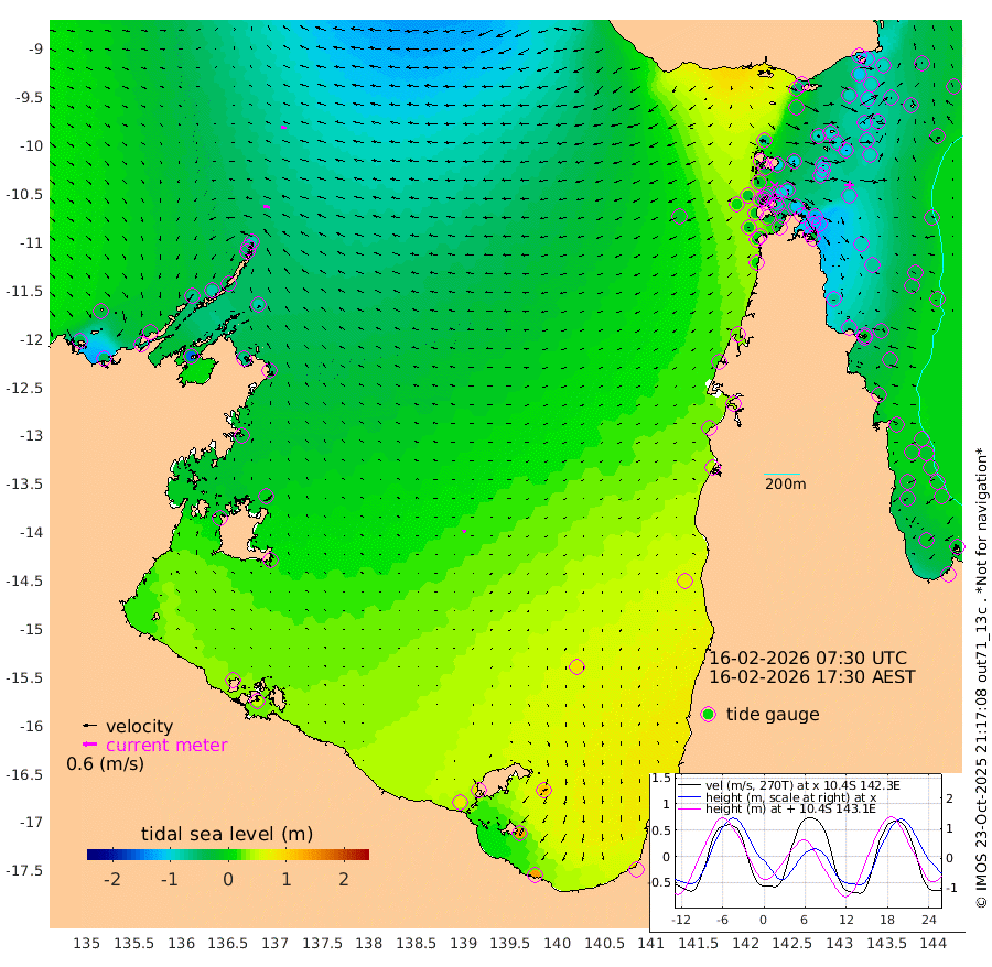 28cm/s -79T +3cm/s rms + 7cm/s -42T. ARA-GOC87 57m 14cm/s -97T +3cm/s rms + 2cm/s -2T. ARA-GOC87 60m 24cm/s -80T +2cm/s rms + 3cm/s 61T. ARA-GOC87 47m -100cm Daru -100cm Bobo Island -28cm Meer Island Barge -59cm Bramble Cay -87cm Unnamed Cay -90cm Pearce Cay -75cm Stephens Island -89cm Merrie England Shoals -110cm Mutacomal Reef -63cm Darnley Island Barge -33cm East Cay -81cm Yorke Island Barge -90cm Rennel Island -90cm Aureed Island -88cm Dungeness Reef -94cm Zagai Island -89cm Yam Island -50cm Dauan Island -58cm Saibai Island -34cm Phipi Reef -85cm Warrior Reef - West -62cm Mabuiag Island Barge -89cm Half Way Island -107cm Coconut Island -96cm Dugong Islet -102cm Poll Island -92cm Kirkcaldie Reef -98cm Suarji Island -97cm Sue Islet -16cm Hawkesbury Island -91cm Alert Patches -99cm Twin Island -30cm Badu Island -98cm St Pauls (Moa Island) -38cm Kubin (Moa Island) -74cm Ince Point -62cm Thursday Island -65cm Nardana Patches -37cm Turtle Head -20cm Round Island -11cm Goods Island 4cm Booby Island -15cm White Rocks Area -13cm Carpentaria -85cm Papou Point -8cm Bampfield Head 13cm Crab Island -8cm Red Wallis Island -28cm Packe Island -115cm Harrington Reef 15cm Herald Camp -27cm Sharp Point -26cm Red Island Point -56cm Possession Island -105cm Alpha Rock -107cm Frederick Point -121cm Wyborn Reef Light -123cm Tetley Island -40cm Triangle Reef -114cm Turtle Head Island -30cm Maclennan Cay -8cm Raine Island -83cm Mcsweeny Reef -69cm Collette Reef -32cm Shadwell Reef -74cm Hannibal Island -63cm Round Point 12cm Vrilya Point -48cm Cape Grenville -36cm Hicks Island -35cm Sir Charles Hardy Island -12cm Harvey Island -35cm Kay Reef -16cm Rocky Island -14cm Chapman Island -11cm Ham Reef -17cm Jubilee Reef -17cm Night Island -15cm Unnamed Reef No. 3 -18cm Morris Island -9cm 1st 3 Mile Opening -14cm Creech Reef -25cm Fife Island -10cm Eden Reef -15cm Stanley Island -23cm Normanby River -32cm Yabooma Island -45cm Hutchison River -31cm Elcho Island -25cm North West Crocodile Island -76cm Cape Wessel -65cm Stevens Island -77cm Guluwuru Island -39cm Hopeful Bay -59cm Auster Point -52cm Two Island Bay -60cm Cadell Strait -151cm Mallison Island -66cm Melville Bay (Gove Harbour) -78cm Truant Island -50cm Cape Arnhem -25cm Cape Grey -7cm Hawk Island 8cm Milner Bay (Groote Eylandt) 21cm Cape Beatrice 37cm West Island 46cm Centre Island 90cm Mornington Island 80cm West Wellesley Islands 114cm Bountiful Island 139cm Albert River Mouth 137cm Sweers Island 152cm Karumba 88cm Nassau River Offshore 71cm Christmas Creek 50cm Archer River 27cm Boyd Point 45cm Weipa (Humbug Point) 20cm Pennefather River 23cm Cullen Point