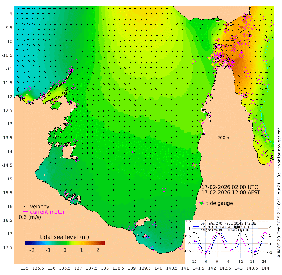 4cm/s -149T +3cm/s rms + 7cm/s -42T. ARA-GOC87 57m 33cm/s 169T +3cm/s rms + 2cm/s -2T. ARA-GOC87 60m 13cm/s -98T +2cm/s rms + 3cm/s 61T. ARA-GOC87 47m 164cm Daru 148cm Bobo Island 55cm Meer Island Barge 93cm Bramble Cay 135cm Unnamed Cay 135cm Pearce Cay 117cm Stephens Island 132cm Merrie England Shoals 169cm Mutacomal Reef 103cm Darnley Island Barge 64cm East Cay 129cm Yorke Island Barge 147cm Rennel Island 139cm Aureed Island 157cm Dungeness Reef 168cm Zagai Island 173cm Yam Island 169cm Dauan Island 157cm Saibai Island 157cm Phipi Reef 185cm Warrior Reef - West 139cm Mabuiag Island Barge 138cm Half Way Island 164cm Coconut Island 156cm Dugong Islet 171cm Poll Island 165cm Kirkcaldie Reef 177cm Suarji Island 163cm Sue Islet 107cm Hawkesbury Island 171cm Alert Patches 174cm Twin Island 112cm Badu Island 180cm St Pauls (Moa Island) 127cm Kubin (Moa Island) 155cm Ince Point 140cm Thursday Island 145cm Nardana Patches 127cm Turtle Head 107cm Round Island 93cm Goods Island 67cm Booby Island 79cm White Rocks Area 45cm Carpentaria 149cm Papou Point 80cm Bampfield Head 51cm Crab Island 83cm Red Wallis Island 122cm Packe Island 171cm Harrington Reef 95cm Herald Camp 53cm Sharp Point 100cm Red Island Point 131cm Possession Island 170cm Alpha Rock 176cm Frederick Point 175cm Wyborn Reef Light 181cm Tetley Island 76cm Triangle Reef 159cm Turtle Head Island 64cm Maclennan Cay 31cm Raine Island 128cm Mcsweeny Reef 111cm Collette Reef 65cm Shadwell Reef 114cm Hannibal Island 99cm Round Point 37cm Vrilya Point 83cm Cape Grenville 70cm Hicks Island 77cm Sir Charles Hardy Island 24cm Harvey Island 61cm Kay Reef 43cm Rocky Island 39cm Chapman Island 35cm Ham Reef 41cm Jubilee Reef 45cm Night Island 39cm Unnamed Reef No. 3 44cm Morris Island 33cm 1st 3 Mile Opening 40cm Creech Reef 54cm Fife Island 32cm Eden Reef 41cm Stanley Island 44cm Normanby River -65cm Yabooma Island -60cm Hutchison River -69cm Elcho Island -69cm North West Crocodile Island -14cm Cape Wessel -38cm Stevens Island 11cm Guluwuru Island -49cm Hopeful Bay -33cm Auster Point -35cm Two Island Bay -33cm Cadell Strait 112cm Mallison Island 4cm Melville Bay (Gove Harbour) 10cm Truant Island 8cm Cape Arnhem -16cm Cape Grey -15cm Hawk Island -52cm Milner Bay (Groote Eylandt) -43cm Cape Beatrice -57cm West Island -65cm Centre Island -41cm Mornington Island -37cm West Wellesley Islands -67cm Bountiful Island -102cm Albert River Mouth -128cm Sweers Island -93cm Karumba -5cm Nassau River Offshore 27cm Christmas Creek 26cm Archer River 42cm Boyd Point 34cm Weipa (Humbug Point) 26cm Pennefather River 42cm Cullen Point