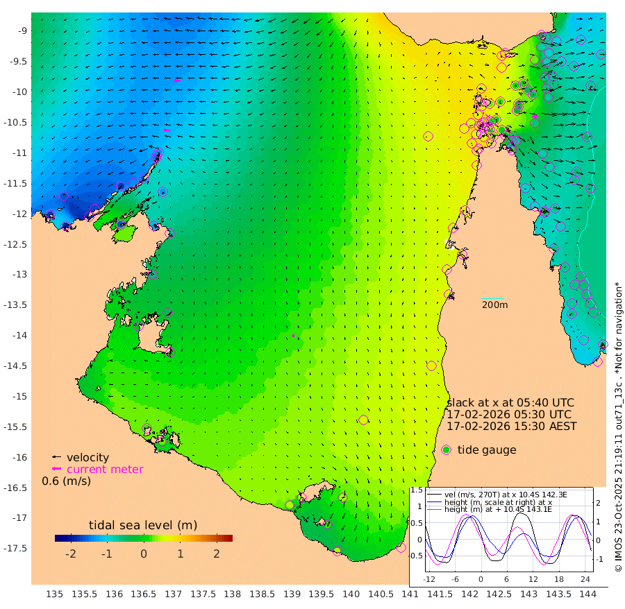 41cm/s -84T +3cm/s rms + 7cm/s -42T. ARA-GOC87 57m 19cm/s -168T +3cm/s rms + 2cm/s -2T. ARA-GOC87 60m 45cm/s -91T +2cm/s rms + 3cm/s 61T. ARA-GOC87 47m -62cm Daru -74cm Bobo Island -70cm Meer Island Barge -91cm Bramble Cay -90cm Unnamed Cay -83cm Pearce Cay -86cm Stephens Island -101cm Merrie England Shoals -77cm Mutacomal Reef -79cm Darnley Island Barge -76cm East Cay -69cm Yorke Island Barge -71cm Rennel Island -61cm Aureed Island -42cm Dungeness Reef 9cm Zagai Island 11cm Yam Island 88cm Dauan Island 78cm Saibai Island 71cm Phipi Reef 29cm Warrior Reef - West 58cm Mabuiag Island Barge -73cm Half Way Island -50cm Coconut Island -60cm Dugong Islet -22cm Poll Island -26cm Kirkcaldie Reef 16cm Suarji Island -17cm Sue Islet 62cm Hawkesbury Island 14cm Alert Patches 9cm Twin Island 62cm Badu Island 25cm St Pauls (Moa Island) 54cm Kubin (Moa Island) 35cm Ince Point 43cm Thursday Island 43cm Nardana Patches 55cm Turtle Head 60cm Round Island 61cm Goods Island 75cm Booby Island 56cm White Rocks Area 74cm Carpentaria 15cm Papou Point 67cm Bampfield Head 73cm Crab Island 77cm Red Wallis Island 66cm Packe Island -66cm Harrington Reef 93cm Herald Camp 17cm Sharp Point 46cm Red Island Point 29cm Possession Island -4cm Alpha Rock -22cm Frederick Point -72cm Wyborn Reef Light -59cm Tetley Island -48cm Triangle Reef -87cm Turtle Head Island -59cm Maclennan Cay -56cm Raine Island -78cm Mcsweeny Reef -77cm Collette Reef -62cm Shadwell Reef -93cm Hannibal Island -94cm Round Point 68cm Vrilya Point -81cm Cape Grenville -74cm Hicks Island -64cm Sir Charles Hardy Island -23cm Harvey Island -83cm Kay Reef -64cm Rocky Island -60cm Chapman Island -55cm Ham Reef -63cm Jubilee Reef -54cm Night Island -57cm Unnamed Reef No. 3 -71cm Morris Island -62cm 1st 3 Mile Opening -62cm Creech Reef -64cm Fife Island -84cm Eden Reef -74cm Stanley Island -90cm Normanby River -175cm Yabooma Island -201cm Hutchison River -170cm Elcho Island -159cm North West Crocodile Island -138cm Cape Wessel -180cm Stevens Island -139cm Guluwuru Island -154cm Hopeful Bay -149cm Auster Point -145cm Two Island Bay -186cm Cadell Strait -161cm Mallison Island -124cm Melville Bay (Gove Harbour) -132cm Truant Island -81cm Cape Arnhem -66cm Cape Grey -40cm Hawk Island -27cm Milner Bay (Groote Eylandt) -10cm Cape Beatrice 22cm West Island 28cm Centre Island 51cm Mornington Island 42cm West Wellesley Islands 38cm Bountiful Island 38cm Albert River Mouth 19cm Sweers Island 57cm Karumba 65cm Nassau River Offshore 73cm Christmas Creek 60cm Archer River 64cm Boyd Point 68cm Weipa (Humbug Point) 49cm Pennefather River 82cm Cullen Point