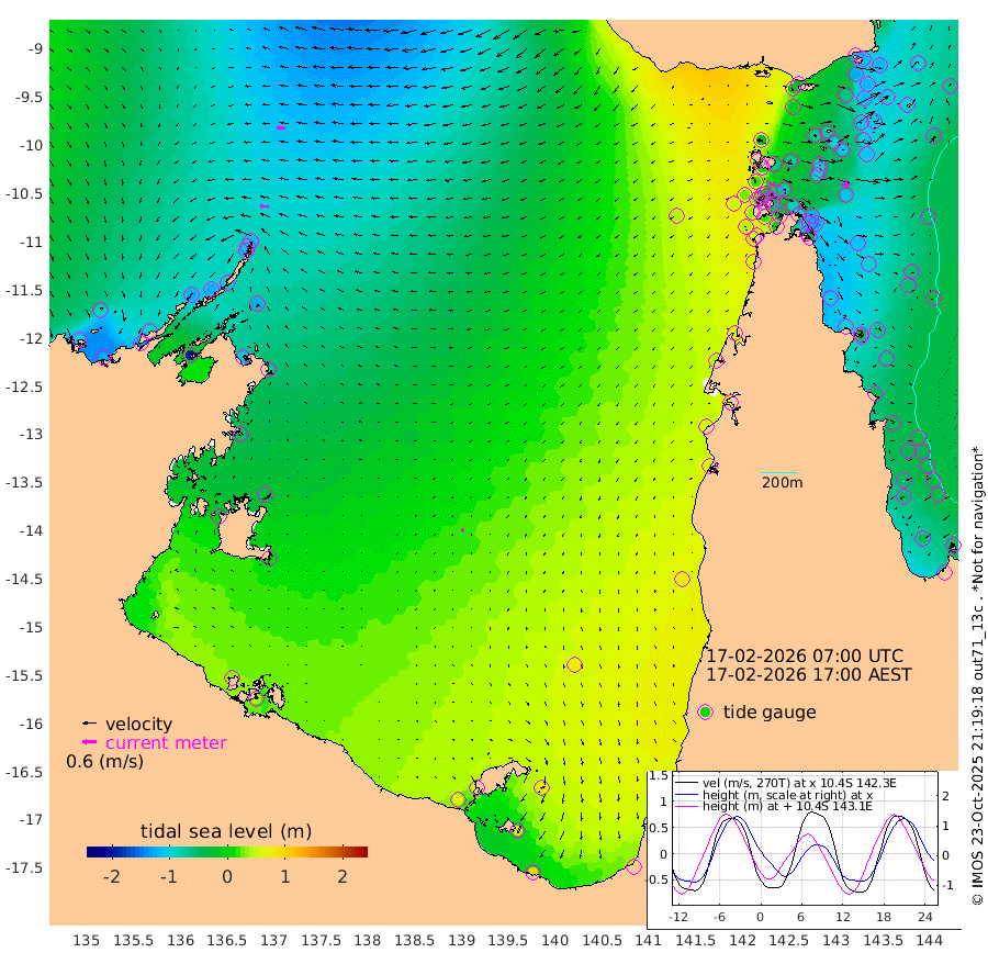 38cm/s -84T +3cm/s rms + 7cm/s -42T. ARA-GOC87 57m 13cm/s -127T +3cm/s rms + 2cm/s -2T. ARA-GOC87 60m 37cm/s -90T +2cm/s rms + 3cm/s 61T. ARA-GOC87 47m -114cm Daru -118cm Bobo Island -58cm Meer Island Barge -91cm Bramble Cay -115cm Unnamed Cay -113cm Pearce Cay -103cm Stephens Island -120cm Merrie England Shoals -126cm Mutacomal Reef -91cm Darnley Island Barge -64cm East Cay -102cm Yorke Island Barge -108cm Rennel Island -103cm Aureed Island -95cm Dungeness Reef -78cm Zagai Island -73cm Yam Island -11cm Dauan Island -22cm Saibai Island -11cm Phipi Reef -65cm Warrior Reef - West -25cm Mabuiag Island Barge -106cm Half Way Island -110cm Coconut Island -108cm Dugong Islet -95cm Poll Island -90cm Kirkcaldie Reef -74cm Suarji Island -91cm Sue Islet 22cm Hawkesbury Island -67cm Alert Patches -75cm Twin Island 9cm Badu Island -69cm St Pauls (Moa Island) -1cm Kubin (Moa Island) -42cm Ince Point -26cm Thursday Island -29cm Nardana Patches 0cm Turtle Head 16cm Round Island 28cm Goods Island 51cm Booby Island 29cm White Rocks Area 43cm Carpentaria -62cm Papou Point 37cm Bampfield Head 54cm Crab Island 44cm Red Wallis Island 18cm Packe Island -123cm Harrington Reef 59cm Herald Camp -16cm Sharp Point 2cm Red Island Point -31cm Possession Island -86cm Alpha Rock -97cm Frederick Point -131cm Wyborn Reef Light -127cm Tetley Island -56cm Triangle Reef -133cm Turtle Head Island -53cm Maclennan Cay -33cm Raine Island -105cm Mcsweeny Reef -94cm Collette Reef -57cm Shadwell Reef -105cm Hannibal Island -94cm Round Point 53cm Vrilya Point -77cm Cape Grenville -66cm Hicks Island -60cm Sir Charles Hardy Island -21cm Harvey Island -67cm Kay Reef -45cm Rocky Island -39cm Chapman Island -35cm Ham Reef -44cm Jubilee Reef -39cm Night Island -38cm Unnamed Reef No. 3 -49cm Morris Island -37cm 1st 3 Mile Opening -40cm Creech Reef -50cm Fife Island -47cm Eden Reef -48cm Stanley Island -60cm Normanby River -100cm Yabooma Island -123cm Hutchison River -97cm Elcho Island -88cm North West Crocodile Island -115cm Cape Wessel -127cm Stevens Island -126cm Guluwuru Island -96cm Hopeful Bay -109cm Auster Point -102cm Two Island Bay -132cm Cadell Strait -198cm Mallison Island -109cm Melville Bay (Gove Harbour) -121cm Truant Island -77cm Cape Arnhem -55cm Cape Grey -29cm Hawk Island -10cm Milner Bay (Groote Eylandt) 6cm Cape Beatrice 33cm West Island 43cm Centre Island 74cm Mornington Island 64cm West Wellesley Islands 80cm Bountiful Island 98cm Albert River Mouth 87cm Sweers Island 114cm Karumba 82cm Nassau River Offshore 77cm Christmas Creek 64cm Archer River 53cm Boyd Point 67cm Weipa (Humbug Point) 45cm Pennefather River 65cm Cullen Point