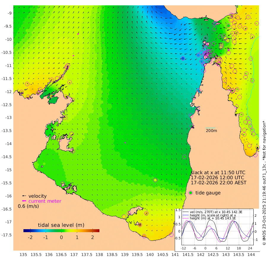 21cm/s 68T +3cm/s rms + 7cm/s -42T. ARA-GOC87 57m 20cm/s -26T +3cm/s rms + 2cm/s -2T. ARA-GOC87 60m 29cm/s 59T +2cm/s rms + 3cm/s 61T. ARA-GOC87 47m 79cm Daru 83cm Bobo Island 54cm Meer Island Barge 82cm Bramble Cay 89cm Unnamed Cay 84cm Pearce Cay 82cm Stephens Island 99cm Merrie England Shoals 87cm Mutacomal Reef 73cm Darnley Island Barge 64cm East Cay 71cm Yorke Island Barge 76cm Rennel Island 68cm Aureed Island 59cm Dungeness Reef 17cm Zagai Island 12cm Yam Island -47cm Dauan Island -47cm Saibai Island -3cm Phipi Reef 11cm Warrior Reef - West -52cm Mabuiag Island Barge 73cm Half Way Island 61cm Coconut Island 63cm Dugong Islet 37cm Poll Island 43cm Kirkcaldie Reef 9cm Suarji Island 30cm Sue Islet -102cm Hawkesbury Island -3cm Alert Patches 0cm Twin Island -90cm Badu Island -11cm St Pauls (Moa Island) -77cm Kubin (Moa Island) -36cm Ince Point -54cm Thursday Island -50cm Nardana Patches -70cm Turtle Head -75cm Round Island -105cm Goods Island -137cm Booby Island -117cm White Rocks Area -158cm Carpentaria -10cm Papou Point -128cm Bampfield Head -113cm Crab Island -133cm Red Wallis Island -92cm Packe Island 72cm Harrington Reef -116cm Herald Camp -2cm Sharp Point -54cm Red Island Point -23cm Possession Island 8cm Alpha Rock 31cm Frederick Point 76cm Wyborn Reef Light 65cm Tetley Island 38cm Triangle Reef 80cm Turtle Head Island 43cm Maclennan Cay 37cm Raine Island 76cm Mcsweeny Reef 76cm Collette Reef 53cm Shadwell Reef 89cm Hannibal Island 85cm Round Point -118cm Vrilya Point 70cm Cape Grenville 64cm Hicks Island 45cm Sir Charles Hardy Island 21cm Harvey Island 64cm Kay Reef 48cm Rocky Island 42cm Chapman Island 34cm Ham Reef 42cm Jubilee Reef 42cm Night Island 36cm Unnamed Reef No. 3 51cm Morris Island 37cm 1st 3 Mile Opening 41cm Creech Reef 52cm Fife Island 57cm Eden Reef 53cm Stanley Island 67cm Normanby River 92cm Yabooma Island 110cm Hutchison River 90cm Elcho Island 88cm North West Crocodile Island 57cm Cape Wessel 103cm Stevens Island 70cm Guluwuru Island 93cm Hopeful Bay 76cm Auster Point 68cm Two Island Bay 109cm Cadell Strait 106cm Mallison Island 72cm Melville Bay (Gove Harbour) 68cm Truant Island 47cm Cape Arnhem 57cm Cape Grey 60cm Hawk Island 58cm Milner Bay (Groote Eylandt) 52cm Cape Beatrice 42cm West Island 43cm Centre Island 81cm Mornington Island 78cm West Wellesley Islands 108cm Bountiful Island 136cm Albert River Mouth 167cm Sweers Island 135cm Karumba 47cm Nassau River Offshore 2cm Christmas Creek -38cm Archer River -72cm Boyd Point -71cm Weipa (Humbug Point) -65cm Pennefather River -114cm Cullen Point