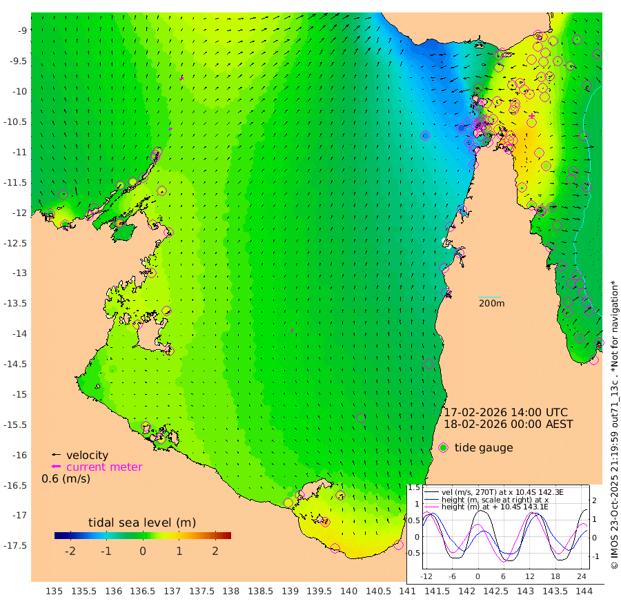 24cm/s 60T +3cm/s rms + 7cm/s -42T. ARA-GOC87 57m 23cm/s 3T +3cm/s rms + 2cm/s -2T. ARA-GOC87 60m 29cm/s 56T +2cm/s rms + 3cm/s 61T. ARA-GOC87 47m 72cm Daru 72cm Bobo Island -7cm Meer Island Barge 22cm Bramble Cay 50cm Unnamed Cay 52cm Pearce Cay 37cm Stephens Island 51cm Merrie England Shoals 72cm Mutacomal Reef 30cm Darnley Island Barge -3cm East Cay 50cm Yorke Island Barge 51cm Rennel Island 57cm Aureed Island 55cm Dungeness Reef 71cm Zagai Island 54cm Yam Island 21cm Dauan Island 34cm Saibai Island 41cm Phipi Reef 63cm Warrior Reef - West 10cm Mabuiag Island Barge 46cm Half Way Island 70cm Coconut Island 50cm Dugong Islet 62cm Poll Island 54cm Kirkcaldie Reef 61cm Suarji Island 64cm Sue Islet -111cm Hawkesbury Island 36cm Alert Patches 41cm Twin Island -75cm Badu Island 45cm St Pauls (Moa Island) -67cm Kubin (Moa Island) 3cm Ince Point -22cm Thursday Island -15cm Nardana Patches -60cm Turtle Head -73cm Round Island -118cm Goods Island -151cm Booby Island -130cm White Rocks Area -137cm Carpentaria 34cm Papou Point -137cm Bampfield Head -125cm Crab Island -139cm Red Wallis Island -94cm Packe Island 71cm Harrington Reef -132cm Herald Camp 25cm Sharp Point -46cm Red Island Point 1cm Possession Island 51cm Alpha Rock 57cm Frederick Point 78cm Wyborn Reef Light 78cm Tetley Island 1cm Triangle Reef 64cm Turtle Head Island -12cm Maclennan Cay -29cm Raine Island 45cm Mcsweeny Reef 37cm Collette Reef 0cm Shadwell Reef 40cm Hannibal Island 23cm Round Point -125cm Vrilya Point 9cm Cape Grenville 1cm Hicks Island -15cm Sir Charles Hardy Island 2cm Harvey Island -6cm Kay Reef -19cm Rocky Island -25cm Chapman Island -29cm Ham Reef -23cm Jubilee Reef -18cm Night Island -28cm Unnamed Reef No. 3 -21cm Morris Island -33cm 1st 3 Mile Opening -27cm Creech Reef -12cm Fife Island -35cm Eden Reef -25cm Stanley Island -19cm Normanby River -5cm Yabooma Island 6cm Hutchison River 2cm Elcho Island 2cm North West Crocodile Island 32cm Cape Wessel 37cm Stevens Island 49cm Guluwuru Island 22cm Hopeful Bay 29cm Auster Point 17cm Two Island Bay 35cm Cadell Strait 124cm Mallison Island 50cm Melville Bay (Gove Harbour) 51cm Truant Island 43cm Cape Arnhem 54cm Cape Grey 55cm Hawk Island 67cm Milner Bay (Groote Eylandt) 54cm Cape Beatrice 62cm West Island 60cm Centre Island 59cm Mornington Island 56cm West Wellesley Islands 68cm Bountiful Island 83cm Albert River Mouth 123cm Sweers Island 79cm Karumba 7cm Nassau River Offshore -37cm Christmas Creek -74cm Archer River -90cm Boyd Point -105cm Weipa (Humbug Point) -81cm Pennefather River -122cm Cullen Point