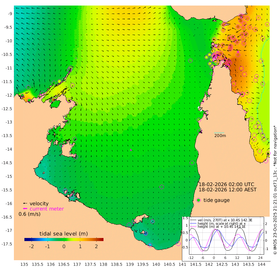 11cm/s 115T +3cm/s rms + 7cm/s -42T. ARA-GOC87 57m 31cm/s 168T +3cm/s rms + 2cm/s -2T. ARA-GOC87 60m 1cm/s -141T +2cm/s rms + 3cm/s 61T. ARA-GOC87 47m 176cm Daru 162cm Bobo Island 72cm Meer Island Barge 112cm Bramble Cay 153cm Unnamed Cay 150cm Pearce Cay 136cm Stephens Island 150cm Merrie England Shoals 181cm Mutacomal Reef 121cm Darnley Island Barge 81cm East Cay 144cm Yorke Island Barge 159cm Rennel Island 149cm Aureed Island 163cm Dungeness Reef 166cm Zagai Island 171cm Yam Island 153cm Dauan Island 142cm Saibai Island 142cm Phipi Reef 180cm Warrior Reef - West 123cm Mabuiag Island Barge 153cm Half Way Island 170cm Coconut Island 168cm Dugong Islet 172cm Poll Island 169cm Kirkcaldie Reef 165cm Suarji Island 164cm Sue Islet 87cm Hawkesbury Island 160cm Alert Patches 165cm Twin Island 93cm Badu Island 169cm St Pauls (Moa Island) 110cm Kubin (Moa Island) 141cm Ince Point 124cm Thursday Island 129cm Nardana Patches 108cm Turtle Head 85cm Round Island 73cm Goods Island 43cm Booby Island 56cm White Rocks Area 19cm Carpentaria 143cm Papou Point 51cm Bampfield Head 30cm Crab Island 57cm Red Wallis Island 100cm Packe Island 180cm Harrington Reef 67cm Herald Camp 48cm Sharp Point 84cm Red Island Point 115cm Possession Island 165cm Alpha Rock 174cm Frederick Point 185cm Wyborn Reef Light 188cm Tetley Island 84cm Triangle Reef 175cm Turtle Head Island 77cm Maclennan Cay 44cm Raine Island 142cm Mcsweeny Reef 125cm Collette Reef 78cm Shadwell Reef 132cm Hannibal Island 116cm Round Point 16cm Vrilya Point 98cm Cape Grenville 87cm Hicks Island 93cm Sir Charles Hardy Island 29cm Harvey Island 77cm Kay Reef 57cm Rocky Island 49cm Chapman Island 47cm Ham Reef 56cm Jubilee Reef 56cm Night Island 50cm Unnamed Reef No. 3 59cm Morris Island 48cm 1st 3 Mile Opening 54cm Creech Reef 67cm Fife Island 52cm Eden Reef 57cm Stanley Island 64cm Normanby River -13cm Yabooma Island 2cm Hutchison River -18cm Elcho Island -20cm North West Crocodile Island 25cm Cape Wessel 12cm Stevens Island 60cm Guluwuru Island -8cm Hopeful Bay 8cm Auster Point 11cm Two Island Bay 30cm Cadell Strait 166cm Mallison Island 43cm Melville Bay (Gove Harbour) 50cm Truant Island 34cm Cape Arnhem 3cm Cape Grey -6cm Hawk Island -49cm Milner Bay (Groote Eylandt) -42cm Cape Beatrice -68cm West Island -80cm Centre Island -55cm Mornington Island -50cm West Wellesley Islands -77cm Bountiful Island -106cm Albert River Mouth -137cm Sweers Island -104cm Karumba -20cm Nassau River Offshore 11cm Christmas Creek 9cm Archer River 25cm Boyd Point 16cm Weipa (Humbug Point) 10cm Pennefather River 19cm Cullen Point