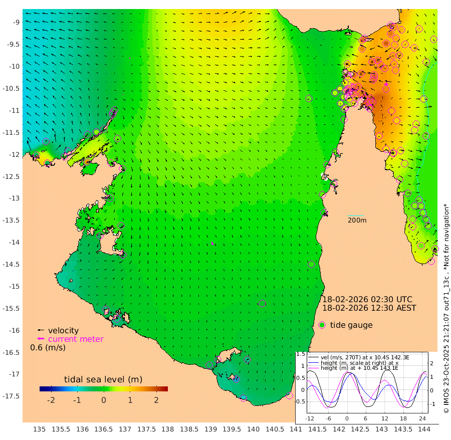 4cm/s 128T +3cm/s rms + 7cm/s -42T. ARA-GOC87 57m 31cm/s 168T +3cm/s rms + 2cm/s -2T. ARA-GOC87 60m 8cm/s -88T +2cm/s rms + 3cm/s 61T. ARA-GOC87 47m 160cm Daru 143cm Bobo Island 49cm Meer Island Barge 86cm Bramble Cay 129cm Unnamed Cay 127cm Pearce Cay 111cm Stephens Island 124cm Merrie England Shoals 162cm Mutacomal Reef 98cm Darnley Island Barge 57cm East Cay 125cm Yorke Island Barge 139cm Rennel Island 132cm Aureed Island 150cm Dungeness Reef 168cm Zagai Island 172cm Yam Island 169cm Dauan Island 159cm Saibai Island 153cm Phipi Reef 184cm Warrior Reef - West 133cm Mabuiag Island Barge 133cm Half Way Island 157cm Coconut Island 151cm Dugong Islet 165cm Poll Island 160cm Kirkcaldie Reef 167cm Suarji Island 160cm Sue Islet 86cm Hawkesbury Island 159cm Alert Patches 165cm Twin Island 96cm Badu Island 173cm St Pauls (Moa Island) 111cm Kubin (Moa Island) 144cm Ince Point 127cm Thursday Island 132cm Nardana Patches 110cm Turtle Head 87cm Round Island 71cm Goods Island 43cm Booby Island 54cm White Rocks Area 26cm Carpentaria 144cm Papou Point 51cm Bampfield Head 33cm Crab Island 59cm Red Wallis Island 101cm Packe Island 163cm Harrington Reef 71cm Herald Camp 53cm Sharp Point 86cm Red Island Point 116cm Possession Island 163cm Alpha Rock 167cm Frederick Point 168cm Wyborn Reef Light 174cm Tetley Island 68cm Triangle Reef 152cm Turtle Head Island 56cm Maclennan Cay 24cm Raine Island 121cm Mcsweeny Reef 104cm Collette Reef 58cm Shadwell Reef 107cm Hannibal Island 89cm Round Point 20cm Vrilya Point 73cm Cape Grenville 63cm Hicks Island 70cm Sir Charles Hardy Island 22cm Harvey Island 52cm Kay Reef 35cm Rocky Island 28cm Chapman Island 27cm Ham Reef 34cm Jubilee Reef 37cm Night Island 30cm Unnamed Reef No. 3 35cm Morris Island 26cm 1st 3 Mile Opening 32cm Creech Reef 45cm Fife Island 23cm Eden Reef 32cm Stanley Island 35cm Normanby River -59cm Yabooma Island -50cm Hutchison River -62cm Elcho Island -61cm North West Crocodile Island -4cm Cape Wessel -29cm Stevens Island 31cm Guluwuru Island -44cm Hopeful Bay -25cm Auster Point -23cm Two Island Bay -14cm Cadell Strait 144cm Mallison Island 17cm Melville Bay (Gove Harbour) 23cm Truant Island 18cm Cape Arnhem -8cm Cape Grey -11cm Hawk Island -48cm Milner Bay (Groote Eylandt) -39cm Cape Beatrice -55cm West Island -65cm Centre Island -41cm Mornington Island -38cm West Wellesley Islands -67cm Bountiful Island -95cm Albert River Mouth -125cm Sweers Island -90cm Karumba -10cm Nassau River Offshore 19cm Christmas Creek 12cm Archer River 29cm Boyd Point 18cm Weipa (Humbug Point) 13cm Pennefather River 25cm Cullen Point
