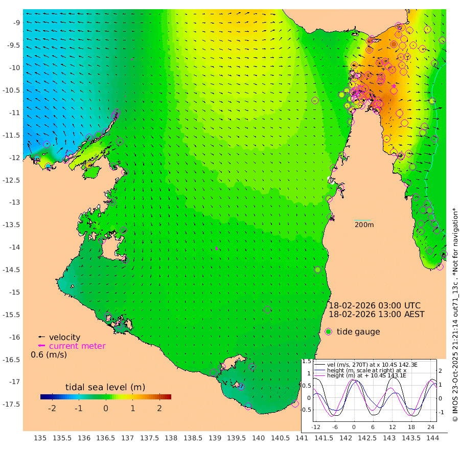 4cm/s -94T +3cm/s rms + 7cm/s -42T. ARA-GOC87 57m 31cm/s 168T +3cm/s rms + 2cm/s -2T. ARA-GOC87 60m 15cm/s -86T +2cm/s rms + 3cm/s 61T. ARA-GOC87 47m 135cm Daru 117cm Bobo Island 25cm Meer Island Barge 56cm Bramble Cay 98cm Unnamed Cay 98cm Pearce Cay 81cm Stephens Island 92cm Merrie England Shoals 135cm Mutacomal Reef 71cm Darnley Island Barge 30cm East Cay 100cm Yorke Island Barge 113cm Rennel Island 109cm Aureed Island 130cm Dungeness Reef 162cm Zagai Island 164cm Yam Island 176cm Dauan Island 168cm Saibai Island 157cm Phipi Reef 180cm Warrior Reef - West 138cm Mabuiag Island Barge 106cm Half Way Island 137cm Coconut Island 126cm Dugong Islet 150cm Poll Island 144cm Kirkcaldie Reef 160cm Suarji Island 148cm Sue Islet 84cm Hawkesbury Island 152cm Alert Patches 156cm Twin Island 97cm Badu Island 168cm St Pauls (Moa Island) 108cm Kubin (Moa Island) 140cm Ince Point 125cm Thursday Island 131cm Nardana Patches 108cm Turtle Head 87cm Round Island 69cm Goods Island 46cm Booby Island 52cm White Rocks Area 35cm Carpentaria 138cm Papou Point 51cm Bampfield Head 37cm Crab Island 62cm Red Wallis Island 100cm Packe Island 137cm Harrington Reef 74cm Herald Camp 55cm Sharp Point 85cm Red Island Point 112cm Possession Island 154cm Alpha Rock 152cm Frederick Point 142cm Wyborn Reef Light 151cm Tetley Island 49cm Triangle Reef 122cm Turtle Head Island 34cm Maclennan Cay 3cm Raine Island 93cm Mcsweeny Reef 78cm Collette Reef 36cm Shadwell Reef 77cm Hannibal Island 58cm Round Point 26cm Vrilya Point 46cm Cape Grenville 37cm Hicks Island 45cm Sir Charles Hardy Island 14cm Harvey Island 25cm Kay Reef 12cm Rocky Island 7cm Chapman Island 7cm Ham Reef 12cm Jubilee Reef 17cm Night Island 9cm Unnamed Reef No. 3 11cm Morris Island 3cm 1st 3 Mile Opening 10cm Creech Reef 22cm Fife Island -5cm Eden Reef 7cm Stanley Island 6cm Normanby River -102cm Yabooma Island -100cm Hutchison River -102cm Elcho Island -99cm North West Crocodile Island -34cm Cape Wessel -69cm Stevens Island -1cm Guluwuru Island -79cm Hopeful Bay -59cm Auster Point -57cm Two Island Bay -59cm Cadell Strait 113cm Mallison Island -11cm Melville Bay (Gove Harbour) -6cm Truant Island 1cm Cape Arnhem -19cm Cape Grey -17cm Hawk Island -46cm Milner Bay (Groote Eylandt) -35cm Cape Beatrice -41cm West Island -49cm Centre Island -27cm Mornington Island -26cm West Wellesley Islands -56cm Bountiful Island -81cm Albert River Mouth -111cm Sweers Island -75cm Karumba 0cm Nassau River Offshore 27cm Christmas Creek 17cm Archer River 34cm Boyd Point 22cm Weipa (Humbug Point) 18cm Pennefather River 33cm Cullen Point