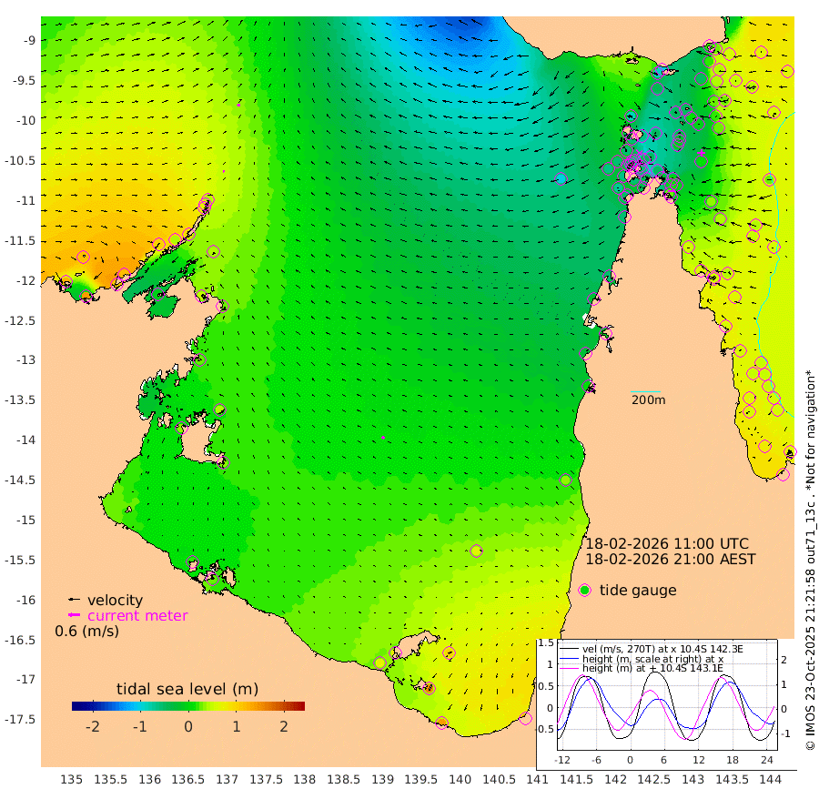 9cm/s 85T +3cm/s rms + 7cm/s -42T. ARA-GOC87 57m 18cm/s -52T +3cm/s rms + 2cm/s -2T. ARA-GOC87 60m 16cm/s 67T +2cm/s rms + 3cm/s 61T. ARA-GOC87 47m 17cm Daru 25cm Bobo Island 54cm Meer Island Barge 60cm Bramble Cay 43cm Unnamed Cay 43cm Pearce Cay 50cm Stephens Island 53cm Merrie England Shoals 22cm Mutacomal Reef 44cm Darnley Island Barge 61cm East Cay 26cm Yorke Island Barge 30cm Rennel Island 20cm Aureed Island 9cm Dungeness Reef -50cm Zagai Island -47cm Yam Island -85cm Dauan Island -100cm Saibai Island -40cm Phipi Reef -52cm Warrior Reef - West -87cm Mabuiag Island Barge 30cm Half Way Island 0cm Coconut Island 13cm Dugong Islet -22cm Poll Island -12cm Kirkcaldie Reef -51cm Suarji Island -35cm Sue Islet -58cm Hawkesbury Island -49cm Alert Patches -51cm Twin Island -67cm Badu Island -66cm St Pauls (Moa Island) -58cm Kubin (Moa Island) -63cm Ince Point -65cm Thursday Island -65cm Nardana Patches -54cm Turtle Head -47cm Round Island -52cm Goods Island -65cm Booby Island -57cm White Rocks Area -104cm Carpentaria -55cm Papou Point -65cm Bampfield Head -50cm Crab Island -70cm Red Wallis Island -54cm Packe Island 10cm Harrington Reef -54cm Herald Camp -26cm Sharp Point -44cm Red Island Point -40cm Possession Island -52cm Alpha Rock -28cm Frederick Point 7cm Wyborn Reef Light -6cm Tetley Island 30cm Triangle Reef 24cm Turtle Head Island 44cm Maclennan Cay 54cm Raine Island 35cm Mcsweeny Reef 42cm Collette Reef 47cm Shadwell Reef 54cm Hannibal Island 64cm Round Point -57cm Vrilya Point 57cm Cape Grenville 59cm Hicks Island 44cm Sir Charles Hardy Island 18cm Harvey Island 61cm Kay Reef 57cm Rocky Island 55cm Chapman Island 47cm Ham Reef 52cm Jubilee Reef 52cm Night Island 49cm Unnamed Reef No. 3 62cm Morris Island 56cm 1st 3 Mile Opening 56cm Creech Reef 59cm Fife Island 78cm Eden Reef 66cm Stanley Island 77cm Normanby River 125cm Yabooma Island 139cm Hutchison River 120cm Elcho Island 117cm North West Crocodile Island 42cm Cape Wessel 102cm Stevens Island 38cm Guluwuru Island 103cm Hopeful Bay 74cm Auster Point 73cm Two Island Bay 111cm Cadell Strait -7cm Mallison Island 47cm Melville Bay (Gove Harbour) 40cm Truant Island 24cm Cape Arnhem 30cm Cape Grey 38cm Hawk Island 33cm Milner Bay (Groote Eylandt) 34cm Cape Beatrice 19cm West Island 24cm Centre Island 76cm Mornington Island 70cm West Wellesley Islands 105cm Bountiful Island 140cm Albert River Mouth 156cm Sweers Island 144cm Karumba 66cm Nassau River Offshore 35cm Christmas Creek 8cm Archer River -27cm Boyd Point -11cm Weipa (Humbug Point) -21cm Pennefather River -53cm Cullen Point