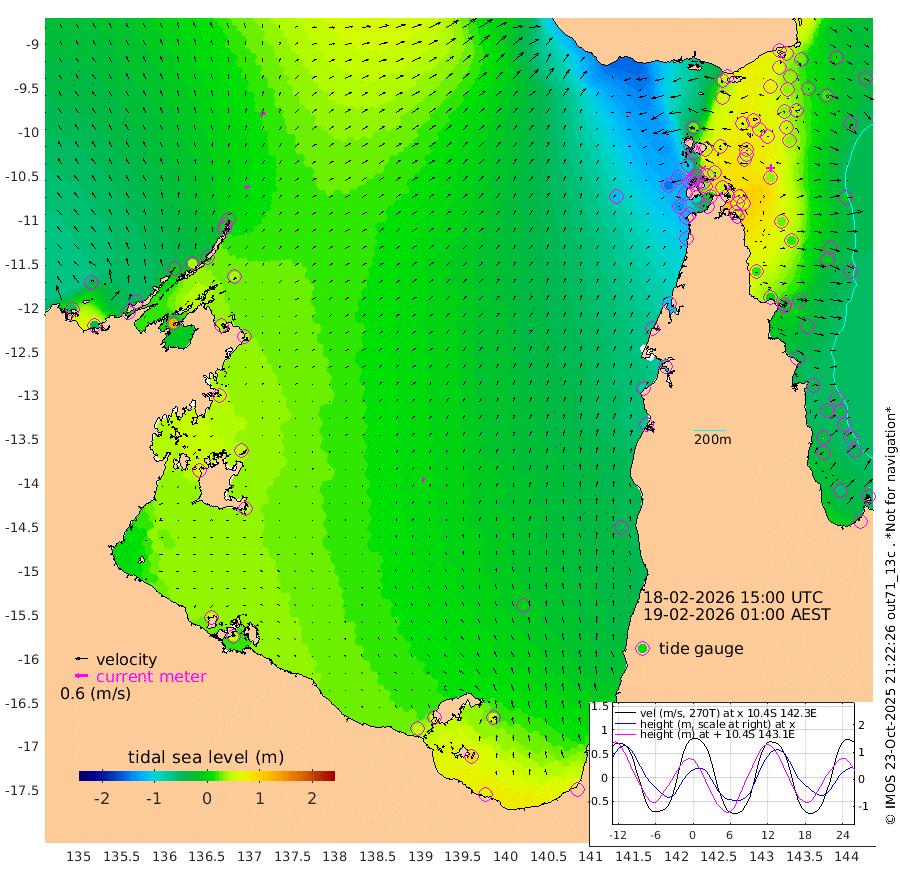 22cm/s 59T +3cm/s rms + 7cm/s -42T. ARA-GOC87 57m 20cm/s 11T +3cm/s rms + 2cm/s -2T. ARA-GOC87 60m 26cm/s 53T +2cm/s rms + 3cm/s 61T. ARA-GOC87 47m 60cm Daru 57cm Bobo Island -20cm Meer Island Barge 2cm Bramble Cay 32cm Unnamed Cay 33cm Pearce Cay 18cm Stephens Island 29cm Merrie England Shoals 55cm Mutacomal Reef 16cm Darnley Island Barge -21cm East Cay 39cm Yorke Island Barge 34cm Rennel Island 45cm Aureed Island 46cm Dungeness Reef 77cm Zagai Island 57cm Yam Island 41cm Dauan Island 55cm Saibai Island 55cm Phipi Reef 71cm Warrior Reef - West 23cm Mabuiag Island Barge 30cm Half Way Island 61cm Coconut Island 37cm Dugong Islet 57cm Poll Island 47cm Kirkcaldie Reef 65cm Suarji Island 64cm Sue Islet -108cm Hawkesbury Island 38cm Alert Patches 43cm Twin Island -67cm Badu Island 52cm St Pauls (Moa Island) -62cm Kubin (Moa Island) 8cm Ince Point -16cm Thursday Island -8cm Nardana Patches -55cm Turtle Head -65cm Round Island -114cm Goods Island -143cm Booby Island -130cm White Rocks Area -119cm Carpentaria 37cm Papou Point -124cm Bampfield Head -118cm Crab Island -134cm Red Wallis Island -90cm Packe Island 56cm Harrington Reef -121cm Herald Camp 29cm Sharp Point -45cm Red Island Point 6cm Possession Island 51cm Alpha Rock 52cm Frederick Point 65cm Wyborn Reef Light 68cm Tetley Island -9cm Triangle Reef 49cm Turtle Head Island -25cm Maclennan Cay -42cm Raine Island 30cm Mcsweeny Reef 22cm Collette Reef -12cm Shadwell Reef 22cm Hannibal Island 0cm Round Point -116cm Vrilya Point -9cm Cape Grenville -16cm Hicks Island -29cm Sir Charles Hardy Island -3cm Harvey Island -25cm Kay Reef -34cm Rocky Island -41cm Chapman Island -42cm Ham Reef -36cm Jubilee Reef -30cm Night Island -42cm Unnamed Reef No. 3 -37cm Morris Island -44cm 1st 3 Mile Opening -41cm Creech Reef -29cm Fife Island -54cm Eden Reef -42cm Stanley Island -42cm Normanby River -49cm Yabooma Island -40cm Hutchison River -39cm Elcho Island -40cm North West Crocodile Island 11cm Cape Wessel 0cm Stevens Island 39cm Guluwuru Island -11cm Hopeful Bay 3cm Auster Point -7cm Two Island Bay 0cm Cadell Strait 133cm Mallison Island 38cm Melville Bay (Gove Harbour) 39cm Truant Island 39cm Cape Arnhem 49cm Cape Grey 51cm Hawk Island 63cm Milner Bay (Groote Eylandt) 48cm Cape Beatrice 60cm West Island 60cm Centre Island 53cm Mornington Island 47cm West Wellesley Islands 55cm Bountiful Island 62cm Albert River Mouth 105cm Sweers Island 60cm Karumba -1cm Nassau River Offshore -39cm Christmas Creek -73cm Archer River -82cm Boyd Point -100cm Weipa (Humbug Point) -75cm Pennefather River -111cm Cullen Point