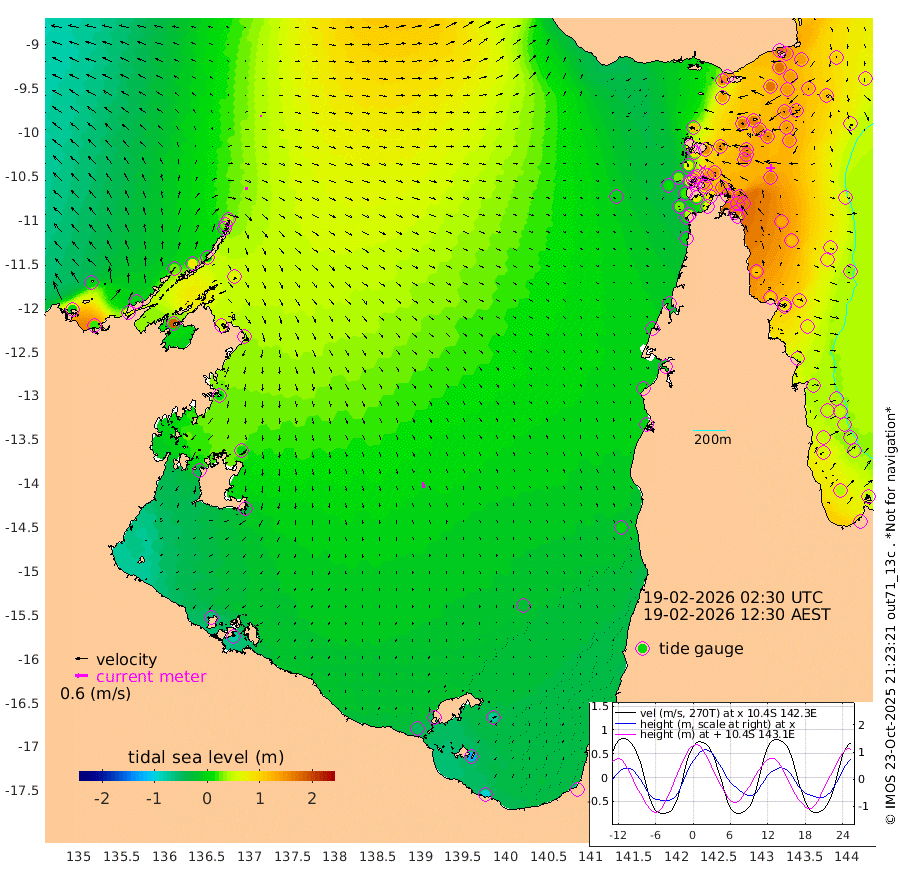 15cm/s 100T +3cm/s rms + 7cm/s -42T. ARA-GOC87 57m 27cm/s 168T +3cm/s rms + 2cm/s -2T. ARA-GOC87 60m 5cm/s 70T +2cm/s rms + 3cm/s 61T. ARA-GOC87 47m 165cm Daru 152cm Bobo Island 65cm Meer Island Barge 101cm Bramble Cay 140cm Unnamed Cay 139cm Pearce Cay 125cm Stephens Island 136cm Merrie England Shoals 166cm Mutacomal Reef 113cm Darnley Island Barge 72cm East Cay 135cm Yorke Island Barge 147cm Rennel Island 138cm Aureed Island 151cm Dungeness Reef 158cm Zagai Island 162cm Yam Island 146cm Dauan Island 137cm Saibai Island 132cm Phipi Reef 171cm Warrior Reef - West 110cm Mabuiag Island Barge 142cm Half Way Island 156cm Coconut Island 156cm Dugong Islet 158cm Poll Island 157cm Kirkcaldie Reef 148cm Suarji Island 154cm Sue Islet 61cm Hawkesbury Island 140cm Alert Patches 148cm Twin Island 71cm Badu Island 153cm St Pauls (Moa Island) 88cm Kubin (Moa Island) 122cm Ince Point 103cm Thursday Island 109cm Nardana Patches 84cm Turtle Head 60cm Round Island 45cm Goods Island 14cm Booby Island 26cm White Rocks Area -5cm Carpentaria 131cm Papou Point 18cm Bampfield Head 6cm Crab Island 27cm Red Wallis Island 71cm Packe Island 165cm Harrington Reef 39cm Herald Camp 45cm Sharp Point 66cm Red Island Point 95cm Possession Island 148cm Alpha Rock 158cm Frederick Point 170cm Wyborn Reef Light 172cm Tetley Island 75cm Triangle Reef 161cm Turtle Head Island 69cm Maclennan Cay 37cm Raine Island 130cm Mcsweeny Reef 114cm Collette Reef 70cm Shadwell Reef 120cm Hannibal Island 103cm Round Point -6cm Vrilya Point 86cm Cape Grenville 78cm Hicks Island 83cm Sir Charles Hardy Island 27cm Harvey Island 66cm Kay Reef 49cm Rocky Island 39cm Chapman Island 39cm Ham Reef 49cm Jubilee Reef 47cm Night Island 41cm Unnamed Reef No. 3 51cm Morris Island 41cm 1st 3 Mile Opening 46cm Creech Reef 58cm Fife Island 44cm Eden Reef 48cm Stanley Island 56cm Normanby River 0cm Yabooma Island 20cm Hutchison River -3cm Elcho Island -4cm North West Crocodile Island 39cm Cape Wessel 26cm Stevens Island 80cm Guluwuru Island 3cm Hopeful Bay 21cm Auster Point 28cm Two Island Bay 55cm Cadell Strait 184cm Mallison Island 58cm Melville Bay (Gove Harbour) 66cm Truant Island 45cm Cape Arnhem 15cm Cape Grey 0cm Hawk Island -41cm Milner Bay (Groote Eylandt) -36cm Cape Beatrice -63cm West Island -77cm Centre Island -51cm Mornington Island -47cm West Wellesley Islands -69cm Bountiful Island -92cm Albert River Mouth -122cm Sweers Island -93cm Karumba -24cm Nassau River Offshore 1cm Christmas Creek -6cm Archer River 9cm Boyd Point -2cm Weipa (Humbug Point) -7cm Pennefather River -3cm Cullen Point