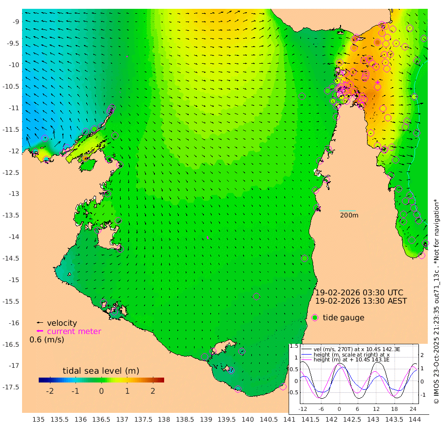2cm/s 30T +3cm/s rms + 7cm/s -42T. ARA-GOC87 57m 28cm/s 166T +3cm/s rms + 2cm/s -2T. ARA-GOC87 60m 10cm/s -70T +2cm/s rms + 3cm/s 61T. ARA-GOC87 47m 124cm Daru 107cm Bobo Island 20cm Meer Island Barge 48cm Bramble Cay 88cm Unnamed Cay 85cm Pearce Cay 72cm Stephens Island 81cm Merrie England Shoals 121cm Mutacomal Reef 65cm Darnley Island Barge 23cm East Cay 92cm Yorke Island Barge 100cm Rennel Island 97cm Aureed Island 116cm Dungeness Reef 150cm Zagai Island 152cm Yam Island 161cm Dauan Island 157cm Saibai Island 139cm Phipi Reef 166cm Warrior Reef - West 121cm Mabuiag Island Barge 96cm Half Way Island 122cm Coconut Island 114cm Dugong Islet 135cm Poll Island 131cm Kirkcaldie Reef 138cm Suarji Island 136cm Sue Islet 55cm Hawkesbury Island 129cm Alert Patches 136cm Twin Island 71cm Badu Island 149cm St Pauls (Moa Island) 83cm Kubin (Moa Island) 119cm Ince Point 102cm Thursday Island 107cm Nardana Patches 81cm Turtle Head 58cm Round Island 40cm Goods Island 16cm Booby Island 21cm White Rocks Area 14cm Carpentaria 123cm Papou Point 16cm Bampfield Head 14cm Crab Island 32cm Red Wallis Island 69cm Packe Island 122cm Harrington Reef 44cm Herald Camp 52cm Sharp Point 65cm Red Island Point 89cm Possession Island 137cm Alpha Rock 134cm Frederick Point 127cm Wyborn Reef Light 136cm Tetley Island 40cm Triangle Reef 108cm Turtle Head Island 27cm Maclennan Cay -2cm Raine Island 83cm Mcsweeny Reef 68cm Collette Reef 30cm Shadwell Reef 67cm Hannibal Island 47cm Round Point 7cm Vrilya Point 37cm Cape Grenville 30cm Hicks Island 37cm Sir Charles Hardy Island 12cm Harvey Island 17cm Kay Reef 6cm Rocky Island -2cm Chapman Island 1cm Ham Reef 7cm Jubilee Reef 10cm Night Island 2cm Unnamed Reef No. 3 4cm Morris Island -3cm 1st 3 Mile Opening 3cm Creech Reef 14cm Fife Island -10cm Eden Reef 1cm Stanley Island 0cm Normanby River -97cm Yabooma Island -93cm Hutchison River -95cm Elcho Island -92cm North West Crocodile Island -25cm Cape Wessel -61cm Stevens Island 17cm Guluwuru Island -74cm Hopeful Bay -51cm Auster Point -45cm Two Island Bay -42cm Cadell Strait 143cm Mallison Island 0cm Melville Bay (Gove Harbour) 5cm Truant Island 9cm Cape Arnhem -10cm Cape Grey -13cm Hawk Island -38cm Milner Bay (Groote Eylandt) -30cm Cape Beatrice -36cm West Island -45cm Centre Island -26cm Mornington Island -25cm West Wellesley Islands -54cm Bountiful Island -73cm Albert River Mouth -104cm Sweers Island -70cm Karumba -6cm Nassau River Offshore 16cm Christmas Creek 2cm Archer River 18cm Boyd Point 4cm Weipa (Humbug Point) 3cm Pennefather River 13cm Cullen Point