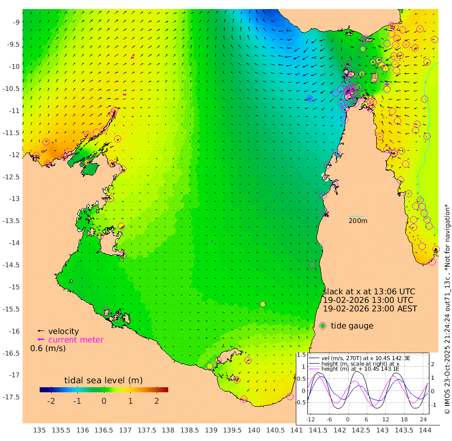 28cm/s 89T +3cm/s rms + 7cm/s -42T. ARA-GOC87 57m 14cm/s -37T +3cm/s rms + 2cm/s -2T. ARA-GOC87 60m 33cm/s 73T +2cm/s rms + 3cm/s 61T. ARA-GOC87 47m 89cm Daru 93cm Bobo Island 63cm Meer Island Barge 85cm Bramble Cay 92cm Unnamed Cay 97cm Pearce Cay 91cm Stephens Island 97cm Merrie England Shoals 87cm Mutacomal Reef 81cm Darnley Island Barge 69cm East Cay 80cm Yorke Island Barge 84cm Rennel Island 81cm Aureed Island 74cm Dungeness Reef 36cm Zagai Island 28cm Yam Island -13cm Dauan Island -28cm Saibai Island 27cm Phipi Reef 34cm Warrior Reef - West -35cm Mabuiag Island Barge 81cm Half Way Island 73cm Coconut Island 73cm Dugong Islet 52cm Poll Island 54cm Kirkcaldie Reef 28cm Suarji Island 39cm Sue Islet -77cm Hawkesbury Island 14cm Alert Patches 17cm Twin Island -61cm Badu Island 10cm St Pauls (Moa Island) -46cm Kubin (Moa Island) -14cm Ince Point -31cm Thursday Island -27cm Nardana Patches -42cm Turtle Head -47cm Round Island -74cm Goods Island -107cm Booby Island -91cm White Rocks Area -141cm Carpentaria 6cm Papou Point -94cm Bampfield Head -88cm Crab Island -105cm Red Wallis Island -60cm Packe Island 82cm Harrington Reef -85cm Herald Camp 0cm Sharp Point -40cm Red Island Point -1cm Possession Island 16cm Alpha Rock 45cm Frederick Point 83cm Wyborn Reef Light 73cm Tetley Island 47cm Triangle Reef 94cm Turtle Head Island 51cm Maclennan Cay 45cm Raine Island 83cm Mcsweeny Reef 80cm Collette Reef 58cm Shadwell Reef 92cm Hannibal Island 89cm Round Point -99cm Vrilya Point 71cm Cape Grenville 71cm Hicks Island 52cm Sir Charles Hardy Island 23cm Harvey Island 62cm Kay Reef 53cm Rocky Island 45cm Chapman Island 37cm Ham Reef 47cm Jubilee Reef 50cm Night Island 39cm Unnamed Reef No. 3 57cm Morris Island 48cm 1st 3 Mile Opening 49cm Creech Reef 62cm Fife Island 63cm Eden Reef 56cm Stanley Island 68cm Normanby River 122cm Yabooma Island 151cm Hutchison River 121cm Elcho Island 115cm North West Crocodile Island 77cm Cape Wessel 128cm Stevens Island 97cm Guluwuru Island 113cm Hopeful Bay 100cm Auster Point 96cm Two Island Bay 149cm Cadell Strait 110cm Mallison Island 98cm Melville Bay (Gove Harbour) 97cm Truant Island 67cm Cape Arnhem 60cm Cape Grey 60cm Hawk Island 43cm Milner Bay (Groote Eylandt) 35cm Cape Beatrice 9cm West Island 10cm Centre Island 58cm Mornington Island 51cm West Wellesley Islands 78cm Bountiful Island 106cm Albert River Mouth 133cm Sweers Island 108cm Karumba 38cm Nassau River Offshore 5cm Christmas Creek -29cm Archer River -57cm Boyd Point -53cm Weipa (Humbug Point) -50cm Pennefather River -94cm Cullen Point
