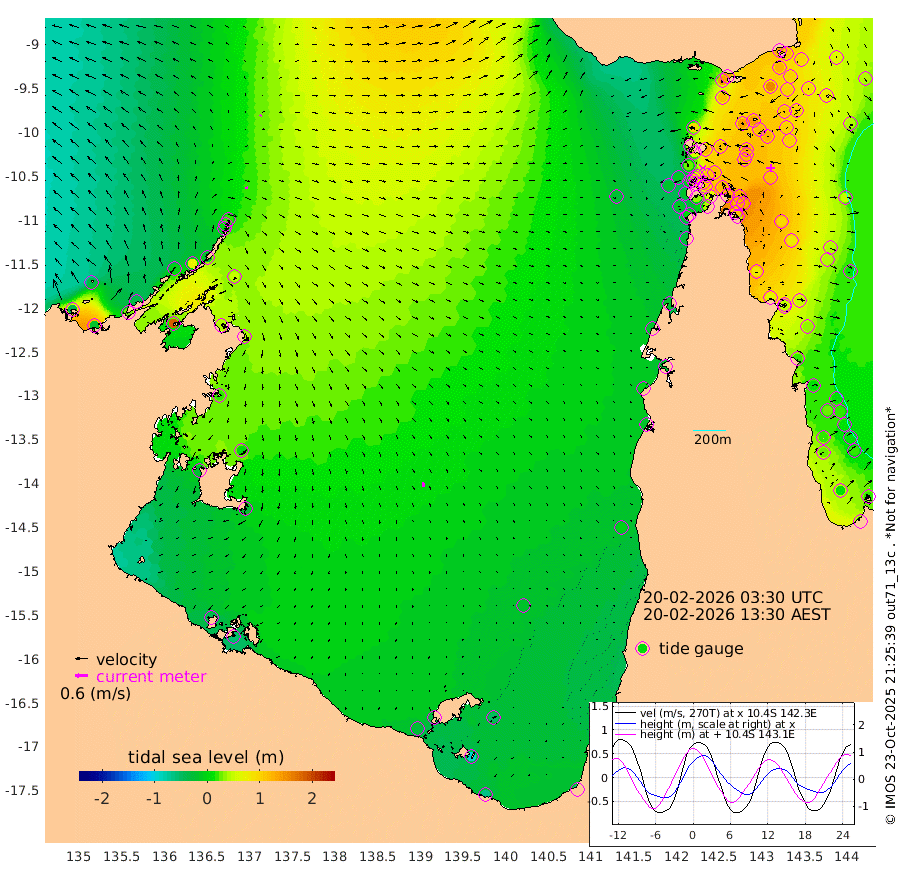 13cm/s 79T +3cm/s rms + 7cm/s -42T. ARA-GOC87 57m 23cm/s 166T +3cm/s rms + 2cm/s -2T. ARA-GOC87 60m 7cm/s 31T +2cm/s rms + 3cm/s 61T. ARA-GOC87 47m 130cm Daru 118cm Bobo Island 38cm Meer Island Barge 65cm Bramble Cay 101cm Unnamed Cay 98cm Pearce Cay 88cm Stephens Island 94cm Merrie England Shoals 125cm Mutacomal Reef 81cm Darnley Island Barge 41cm East Cay 104cm Yorke Island Barge 108cm Rennel Island 105cm Aureed Island 117cm Dungeness Reef 140cm Zagai Island 140cm Yam Island 135cm Dauan Island 133cm Saibai Island 117cm Phipi Reef 152cm Warrior Reef - West 94cm Mabuiag Island Barge 105cm Half Way Island 121cm Coconut Island 119cm Dugong Islet 127cm Poll Island 126cm Kirkcaldie Reef 118cm Suarji Island 130cm Sue Islet 24cm Hawkesbury Island 107cm Alert Patches 117cm Twin Island 39cm Badu Island 127cm St Pauls (Moa Island) 55cm Kubin (Moa Island) 93cm Ince Point 73cm Thursday Island 79cm Nardana Patches 50cm Turtle Head 27cm Round Island 8cm Goods Island -22cm Booby Island -15cm White Rocks Area -25cm Carpentaria 108cm Papou Point -22cm Bampfield Head -19cm Crab Island -8cm Red Wallis Island 33cm Packe Island 125cm Harrington Reef 7cm Herald Camp 43cm Sharp Point 41cm Red Island Point 66cm Possession Island 120cm Alpha Rock 124cm Frederick Point 130cm Wyborn Reef Light 134cm Tetley Island 48cm Triangle Reef 118cm Turtle Head Island 40cm Maclennan Cay 12cm Raine Island 93cm Mcsweeny Reef 79cm Collette Reef 42cm Shadwell Reef 82cm Hannibal Island 63cm Round Point -27cm Vrilya Point 51cm Cape Grenville 46cm Hicks Island 52cm Sir Charles Hardy Island 17cm Harvey Island 33cm Kay Reef 22cm Rocky Island 11cm Chapman Island 15cm Ham Reef 23cm Jubilee Reef 22cm Night Island 14cm Unnamed Reef No. 3 21cm Morris Island 13cm 1st 3 Mile Opening 19cm Creech Reef 29cm Fife Island 12cm Eden Reef 18cm Stanley Island 22cm Normanby River -37cm Yabooma Island -22cm Hutchison River -36cm Elcho Island -35cm North West Crocodile Island 20cm Cape Wessel -5cm Stevens Island 68cm Guluwuru Island -25cm Hopeful Bay -3cm Auster Point 7cm Two Island Bay 29cm Cadell Strait 185cm Mallison Island 44cm Melville Bay (Gove Harbour) 50cm Truant Island 38cm Cape Arnhem 15cm Cape Grey 2cm Hawk Island -29cm Milner Bay (Groote Eylandt) -24cm Cape Beatrice -42cm West Island -54cm Centre Island -31cm Mornington Island -30cm West Wellesley Islands -50cm Bountiful Island -65cm Albert River Mouth -93cm Sweers Island -67cm Karumba -18cm Nassau River Offshore -2cm Christmas Creek -18cm Archer River -5cm Boyd Point -20cm Weipa (Humbug Point) -22cm Pennefather River -21cm Cullen Point