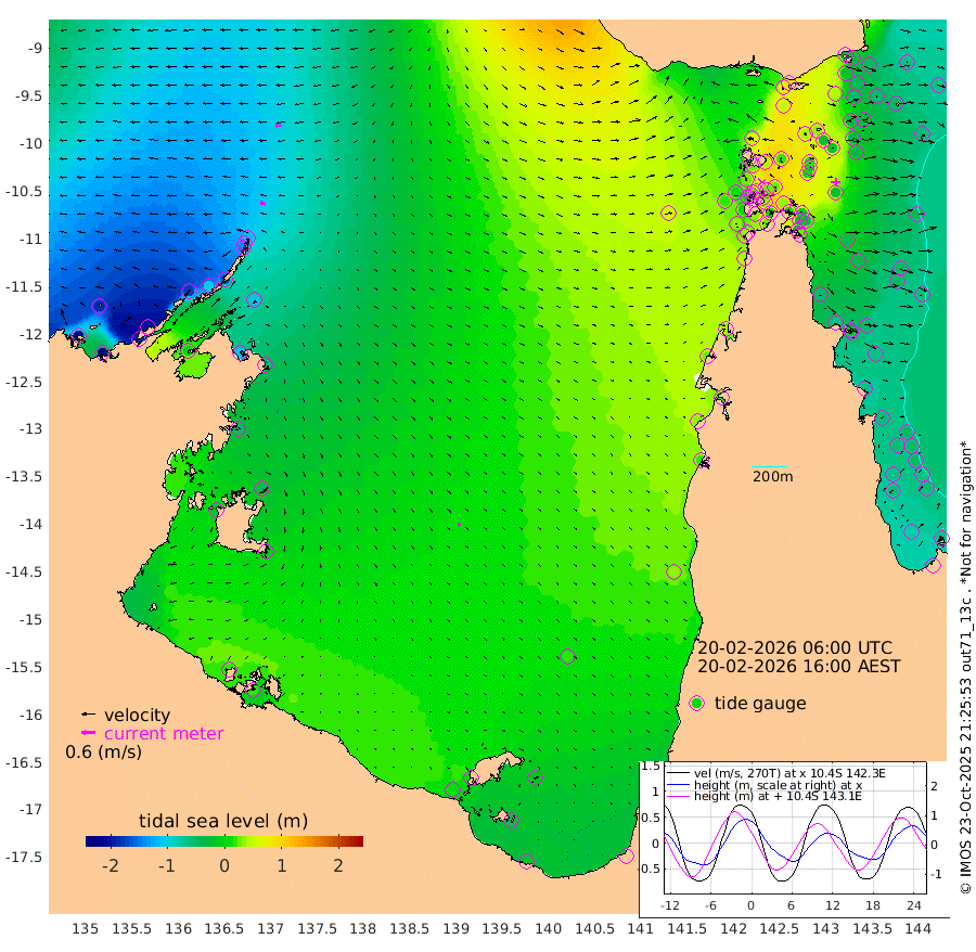 24cm/s -73T +3cm/s rms + 7cm/s -42T. ARA-GOC87 57m 16cm/s 161T +3cm/s rms + 2cm/s -2T. ARA-GOC87 60m 30cm/s -85T +2cm/s rms + 3cm/s 61T. ARA-GOC87 47m -19cm Daru -34cm Bobo Island -58cm Meer Island Barge -61cm Bramble Cay -46cm Unnamed Cay -54cm Pearce Cay -54cm Stephens Island -49cm Merrie England Shoals -21cm Mutacomal Reef -48cm Darnley Island Barge -63cm East Cay -33cm Yorke Island Barge -35cm Rennel Island -32cm Aureed Island -17cm Dungeness Reef 35cm Zagai Island 38cm Yam Island 74cm Dauan Island 83cm Saibai Island 46cm Phipi Reef 45cm Warrior Reef - West 57cm Mabuiag Island Barge -33cm Half Way Island -13cm Coconut Island -21cm Dugong Islet 8cm Poll Island 9cm Kirkcaldie Reef 22cm Suarji Island 21cm Sue Islet 23cm Hawkesbury Island 26cm Alert Patches 28cm Twin Island 28cm Badu Island 41cm St Pauls (Moa Island) 27cm Kubin (Moa Island) 37cm Ince Point 36cm Thursday Island 37cm Nardana Patches 26cm Turtle Head 18cm Round Island 14cm Goods Island 22cm Booby Island 10cm White Rocks Area 53cm Carpentaria 31cm Papou Point 5cm Bampfield Head 31cm Crab Island 34cm Red Wallis Island 31cm Packe Island -23cm Harrington Reef 32cm Herald Camp 28cm Sharp Point 26cm Red Island Point 15cm Possession Island 32cm Alpha Rock 9cm Frederick Point -21cm Wyborn Reef Light -9cm Tetley Island -38cm Triangle Reef -45cm Turtle Head Island -50cm Maclennan Cay -57cm Raine Island -42cm Mcsweeny Reef -43cm Collette Reef -47cm Shadwell Reef -54cm Hannibal Island -66cm Round Point 41cm Vrilya Point -55cm Cape Grenville -61cm Hicks Island -50cm Sir Charles Hardy Island -17cm Harvey Island -61cm Kay Reef -60cm Rocky Island -59cm Chapman Island -52cm Ham Reef -55cm Jubilee Reef -50cm Night Island -52cm Unnamed Reef No. 3 -65cm Morris Island -63cm 1st 3 Mile Opening -58cm Creech Reef -59cm Fife Island -80cm Eden Reef -64cm Stanley Island -77cm Normanby River -205cm Yabooma Island -233cm Hutchison River -198cm Elcho Island -187cm North West Crocodile Island -119cm Cape Wessel -175cm Stevens Island -101cm Guluwuru Island -165cm Hopeful Bay -148cm Auster Point -141cm Two Island Bay -183cm Cadell Strait 3cm Mallison Island -105cm Melville Bay (Gove Harbour) -108cm Truant Island -64cm Cape Arnhem -55cm Cape Grey -41cm Hawk Island -25cm Milner Bay (Groote Eylandt) -12cm Cape Beatrice 21cm West Island 22cm Centre Island 15cm Mornington Island 14cm West Wellesley Islands -21cm Bountiful Island -22cm Albert River Mouth -51cm Sweers Island -17cm Karumba 21cm Nassau River Offshore 32cm Christmas Creek 21cm Archer River 30cm Boyd Point 18cm Weipa (Humbug Point) 28cm Pennefather River 44cm Cullen Point