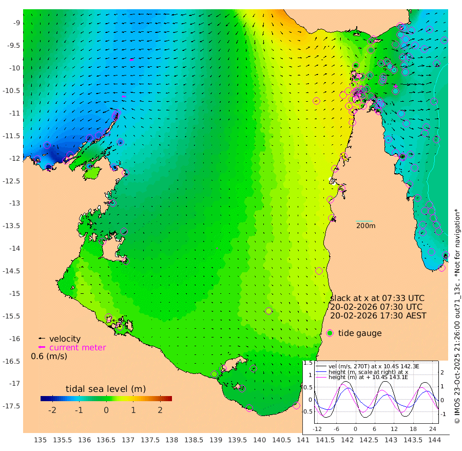 34cm/s -84T +3cm/s rms + 7cm/s -42T. ARA-GOC87 57m 6cm/s 179T +3cm/s rms + 2cm/s -2T. ARA-GOC87 60m 37cm/s -96T +2cm/s rms + 3cm/s 61T. ARA-GOC87 47m -99cm Daru -107cm Bobo Island -76cm Meer Island Barge -96cm Bramble Cay -105cm Unnamed Cay -111cm Pearce Cay -104cm Stephens Island -103cm Merrie England Shoals -96cm Mutacomal Reef -96cm Darnley Island Barge -81cm East Cay -97cm Yorke Island Barge -97cm Rennel Island -96cm Aureed Island -87cm Dungeness Reef -56cm Zagai Island -46cm Yam Island -7cm Dauan Island -1cm Saibai Island -25cm Phipi Reef -49cm Warrior Reef - West 2cm Mabuiag Island Barge -93cm Half Way Island -87cm Coconut Island -90cm Dugong Islet -69cm Poll Island -65cm Kirkcaldie Reef -54cm Suarji Island -62cm Sue Islet 33cm Hawkesbury Island -38cm Alert Patches -41cm Twin Island 22cm Badu Island -36cm St Pauls (Moa Island) 11cm Kubin (Moa Island) -13cm Ince Point 1cm Thursday Island -3cm Nardana Patches 12cm Turtle Head 17cm Round Island 34cm Goods Island 62cm Booby Island 46cm White Rocks Area 84cm Carpentaria -32cm Papou Point 37cm Bampfield Head 67cm Crab Island 67cm Red Wallis Island 35cm Packe Island -99cm Harrington Reef 53cm Herald Camp 0cm Sharp Point 17cm Red Island Point -22cm Possession Island -41cm Alpha Rock -66cm Frederick Point -101cm Wyborn Reef Light -92cm Tetley Island -62cm Triangle Reef -117cm Turtle Head Island -68cm Maclennan Cay -56cm Raine Island -98cm Mcsweeny Reef -90cm Collette Reef -68cm Shadwell Reef -102cm Hannibal Island -98cm Round Point 80cm Vrilya Point -81cm Cape Grenville -83cm Hicks Island -74cm Sir Charles Hardy Island -25cm Harvey Island -74cm Kay Reef -67cm Rocky Island -58cm Chapman Island -53cm Ham Reef -62cm Jubilee Reef -56cm Night Island -52cm Unnamed Reef No. 3 -70cm Morris Island -64cm 1st 3 Mile Opening -62cm Creech Reef -69cm Fife Island -77cm Eden Reef -67cm Stanley Island -81cm Normanby River -169cm Yabooma Island -209cm Hutchison River -166cm Elcho Island -154cm North West Crocodile Island -133cm Cape Wessel -168cm Stevens Island -151cm Guluwuru Island -146cm Hopeful Bay -148cm Auster Point -143cm Two Island Bay -195cm Cadell Strait -131cm Mallison Island -140cm Melville Bay (Gove Harbour) -147cm Truant Island -96cm Cape Arnhem -77cm Cape Grey -54cm Hawk Island -22cm Milner Bay (Groote Eylandt) -6cm Cape Beatrice 34cm West Island 41cm Centre Island 29cm Mornington Island 28cm West Wellesley Islands 2cm Bountiful Island 14cm Albert River Mouth -11cm Sweers Island 21cm Karumba 41cm Nassau River Offshore 48cm Christmas Creek 49cm Archer River 49cm Boyd Point 50cm Weipa (Humbug Point) 57cm Pennefather River 77cm Cullen Point