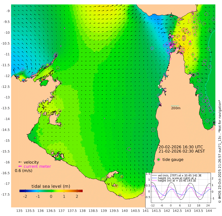 18cm/s 61T +3cm/s rms + 7cm/s -42T. ARA-GOC87 57m 10cm/s 43T +3cm/s rms + 2cm/s -2T. ARA-GOC87 60m 18cm/s 46T +2cm/s rms + 3cm/s 61T. ARA-GOC87 47m 50cm Daru 45cm Bobo Island -9cm Meer Island Barge 1cm Bramble Cay 27cm Unnamed Cay 21cm Pearce Cay 16cm Stephens Island 22cm Merrie England Shoals 41cm Mutacomal Reef 21cm Darnley Island Barge -16cm East Cay 37cm Yorke Island Barge 25cm Rennel Island 38cm Aureed Island 38cm Dungeness Reef 71cm Zagai Island 49cm Yam Island 47cm Dauan Island 59cm Saibai Island 56cm Phipi Reef 64cm Warrior Reef - West 22cm Mabuiag Island Barge 24cm Half Way Island 49cm Coconut Island 30cm Dugong Islet 45cm Poll Island 39cm Kirkcaldie Reef 53cm Suarji Island 58cm Sue Islet -96cm Hawkesbury Island 33cm Alert Patches 34cm Twin Island -59cm Badu Island 45cm St Pauls (Moa Island) -52cm Kubin (Moa Island) 7cm Ince Point -12cm Thursday Island -6cm Nardana Patches -45cm Turtle Head -52cm Round Island -96cm Goods Island -116cm Booby Island -116cm White Rocks Area -80cm Carpentaria 28cm Papou Point -92cm Bampfield Head -95cm Crab Island -113cm Red Wallis Island -76cm Packe Island 42cm Harrington Reef -93cm Herald Camp 27cm Sharp Point -47cm Red Island Point 7cm Possession Island 42cm Alpha Rock 40cm Frederick Point 50cm Wyborn Reef Light 53cm Tetley Island -3cm Triangle Reef 38cm Turtle Head Island -16cm Maclennan Cay -29cm Raine Island 26cm Mcsweeny Reef 21cm Collette Reef -2cm Shadwell Reef 21cm Hannibal Island -3cm Round Point -87cm Vrilya Point -5cm Cape Grenville -11cm Hicks Island -17cm Sir Charles Hardy Island -1cm Harvey Island -18cm Kay Reef -24cm Rocky Island -31cm Chapman Island -29cm Ham Reef -24cm Jubilee Reef -19cm Night Island -31cm Unnamed Reef No. 3 -27cm Morris Island -27cm 1st 3 Mile Opening -27cm Creech Reef -22cm Fife Island -38cm Eden Reef -29cm Stanley Island -35cm Normanby River -114cm Yabooma Island -109cm Hutchison River -100cm Elcho Island -105cm North West Crocodile Island -26cm Cape Wessel -59cm Stevens Island 23cm Guluwuru Island -61cm Hopeful Bay -39cm Auster Point -46cm Two Island Bay -54cm Cadell Strait 157cm Mallison Island 16cm Melville Bay (Gove Harbour) 17cm Truant Island 28cm Cape Arnhem 34cm Cape Grey 36cm Hawk Island 43cm Milner Bay (Groote Eylandt) 31cm Cape Beatrice 45cm West Island 48cm Centre Island 41cm Mornington Island 33cm West Wellesley Islands 31cm Bountiful Island 25cm Albert River Mouth 62cm Sweers Island 25cm Karumba -2cm Nassau River Offshore -24cm Christmas Creek -51cm Archer River -53cm Boyd Point -73cm Weipa (Humbug Point) -49cm Pennefather River -80cm Cullen Point