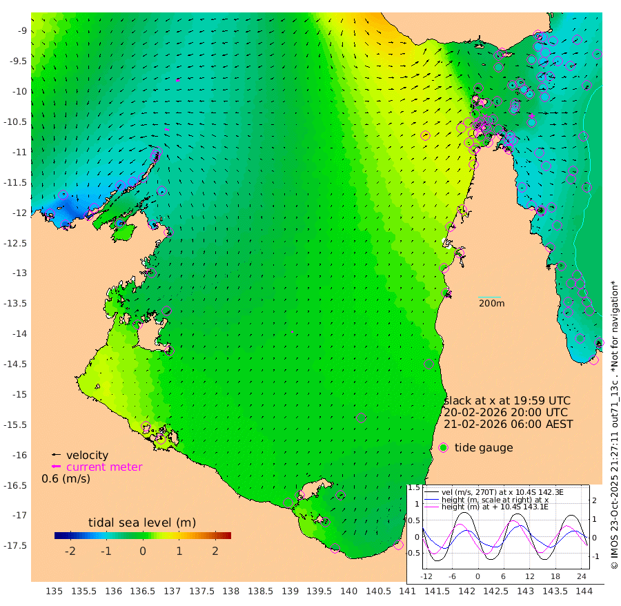 28cm/s -80T +3cm/s rms + 7cm/s -42T. ARA-GOC87 57m 12cm/s 30T +3cm/s rms + 2cm/s -2T. ARA-GOC87 60m 25cm/s -98T +2cm/s rms + 3cm/s 61T. ARA-GOC87 47m -108cm Daru -106cm Bobo Island -63cm Meer Island Barge -86cm Bramble Cay -96cm Unnamed Cay -107cm Pearce Cay -98cm Stephens Island -96cm Merrie England Shoals -101cm Mutacomal Reef -86cm Darnley Island Barge -71cm East Cay -90cm Yorke Island Barge -100cm Rennel Island -92cm Aureed Island -95cm Dungeness Reef -75cm Zagai Island -77cm Yam Island -59cm Dauan Island -36cm Saibai Island -69cm Phipi Reef -87cm Warrior Reef - West -16cm Mabuiag Island Barge -98cm Half Way Island -91cm Coconut Island -96cm Dugong Islet -84cm Poll Island -86cm Kirkcaldie Reef -55cm Suarji Island -68cm Sue Islet 7cm Hawkesbury Island -46cm Alert Patches -57cm Twin Island -3cm Badu Island -56cm St Pauls (Moa Island) -20cm Kubin (Moa Island) -34cm Ince Point -19cm Thursday Island -24cm Nardana Patches -15cm Turtle Head 3cm Round Island 11cm Goods Island 44cm Booby Island 32cm White Rocks Area 87cm Carpentaria -49cm Papou Point 55cm Bampfield Head 31cm Crab Island 34cm Red Wallis Island -8cm Packe Island -99cm Harrington Reef 22cm Herald Camp -12cm Sharp Point -11cm Red Island Point -24cm Possession Island -51cm Alpha Rock -76cm Frederick Point -97cm Wyborn Reef Light -93cm Tetley Island -56cm Triangle Reef -105cm Turtle Head Island -59cm Maclennan Cay -47cm Raine Island -90cm Mcsweeny Reef -81cm Collette Reef -58cm Shadwell Reef -90cm Hannibal Island -88cm Round Point 47cm Vrilya Point -68cm Cape Grenville -73cm Hicks Island -64cm Sir Charles Hardy Island -23cm Harvey Island -57cm Kay Reef -51cm Rocky Island -43cm Chapman Island -39cm Ham Reef -50cm Jubilee Reef -51cm Night Island -42cm Unnamed Reef No. 3 -55cm Morris Island -46cm 1st 3 Mile Opening -49cm Creech Reef -65cm Fife Island -60cm Eden Reef -52cm Stanley Island -65cm Normanby River -121cm Yabooma Island -153cm Hutchison River -118cm Elcho Island -116cm North West Crocodile Island -85cm Cape Wessel -122cm Stevens Island -113cm Guluwuru Island -97cm Hopeful Bay -92cm Auster Point -104cm Two Island Bay -170cm Cadell Strait -142cm Mallison Island -99cm Melville Bay (Gove Harbour) -102cm Truant Island -67cm Cape Arnhem -36cm Cape Grey -27cm Hawk Island 11cm Milner Bay (Groote Eylandt) 8cm Cape Beatrice 50cm West Island 58cm Centre Island -4cm Mornington Island 1cm West Wellesley Islands -3cm Bountiful Island -30cm Albert River Mouth -8cm Sweers Island -30cm Karumba -21cm Nassau River Offshore -18cm Christmas Creek 7cm Archer River 19cm Boyd Point 16cm Weipa (Humbug Point) 24cm Pennefather River 43cm Cullen Point