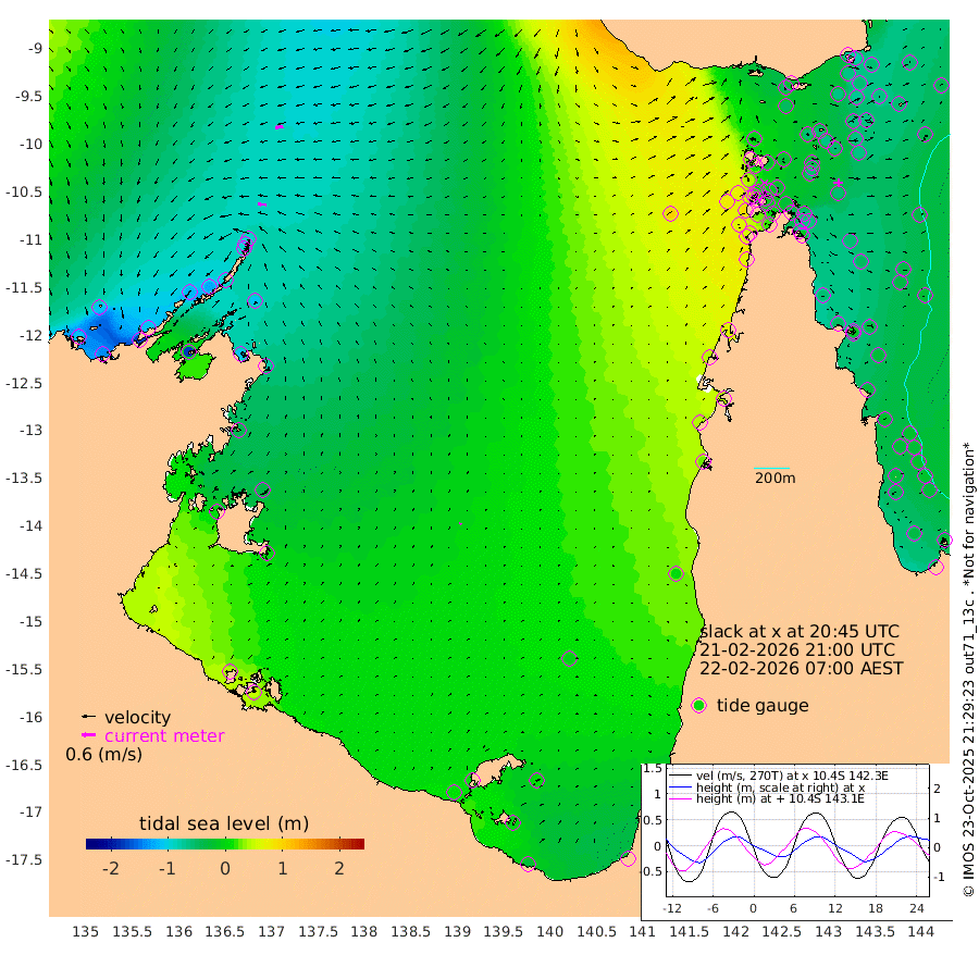 35cm/s -85T +3cm/s rms + 7cm/s -42T. ARA-GOC87 57m 6cm/s 40T +3cm/s rms + 2cm/s -2T. ARA-GOC87 60m 34cm/s -99T +2cm/s rms + 3cm/s 61T. ARA-GOC87 47m -74cm Daru -76cm Bobo Island -39cm Meer Island Barge -53cm Bramble Cay -59cm Unnamed Cay -71cm Pearce Cay -63cm Stephens Island -56cm Merrie England Shoals -61cm Mutacomal Reef -57cm Darnley Island Barge -41cm East Cay -61cm Yorke Island Barge -62cm Rennel Island -62cm Aureed Island -61cm Dungeness Reef -57cm Zagai Island -53cm Yam Island -45cm Dauan Island -30cm Saibai Island -47cm Phipi Reef -65cm Warrior Reef - West 0cm Mabuiag Island Barge -63cm Half Way Island -59cm Coconut Island -60cm Dugong Islet -53cm Poll Island -54cm Kirkcaldie Reef -26cm Suarji Island -44cm Sue Islet 44cm Hawkesbury Island -14cm Alert Patches -27cm Twin Island 26cm Badu Island -30cm St Pauls (Moa Island) 13cm Kubin (Moa Island) -5cm Ince Point 10cm Thursday Island 5cm Nardana Patches 20cm Turtle Head 36cm Round Island 48cm Goods Island 77cm Booby Island 70cm White Rocks Area 102cm Carpentaria -27cm Papou Point 90cm Bampfield Head 56cm Crab Island 67cm Red Wallis Island 30cm Packe Island -61cm Harrington Reef 58cm Herald Camp -8cm Sharp Point 17cm Red Island Point 5cm Possession Island -24cm Alpha Rock -44cm Frederick Point -62cm Wyborn Reef Light -59cm Tetley Island -32cm Triangle Reef -67cm Turtle Head Island -32cm Maclennan Cay -24cm Raine Island -56cm Mcsweeny Reef -48cm Collette Reef -32cm Shadwell Reef -54cm Hannibal Island -51cm Round Point 66cm Vrilya Point -35cm Cape Grenville -43cm Hicks Island -34cm Sir Charles Hardy Island -14cm Harvey Island -26cm Kay Reef -26cm Rocky Island -18cm Chapman Island -17cm Ham Reef -26cm Jubilee Reef -27cm Night Island -17cm Unnamed Reef No. 3 -28cm Morris Island -21cm 1st 3 Mile Opening -24cm Creech Reef -39cm Fife Island -31cm Eden Reef -24cm Stanley Island -34cm Normanby River -108cm Yabooma Island -141cm Hutchison River -111cm Elcho Island -107cm North West Crocodile Island -92cm Cape Wessel -119cm Stevens Island -126cm Guluwuru Island -93cm Hopeful Bay -93cm Auster Point -108cm Two Island Bay -174cm Cadell Strait -175cm Mallison Island -107cm Melville Bay (Gove Harbour) -111cm Truant Island -76cm Cape Arnhem -44cm Cape Grey -31cm Hawk Island 2cm Milner Bay (Groote Eylandt) 4cm Cape Beatrice 44cm West Island 51cm Centre Island 1cm Mornington Island 9cm West Wellesley Islands 8cm Bountiful Island -24cm Albert River Mouth -6cm Sweers Island -20cm Karumba -4cm Nassau River Offshore 4cm Christmas Creek 29cm Archer River 38cm Boyd Point 40cm Weipa (Humbug Point) 40cm Pennefather River 62cm Cullen Point