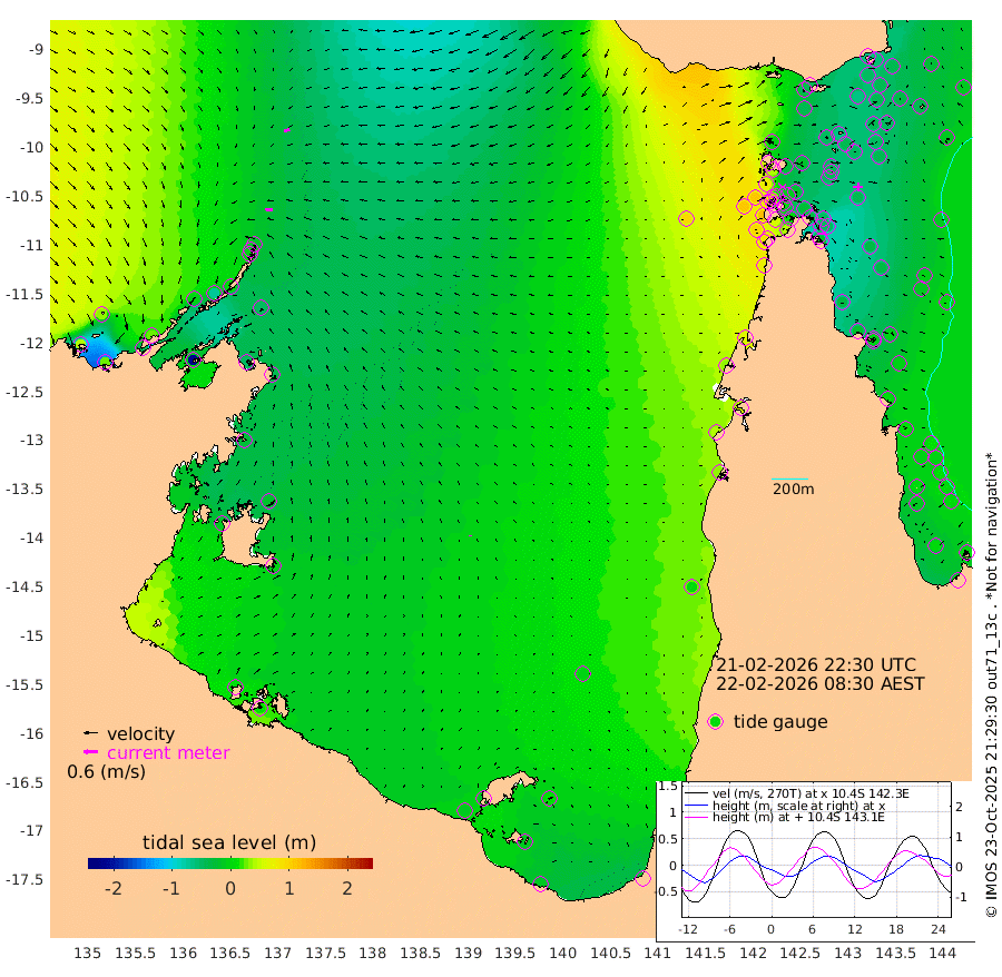 29cm/s -94T +3cm/s rms + 7cm/s -42T. ARA-GOC87 57m 5cm/s -35T +3cm/s rms + 2cm/s -2T. ARA-GOC87 60m 26cm/s -111T +2cm/s rms + 3cm/s 61T. ARA-GOC87 47m -61cm Daru -57cm Bobo Island -14cm Meer Island Barge -25cm Bramble Cay -39cm Unnamed Cay -40cm Pearce Cay -37cm Stephens Island -38cm Merrie England Shoals -49cm Mutacomal Reef -38cm Darnley Island Barge -10cm East Cay -48cm Yorke Island Barge -39cm Rennel Island -45cm Aureed Island -45cm Dungeness Reef -61cm Zagai Island -51cm Yam Island -44cm Dauan Island -43cm Saibai Island -44cm Phipi Reef -64cm Warrior Reef - West -2cm Mabuiag Island Barge -44cm Half Way Island -48cm Coconut Island -43cm Dugong Islet -45cm Poll Island -47cm Kirkcaldie Reef -22cm Suarji Island -48cm Sue Islet 81cm Hawkesbury Island -11cm Alert Patches -22cm Twin Island 55cm Badu Island -29cm St Pauls (Moa Island) 41cm Kubin (Moa Island) 2cm Ince Point 20cm Thursday Island 15cm Nardana Patches 43cm Turtle Head 61cm Round Island 84cm Goods Island 107cm Booby Island 109cm White Rocks Area 93cm Carpentaria -22cm Papou Point 117cm Bampfield Head 75cm Crab Island 96cm Red Wallis Island 58cm Packe Island -46cm Harrington Reef 86cm Herald Camp -19cm Sharp Point 38cm Red Island Point 15cm Possession Island -27cm Alpha Rock -35cm Frederick Point -49cm Wyborn Reef Light -50cm Tetley Island -12cm Triangle Reef -45cm Turtle Head Island -6cm Maclennan Cay 4cm Raine Island -37cm Mcsweeny Reef -32cm Collette Reef -13cm Shadwell Reef -35cm Hannibal Island -20cm Round Point 70cm Vrilya Point -12cm Cape Grenville -14cm Hicks Island -6cm Sir Charles Hardy Island -6cm Harvey Island -1cm Kay Reef 3cm Rocky Island 11cm Chapman Island 8cm Ham Reef 0cm Jubilee Reef -4cm Night Island 8cm Unnamed Reef No. 3 2cm Morris Island 6cm 1st 3 Mile Opening 3cm Creech Reef -8cm Fife Island 5cm Eden Reef 3cm Stanley Island 3cm Normanby River 40cm Yabooma Island 25cm Hutchison River 30cm Elcho Island 31cm North West Crocodile Island -16cm Cape Wessel -3cm Stevens Island -70cm Guluwuru Island 13cm Hopeful Bay -2cm Auster Point -15cm Two Island Bay -45cm Cadell Strait -214cm Mallison Island -48cm Melville Bay (Gove Harbour) -52cm Truant Island -45cm Cape Arnhem -26cm Cape Grey -22cm Hawk Island -8cm Milner Bay (Groote Eylandt) -6cm Cape Beatrice 7cm West Island 8cm Centre Island -18cm Mornington Island -9cm West Wellesley Islands 9cm Bountiful Island -15cm Albert River Mouth -8cm Sweers Island -12cm Karumba -7cm Nassau River Offshore 4cm Christmas Creek 35cm Archer River 42cm Boyd Point 57cm Weipa (Humbug Point) 36cm Pennefather River 67cm Cullen Point