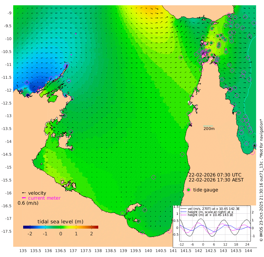 19cm/s -57T +3cm/s rms + 7cm/s -42T. ARA-GOC87 57m 6cm/s 83T +3cm/s rms + 2cm/s -2T. ARA-GOC87 60m 20cm/s -73T +2cm/s rms + 3cm/s 61T. ARA-GOC87 47m -38cm Daru -46cm Bobo Island -49cm Meer Island Barge -51cm Bramble Cay -45cm Unnamed Cay -61cm Pearce Cay -52cm Stephens Island -40cm Merrie England Shoals -31cm Mutacomal Reef -46cm Darnley Island Barge -52cm East Cay -40cm Yorke Island Barge -45cm Rennel Island -47cm Aureed Island -43cm Dungeness Reef -18cm Zagai Island -11cm Yam Island -17cm Dauan Island 5cm Saibai Island -33cm Phipi Reef -21cm Warrior Reef - West -5cm Mabuiag Island Barge -38cm Half Way Island -38cm Coconut Island -34cm Dugong Islet -28cm Poll Island -19cm Kirkcaldie Reef -34cm Suarji Island -13cm Sue Islet -26cm Hawkesbury Island -23cm Alert Patches -19cm Twin Island -33cm Badu Island -17cm St Pauls (Moa Island) -29cm Kubin (Moa Island) -17cm Ince Point -17cm Thursday Island -18cm Nardana Patches -31cm Turtle Head -32cm Round Island -37cm Goods Island -25cm Booby Island -32cm White Rocks Area 21cm Carpentaria -13cm Papou Point -43cm Bampfield Head -7cm Crab Island -14cm Red Wallis Island -25cm Packe Island -38cm Harrington Reef -22cm Herald Camp 11cm Sharp Point -13cm Red Island Point -30cm Possession Island -6cm Alpha Rock -27cm Frederick Point -38cm Wyborn Reef Light -32cm Tetley Island -42cm Triangle Reef -53cm Turtle Head Island -45cm Maclennan Cay -48cm Raine Island -46cm Mcsweeny Reef -42cm Collette Reef -42cm Shadwell Reef -48cm Hannibal Island -56cm Round Point 14cm Vrilya Point -43cm Cape Grenville -52cm Hicks Island -47cm Sir Charles Hardy Island -14cm Harvey Island -43cm Kay Reef -50cm Rocky Island -50cm Chapman Island -41cm Ham Reef -45cm Jubilee Reef -43cm Night Island -42cm Unnamed Reef No. 3 -52cm Morris Island -54cm 1st 3 Mile Opening -48cm Creech Reef -53cm Fife Island -61cm Eden Reef -46cm Stanley Island -54cm Normanby River -170cm Yabooma Island -204cm Hutchison River -167cm Elcho Island -154cm North West Crocodile Island -98cm Cape Wessel -143cm Stevens Island -92cm Guluwuru Island -134cm Hopeful Bay -122cm Auster Point -114cm Two Island Bay -159cm Cadell Strait 4cm Mallison Island -98cm Melville Bay (Gove Harbour) -101cm Truant Island -64cm Cape Arnhem -44cm Cape Grey -34cm Hawk Island -3cm Milner Bay (Groote Eylandt) 5cm Cape Beatrice 44cm West Island 46cm Centre Island 16cm Mornington Island 19cm West Wellesley Islands -16cm Bountiful Island -12cm Albert River Mouth -28cm Sweers Island -11cm Karumba 6cm Nassau River Offshore 4cm Christmas Creek -5cm Archer River -2cm Boyd Point -16cm Weipa (Humbug Point) 9cm Pennefather River 8cm Cullen Point