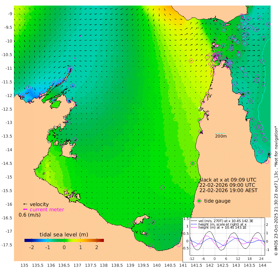 23cm/s -82T +3cm/s rms + 7cm/s -42T. ARA-GOC87 57m 8cm/s 19T +3cm/s rms + 2cm/s -2T. ARA-GOC87 60m 23cm/s -101T +2cm/s rms + 3cm/s 61T. ARA-GOC87 47m -83cm Daru -88cm Bobo Island -64cm Meer Island Barge -71cm Bramble Cay -78cm Unnamed Cay -88cm Pearce Cay -80cm Stephens Island -69cm Merrie England Shoals -70cm Mutacomal Reef -79cm Darnley Island Barge -63cm East Cay -81cm Yorke Island Barge -77cm Rennel Island -84cm Aureed Island -78cm Dungeness Reef -69cm Zagai Island -55cm Yam Island -58cm Dauan Island -45cm Saibai Island -67cm Phipi Reef -73cm Warrior Reef - West -21cm Mabuiag Island Barge -69cm Half Way Island -74cm Coconut Island -71cm Dugong Islet -64cm Poll Island -56cm Kirkcaldie Reef -65cm Suarji Island -60cm Sue Islet 20cm Hawkesbury Island -43cm Alert Patches -43cm Twin Island 1cm Badu Island -47cm St Pauls (Moa Island) -7cm Kubin (Moa Island) -25cm Ince Point -11cm Thursday Island -16cm Nardana Patches -8cm Turtle Head -2cm Round Island 14cm Goods Island 41cm Booby Island 36cm White Rocks Area 65cm Carpentaria -36cm Papou Point 16cm Bampfield Head 49cm Crab Island 48cm Red Wallis Island 14cm Packe Island -75cm Harrington Reef 22cm Herald Camp -5cm Sharp Point 9cm Red Island Point -31cm Possession Island -38cm Alpha Rock -58cm Frederick Point -78cm Wyborn Reef Light -73cm Tetley Island -55cm Triangle Reef -86cm Turtle Head Island -57cm Maclennan Cay -47cm Raine Island -76cm Mcsweeny Reef -70cm Collette Reef -57cm Shadwell Reef -77cm Hannibal Island -71cm Round Point 67cm Vrilya Point -58cm Cape Grenville -65cm Hicks Island -65cm Sir Charles Hardy Island -20cm Harvey Island -52cm Kay Reef -55cm Rocky Island -48cm Chapman Island -44cm Ham Reef -51cm Jubilee Reef -47cm Night Island -42cm Unnamed Reef No. 3 -56cm Morris Island -55cm 1st 3 Mile Opening -51cm Creech Reef -58cm Fife Island -62cm Eden Reef -50cm Stanley Island -57cm Normanby River -106cm Yabooma Island -147cm Hutchison River -110cm Elcho Island -97cm North West Crocodile Island -92cm Cape Wessel -107cm Stevens Island -127cm Guluwuru Island -95cm Hopeful Bay -100cm Auster Point -98cm Two Island Bay -144cm Cadell Strait -123cm Mallison Island -116cm Melville Bay (Gove Harbour) -121cm Truant Island -85cm Cape Arnhem -62cm Cape Grey -46cm Hawk Island -8cm Milner Bay (Groote Eylandt) 1cm Cape Beatrice 39cm West Island 45cm Centre Island 8cm Mornington Island 12cm West Wellesley Islands -18cm Bountiful Island -5cm Albert River Mouth -20cm Sweers Island -1cm Karumba 12cm Nassau River Offshore 13cm Christmas Creek 23cm Archer River 21cm Boyd Point 19cm Weipa (Humbug Point) 44cm Pennefather River 52cm Cullen Point