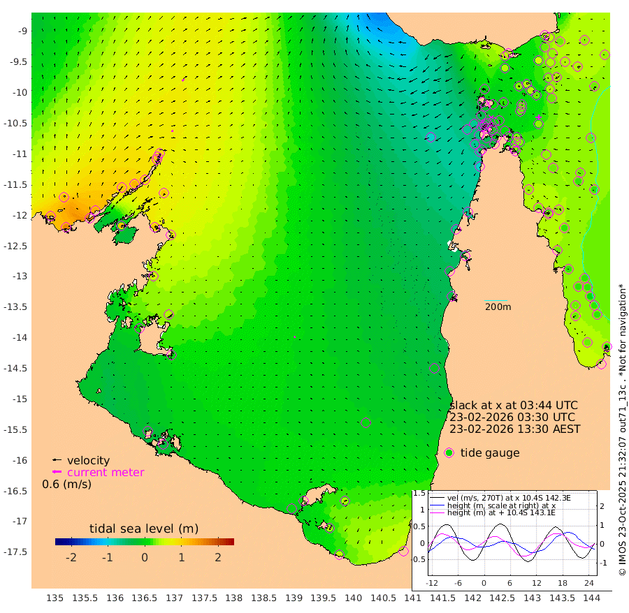 14cm/s 66T +3cm/s rms + 7cm/s -42T. ARA-GOC87 57m 9cm/s -121T +3cm/s rms + 2cm/s -2T. ARA-GOC87 60m 20cm/s 51T +2cm/s rms + 3cm/s 61T. ARA-GOC87 47m 43cm Daru 48cm Bobo Island 30cm Meer Island Barge 33cm Bramble Cay 34cm Unnamed Cay 44cm Pearce Cay 38cm Stephens Island 23cm Merrie England Shoals 29cm Mutacomal Reef 38cm Darnley Island Barge 32cm East Cay 41cm Yorke Island Barge 37cm Rennel Island 41cm Aureed Island 38cm Dungeness Reef 43cm Zagai Island 37cm Yam Island 50cm Dauan Island 42cm Saibai Island 44cm Phipi Reef 53cm Warrior Reef - West 5cm Mabuiag Island Barge 30cm Half Way Island 30cm Coconut Island 33cm Dugong Islet 29cm Poll Island 24cm Kirkcaldie Reef 22cm Suarji Island 29cm Sue Islet -39cm Hawkesbury Island -1cm Alert Patches 7cm Twin Island -29cm Badu Island 13cm St Pauls (Moa Island) -18cm Kubin (Moa Island) -7cm Ince Point -21cm Thursday Island -15cm Nardana Patches -25cm Turtle Head -29cm Round Island -46cm Goods Island -74cm Booby Island -68cm White Rocks Area -96cm Carpentaria 13cm Papou Point -67cm Bampfield Head -71cm Crab Island -72cm Red Wallis Island -43cm Packe Island 28cm Harrington Reef -42cm Herald Camp 1cm Sharp Point -24cm Red Island Point -8cm Possession Island 8cm Alpha Rock 19cm Frederick Point 32cm Wyborn Reef Light 30cm Tetley Island 25cm Triangle Reef 31cm Turtle Head Island 26cm Maclennan Cay 18cm Raine Island 32cm Mcsweeny Reef 28cm Collette Reef 22cm Shadwell Reef 30cm Hannibal Island 29cm Round Point -91cm Vrilya Point 20cm Cape Grenville 32cm Hicks Island 35cm Sir Charles Hardy Island 9cm Harvey Island 16cm Kay Reef 24cm Rocky Island 18cm Chapman Island 19cm Ham Reef 22cm Jubilee Reef 17cm Night Island 14cm Unnamed Reef No. 3 23cm Morris Island 19cm 1st 3 Mile Opening 19cm Creech Reef 27cm Fife Island 27cm Eden Reef 16cm Stanley Island 27cm Normanby River 121cm Yabooma Island 156cm Hutchison River 123cm Elcho Island 119cm North West Crocodile Island 97cm Cape Wessel 112cm Stevens Island 122cm Guluwuru Island 100cm Hopeful Bay 98cm Auster Point 109cm Two Island Bay 158cm Cadell Strait 106cm Mallison Island 107cm Melville Bay (Gove Harbour) 109cm Truant Island 75cm Cape Arnhem 55cm Cape Grey 41cm Hawk Island 8cm Milner Bay (Groote Eylandt) 7cm Cape Beatrice -28cm West Island -37cm Centre Island 9cm Mornington Island 6cm West Wellesley Islands 40cm Bountiful Island 49cm Albert River Mouth 42cm Sweers Island 43cm Karumba 1cm Nassau River Offshore -10cm Christmas Creek -35cm Archer River -37cm Boyd Point -35cm Weipa (Humbug Point) -70cm Pennefather River -68cm Cullen Point