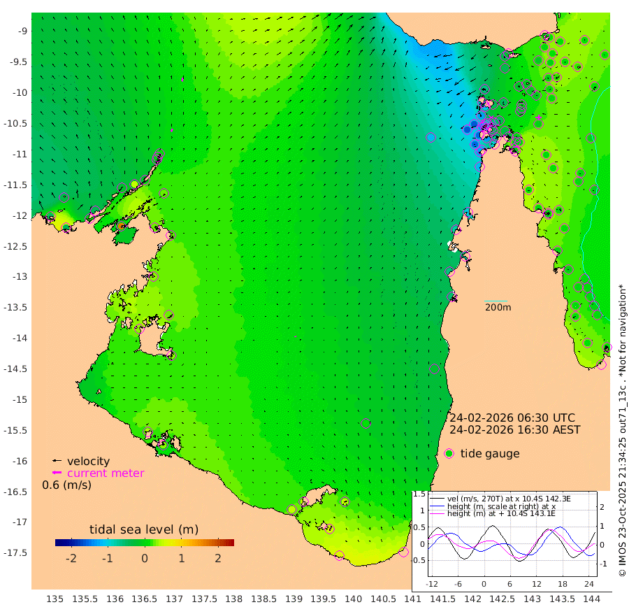 19cm/s 22T +3cm/s rms + 7cm/s -42T. ARA-GOC87 57m 6cm/s -18T +3cm/s rms + 2cm/s -2T. ARA-GOC87 60m 23cm/s 20T +2cm/s rms + 3cm/s 61T. ARA-GOC87 47m 6cm Daru 11cm Bobo Island 13cm Meer Island Barge 11cm Bramble Cay 9cm Unnamed Cay -1cm Pearce Cay 11cm Stephens Island 8cm Merrie England Shoals 2cm Mutacomal Reef 20cm Darnley Island Barge 10cm East Cay 16cm Yorke Island Barge -1cm Rennel Island 5cm Aureed Island -11cm Dungeness Reef -10cm Zagai Island -16cm Yam Island -41cm Dauan Island -22cm Saibai Island -43cm Phipi Reef -14cm Warrior Reef - West -64cm Mabuiag Island Barge 3cm Half Way Island -13cm Coconut Island -1cm Dugong Islet -22cm Poll Island -15cm Kirkcaldie Reef -48cm Suarji Island -6cm Sue Islet -134cm Hawkesbury Island -63cm Alert Patches -52cm Twin Island -132cm Badu Island -52cm St Pauls (Moa Island) -107cm Kubin (Moa Island) -75cm Ince Point -91cm Thursday Island -87cm Nardana Patches -112cm Turtle Head -113cm Round Island -142cm Goods Island -158cm Booby Island -158cm White Rocks Area -118cm Carpentaria -44cm Papou Point -155cm Bampfield Head -130cm Crab Island -150cm Red Wallis Island -128cm Packe Island -9cm Harrington Reef -124cm Herald Camp -4cm Sharp Point -91cm Red Island Point -73cm Possession Island -32cm Alpha Rock -32cm Frederick Point -6cm Wyborn Reef Light -11cm Tetley Island -1cm Triangle Reef -13cm Turtle Head Island 4cm Maclennan Cay -2cm Raine Island 5cm Mcsweeny Reef 8cm Collette Reef 7cm Shadwell Reef 12cm Hannibal Island 3cm Round Point -119cm Vrilya Point 8cm Cape Grenville 9cm Hicks Island 12cm Sir Charles Hardy Island 4cm Harvey Island 8cm Kay Reef 5cm Rocky Island -3cm Chapman Island 5cm Ham Reef 7cm Jubilee Reef 2cm Night Island 0cm Unnamed Reef No. 3 4cm Morris Island -2cm 1st 3 Mile Opening 3cm Creech Reef 5cm Fife Island 10cm Eden Reef 7cm Stanley Island 13cm Normanby River -46cm Yabooma Island -43cm Hutchison River -38cm Elcho Island -36cm North West Crocodile Island 9cm Cape Wessel -19cm Stevens Island 49cm Guluwuru Island -17cm Hopeful Bay -8cm Auster Point 7cm Two Island Bay 9cm Cadell Strait 158cm Mallison Island 27cm Melville Bay (Gove Harbour) 27cm Truant Island 26cm Cape Arnhem 30cm Cape Grey 28cm Hawk Island 32cm Milner Bay (Groote Eylandt) 31cm Cape Beatrice 38cm West Island 35cm Centre Island 47cm Mornington Island 46cm West Wellesley Islands 48cm Bountiful Island 61cm Albert River Mouth 65cm Sweers Island 55cm Karumba 11cm Nassau River Offshore -16cm Christmas Creek -56cm Archer River -65cm Boyd Point -79cm Weipa (Humbug Point) -81cm Pennefather River -101cm Cullen Point