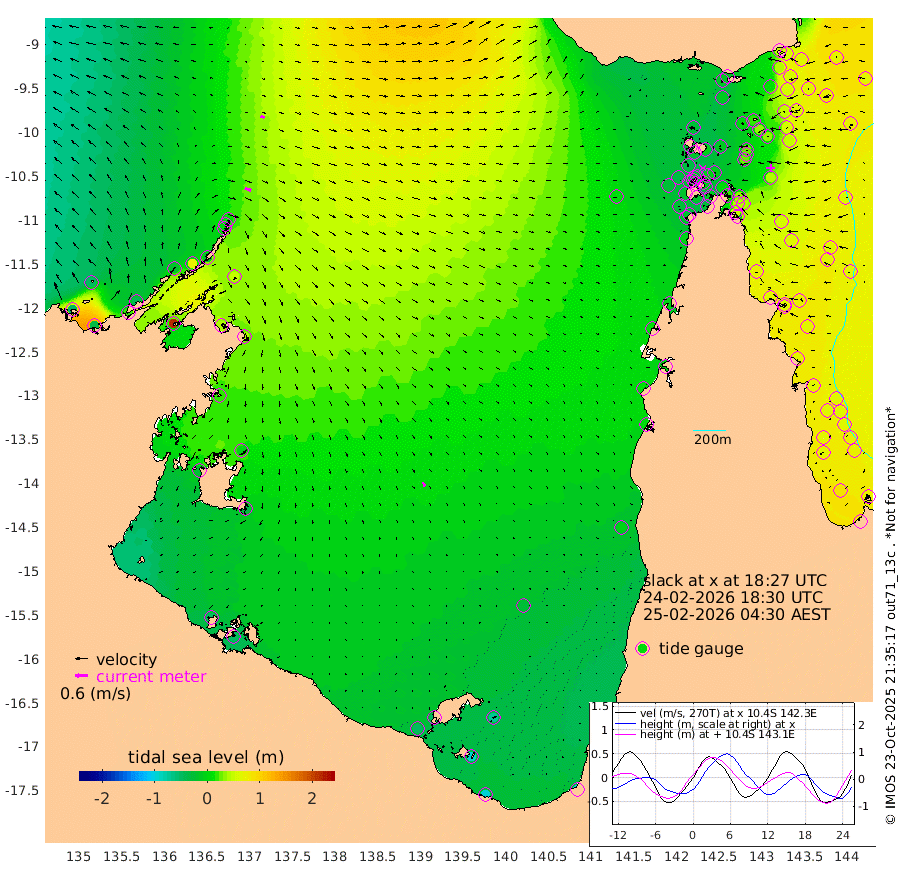 31cm/s 108T +3cm/s rms + 7cm/s -42T. ARA-GOC87 57m 22cm/s 155T +3cm/s rms + 2cm/s -2T. ARA-GOC87 60m 22cm/s 103T +2cm/s rms + 3cm/s 61T. ARA-GOC87 47m 47cm Daru 53cm Bobo Island 72cm Meer Island Barge 66cm Bramble Cay 59cm Unnamed Cay 58cm Pearce Cay 66cm Stephens Island 61cm Merrie England Shoals 41cm Mutacomal Reef 75cm Darnley Island Barge 66cm East Cay 63cm Yorke Island Barge 46cm Rennel Island 54cm Aureed Island 36cm Dungeness Reef 15cm Zagai Island 3cm Yam Island -12cm Dauan Island -9cm Saibai Island -12cm Phipi Reef 10cm Warrior Reef - West -27cm Mabuiag Island Barge 52cm Half Way Island 37cm Coconut Island 44cm Dugong Islet 18cm Poll Island 24cm Kirkcaldie Reef -8cm Suarji Island 24cm Sue Islet -35cm Hawkesbury Island -3cm Alert Patches -1cm Twin Island -28cm Badu Island -7cm St Pauls (Moa Island) -22cm Kubin (Moa Island) -13cm Ince Point -17cm Thursday Island -17cm Nardana Patches -19cm Turtle Head -31cm Round Island -22cm Goods Island -23cm Booby Island -36cm White Rocks Area 3cm Carpentaria -8cm Papou Point -21cm Bampfield Head -19cm Crab Island -28cm Red Wallis Island -21cm Packe Island 39cm Harrington Reef -32cm Herald Camp -6cm Sharp Point -27cm Red Island Point -14cm Possession Island 2cm Alpha Rock 16cm Frederick Point 39cm Wyborn Reef Light 32cm Tetley Island 53cm Triangle Reef 52cm Turtle Head Island 60cm Maclennan Cay 61cm Raine Island 59cm Mcsweeny Reef 61cm Collette Reef 63cm Shadwell Reef 70cm Hannibal Island 63cm Round Point -4cm Vrilya Point 63cm Cape Grenville 63cm Hicks Island 69cm Sir Charles Hardy Island 20cm Harvey Island 66cm Kay Reef 63cm Rocky Island 60cm Chapman Island 61cm Ham Reef 66cm Jubilee Reef 60cm Night Island 61cm Unnamed Reef No. 3 67cm Morris Island 69cm 1st 3 Mile Opening 68cm Creech Reef 65cm Fife Island 83cm Eden Reef 71cm Stanley Island 70cm Normanby River -48cm Yabooma Island -33cm Hutchison River -39cm Elcho Island -52cm North West Crocodile Island 15cm Cape Wessel -17cm Stevens Island 71cm Guluwuru Island -19cm Hopeful Bay 1cm Auster Point 6cm Two Island Bay 22cm Cadell Strait 211cm Mallison Island 45cm Melville Bay (Gove Harbour) 52cm Truant Island 41cm Cape Arnhem 15cm Cape Grey -1cm Hawk Island -27cm Milner Bay (Groote Eylandt) -32cm Cape Beatrice -51cm West Island -50cm Centre Island -46cm Mornington Island -47cm West Wellesley Islands -71cm Bountiful Island -96cm Albert River Mouth -97cm Sweers Island -99cm Karumba -27cm Nassau River Offshore -3cm Christmas Creek 5cm Archer River 11cm Boyd Point 2cm Weipa (Humbug Point) 12cm Pennefather River -7cm Cullen Point