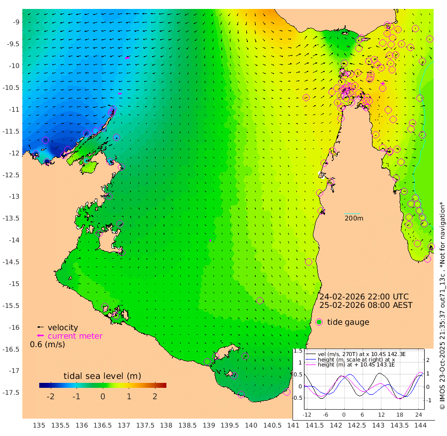 30cm/s -91T +3cm/s rms + 7cm/s -42T. ARA-GOC87 57m 22cm/s 163T +3cm/s rms + 2cm/s -2T. ARA-GOC87 60m 39cm/s -99T +2cm/s rms + 3cm/s 61T. ARA-GOC87 47m 82cm Daru 69cm Bobo Island 45cm Meer Island Barge 62cm Bramble Cay 87cm Unnamed Cay 71cm Pearce Cay 74cm Stephens Island 93cm Merrie England Shoals 99cm Mutacomal Reef 67cm Darnley Island Barge 49cm East Cay 74cm Yorke Island Barge 85cm Rennel Island 74cm Aureed Island 85cm Dungeness Reef 62cm Zagai Island 73cm Yam Island 44cm Dauan Island 43cm Saibai Island 56cm Phipi Reef 64cm Warrior Reef - West 65cm Mabuiag Island Barge 86cm Half Way Island 86cm Coconut Island 94cm Dugong Islet 85cm Poll Island 93cm Kirkcaldie Reef 96cm Suarji Island 85cm Sue Islet 86cm Hawkesbury Island 108cm Alert Patches 97cm Twin Island 74cm Badu Island 92cm St Pauls (Moa Island) 80cm Kubin (Moa Island) 94cm Ince Point 95cm Thursday Island 94cm Nardana Patches 94cm Turtle Head 84cm Round Island 90cm Goods Island 96cm Booby Island 97cm White Rocks Area 100cm Carpentaria 73cm Papou Point 105cm Bampfield Head 73cm Crab Island 94cm Red Wallis Island 95cm Packe Island 102cm Harrington Reef 92cm Herald Camp 27cm Sharp Point 72cm Red Island Point 88cm Possession Island 95cm Alpha Rock 96cm Frederick Point 92cm Wyborn Reef Light 92cm Tetley Island 49cm Triangle Reef 93cm Turtle Head Island 52cm Maclennan Cay 35cm Raine Island 80cm Mcsweeny Reef 75cm Collette Reef 54cm Shadwell Reef 80cm Hannibal Island 67cm Round Point 81cm Vrilya Point 71cm Cape Grenville 53cm Hicks Island 59cm Sir Charles Hardy Island 19cm Harvey Island 63cm Kay Reef 44cm Rocky Island 40cm Chapman Island 39cm Ham Reef 42cm Jubilee Reef 44cm Night Island 43cm Unnamed Reef No. 3 47cm Morris Island 46cm 1st 3 Mile Opening 47cm Creech Reef 39cm Fife Island 43cm Eden Reef 54cm Stanley Island 48cm Normanby River -177cm Yabooma Island -205cm Hutchison River -183cm Elcho Island -179cm North West Crocodile Island -128cm Cape Wessel -166cm Stevens Island -120cm Guluwuru Island -150cm Hopeful Bay -135cm Auster Point -149cm Two Island Bay -203cm Cadell Strait -89cm Mallison Island -111cm Melville Bay (Gove Harbour) -115cm Truant Island -75cm Cape Arnhem -52cm Cape Grey -40cm Hawk Island -27cm Milner Bay (Groote Eylandt) -14cm Cape Beatrice 22cm West Island 23cm Centre Island 9cm Mornington Island 20cm West Wellesley Islands -5cm Bountiful Island -53cm Albert River Mouth -54cm Sweers Island -42cm Karumba 29cm Nassau River Offshore 51cm Christmas Creek 57cm Archer River 64cm Boyd Point 61cm Weipa (Humbug Point) 66cm Pennefather River 73cm Cullen Point
