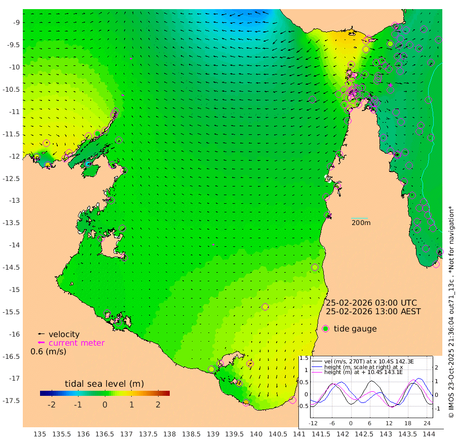 21cm/s -80T +3cm/s rms + 7cm/s -42T. ARA-GOC87 57m 16cm/s -106T +3cm/s rms + 2cm/s -2T. ARA-GOC87 60m 17cm/s -74T +2cm/s rms + 3cm/s 61T. ARA-GOC87 47m -31cm Daru -34cm Bobo Island -33cm Meer Island Barge -42cm Bramble Cay -47cm Unnamed Cay -35cm Pearce Cay -44cm Stephens Island -59cm Merrie England Shoals -44cm Mutacomal Reef -44cm Darnley Island Barge -33cm East Cay -39cm Yorke Island Barge -34cm Rennel Island -29cm Aureed Island -16cm Dungeness Reef 12cm Zagai Island 9cm Yam Island 77cm Dauan Island 58cm Saibai Island 72cm Phipi Reef 31cm Warrior Reef - West 38cm Mabuiag Island Barge -47cm Half Way Island -27cm Coconut Island -38cm Dugong Islet -11cm Poll Island -24cm Kirkcaldie Reef 22cm Suarji Island -16cm Sue Islet 31cm Hawkesbury Island 3cm Alert Patches -2cm Twin Island 44cm Badu Island 10cm St Pauls (Moa Island) 31cm Kubin (Moa Island) 13cm Ince Point 14cm Thursday Island 17cm Nardana Patches 31cm Turtle Head 36cm Round Island 34cm Goods Island 22cm Booby Island 24cm White Rocks Area -24cm Carpentaria 4cm Papou Point 28cm Bampfield Head 11cm Crab Island 19cm Red Wallis Island 26cm Packe Island -43cm Harrington Reef 41cm Herald Camp 0cm Sharp Point 18cm Red Island Point 14cm Possession Island -13cm Alpha Rock -17cm Frederick Point -38cm Wyborn Reef Light -33cm Tetley Island -20cm Triangle Reef -52cm Turtle Head Island -28cm Maclennan Cay -22cm Raine Island -41cm Mcsweeny Reef -41cm Collette Reef -31cm Shadwell Reef -50cm Hannibal Island -43cm Round Point -19cm Vrilya Point -45cm Cape Grenville -32cm Hicks Island -26cm Sir Charles Hardy Island -13cm Harvey Island -44cm Kay Reef -25cm Rocky Island -21cm Chapman Island -25cm Ham Reef -29cm Jubilee Reef -27cm Night Island -28cm Unnamed Reef No. 3 -30cm Morris Island -25cm 1st 3 Mile Opening -30cm Creech Reef -26cm Fife Island -35cm Eden Reef -39cm Stanley Island -41cm Normanby River 79cm Yabooma Island 97cm Hutchison River 81cm Elcho Island 81cm North West Crocodile Island 19cm Cape Wessel 46cm Stevens Island 9cm Guluwuru Island 51cm Hopeful Bay 32cm Auster Point 28cm Two Island Bay 51cm Cadell Strait -102cm Mallison Island 22cm Melville Bay (Gove Harbour) 16cm Truant Island 12cm Cape Arnhem 13cm Cape Grey 22cm Hawk Island 9cm Milner Bay (Groote Eylandt) 16cm Cape Beatrice 3cm West Island 0cm Centre Island 55cm Mornington Island 49cm West Wellesley Islands 100cm Bountiful Island 121cm Albert River Mouth 113cm Sweers Island 120cm Karumba 53cm Nassau River Offshore 40cm Christmas Creek 21cm Archer River 14cm Boyd Point 32cm Weipa (Humbug Point) -20cm Pennefather River 5cm Cullen Point