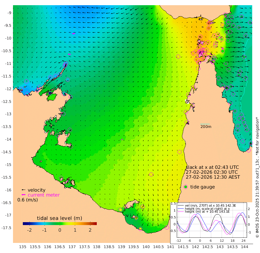 44cm/s -90T +3cm/s rms + 7cm/s -42T. ARA-GOC87 57m 21cm/s -157T +3cm/s rms + 2cm/s -2T. ARA-GOC87 60m 47cm/s -95T +2cm/s rms + 3cm/s 61T. ARA-GOC87 47m 13cm Daru -11cm Bobo Island -55cm Meer Island Barge -51cm Bramble Cay -25cm Unnamed Cay -21cm Pearce Cay -37cm Stephens Island -37cm Merrie England Shoals 4cm Mutacomal Reef -43cm Darnley Island Barge -56cm East Cay -18cm Yorke Island Barge -2cm Rennel Island -4cm Aureed Island 35cm Dungeness Reef 84cm Zagai Island 89cm Yam Island 166cm Dauan Island 142cm Saibai Island 160cm Phipi Reef 109cm Warrior Reef - West 135cm Mabuiag Island Barge -12cm Half Way Island 28cm Coconut Island 10cm Dugong Islet 60cm Poll Island 51cm Kirkcaldie Reef 113cm Suarji Island 55cm Sue Islet 127cm Hawkesbury Island 108cm Alert Patches 95cm Twin Island 144cm Badu Island 116cm St Pauls (Moa Island) 123cm Kubin (Moa Island) 117cm Ince Point 120cm Thursday Island 123cm Nardana Patches 132cm Turtle Head 123cm Round Island 127cm Goods Island 123cm Booby Island 120cm White Rocks Area 75cm Carpentaria 89cm Papou Point 116cm Bampfield Head 102cm Crab Island 122cm Red Wallis Island 126cm Packe Island 14cm Harrington Reef 131cm Herald Camp 39cm Sharp Point 105cm Red Island Point 100cm Possession Island 74cm Alpha Rock 62cm Frederick Point 12cm Wyborn Reef Light 26cm Tetley Island -24cm Triangle Reef -6cm Turtle Head Island -39cm Maclennan Cay -47cm Raine Island -22cm Mcsweeny Reef -29cm Collette Reef -39cm Shadwell Reef -42cm Hannibal Island -50cm Round Point 79cm Vrilya Point -49cm Cape Grenville -48cm Hicks Island -43cm Sir Charles Hardy Island -15cm Harvey Island -62cm Kay Reef -51cm Rocky Island -51cm Chapman Island -53cm Ham Reef -53cm Jubilee Reef -45cm Night Island -52cm Unnamed Reef No. 3 -57cm Morris Island -48cm 1st 3 Mile Opening -53cm Creech Reef -53cm Fife Island -78cm Eden Reef -64cm Stanley Island -78cm Normanby River -96cm Yabooma Island -105cm Hutchison River -95cm Elcho Island -85cm North West Crocodile Island -112cm Cape Wessel -114cm Stevens Island -118cm Guluwuru Island -104cm Hopeful Bay -107cm Auster Point -118cm Two Island Bay -135cm Cadell Strait -213cm Mallison Island -94cm Melville Bay (Gove Harbour) -105cm Truant Island -66cm Cape Arnhem -44cm Cape Grey -25cm Hawk Island -18cm Milner Bay (Groote Eylandt) 1cm Cape Beatrice 22cm West Island 21cm Centre Island 59cm Mornington Island 56cm West Wellesley Islands 76cm Bountiful Island 79cm Albert River Mouth 57cm Sweers Island 89cm Karumba 76cm Nassau River Offshore 81cm Christmas Creek 69cm Archer River 71cm Boyd Point 83cm Weipa (Humbug Point) 55cm Pennefather River 85cm Cullen Point