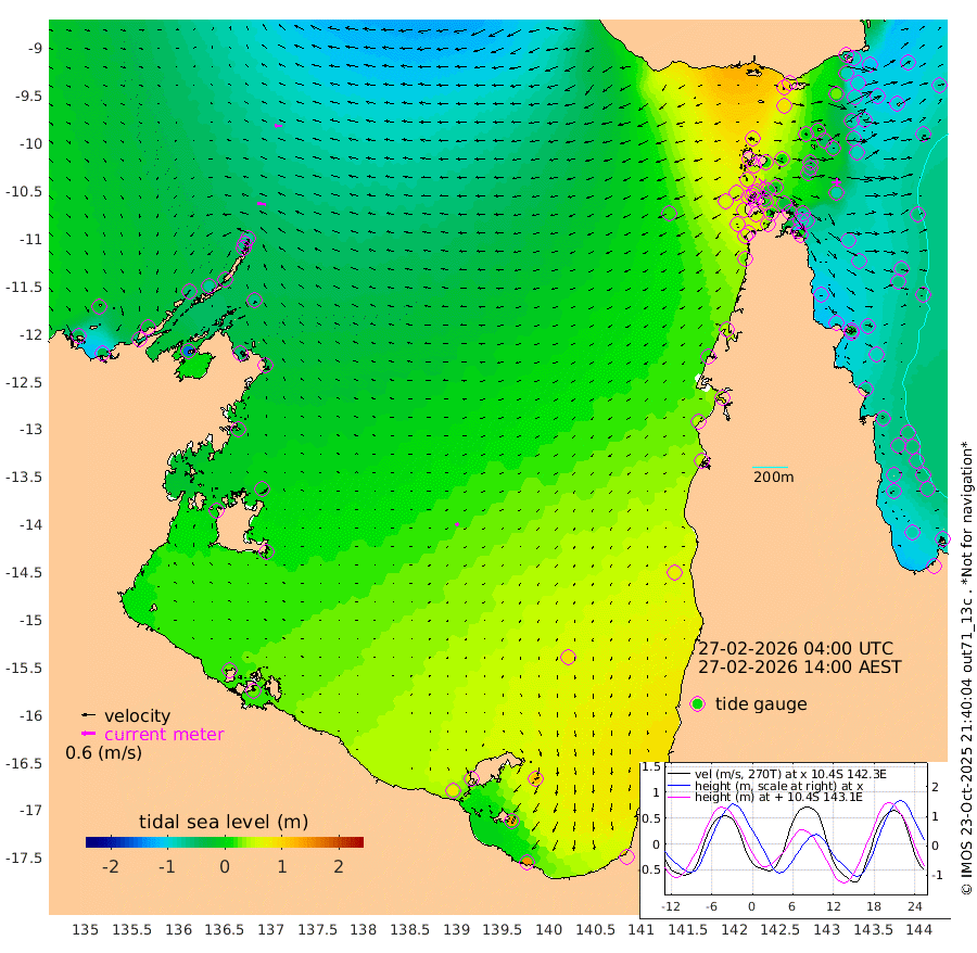 36cm/s -84T +3cm/s rms + 7cm/s -42T. ARA-GOC87 57m 18cm/s -124T +3cm/s rms + 2cm/s -2T. ARA-GOC87 60m 34cm/s -87T +2cm/s rms + 3cm/s 61T. ARA-GOC87 47m -70cm Daru -83cm Bobo Island -74cm Meer Island Barge -91cm Bramble Cay -94cm Unnamed Cay -89cm Pearce Cay -96cm Stephens Island -107cm Merrie England Shoals -85cm Mutacomal Reef -90cm Darnley Island Barge -81cm East Cay -81cm Yorke Island Barge -79cm Rennel Island -73cm Aureed Island -49cm Dungeness Reef 3cm Zagai Island 0cm Yam Island 99cm Dauan Island 80cm Saibai Island 90cm Phipi Reef 26cm Warrior Reef - West 57cm Mabuiag Island Barge -90cm Half Way Island -60cm Coconut Island -78cm Dugong Islet -34cm Poll Island -45cm Kirkcaldie Reef 11cm Suarji Island -33cm Sue Islet 48cm Hawkesbury Island 1cm Alert Patches -9cm Twin Island 69cm Badu Island 10cm St Pauls (Moa Island) 42cm Kubin (Moa Island) 21cm Ince Point 27cm Thursday Island 29cm Nardana Patches 48cm Turtle Head 49cm Round Island 55cm Goods Island 55cm Booby Island 46cm White Rocks Area 17cm Carpentaria -1cm Papou Point 46cm Bampfield Head 48cm Crab Island 51cm Red Wallis Island 46cm Packe Island -86cm Harrington Reef 63cm Herald Camp 8cm Sharp Point 32cm Red Island Point 13cm Possession Island -23cm Alpha Rock -39cm Frederick Point -80cm Wyborn Reef Light -70cm Tetley Island -53cm Triangle Reef -102cm Turtle Head Island -66cm Maclennan Cay -54cm Raine Island -86cm Mcsweeny Reef -83cm Collette Reef -64cm Shadwell Reef -98cm Hannibal Island -95cm Round Point 25cm Vrilya Point -89cm Cape Grenville -78cm Hicks Island -69cm Sir Charles Hardy Island -27cm Harvey Island -87cm Kay Reef -64cm Rocky Island -58cm Chapman Island -59cm Ham Reef -65cm Jubilee Reef -60cm Night Island -61cm Unnamed Reef No. 3 -71cm Morris Island -59cm 1st 3 Mile Opening -66cm Creech Reef -68cm Fife Island -82cm Eden Reef -79cm Stanley Island -93cm Normanby River -34cm Yabooma Island -33cm Hutchison River -26cm Elcho Island -21cm North West Crocodile Island -69cm Cape Wessel -58cm Stevens Island -71cm Guluwuru Island -44cm Hopeful Bay -61cm Auster Point -66cm Two Island Bay -66cm Cadell Strait -152cm Mallison Island -53cm Melville Bay (Gove Harbour) -64cm Truant Island -36cm Cape Arnhem -21cm Cape Grey -3cm Hawk Island 3cm Milner Bay (Groote Eylandt) 17cm Cape Beatrice 26cm West Island 28cm Centre Island 83cm Mornington Island 76cm West Wellesley Islands 115cm Bountiful Island 146cm Albert River Mouth 128cm Sweers Island 147cm Karumba 85cm Nassau River Offshore 74cm Christmas Creek 52cm Archer River 44cm Boyd Point 61cm Weipa (Humbug Point) 18cm Pennefather River 44cm Cullen Point