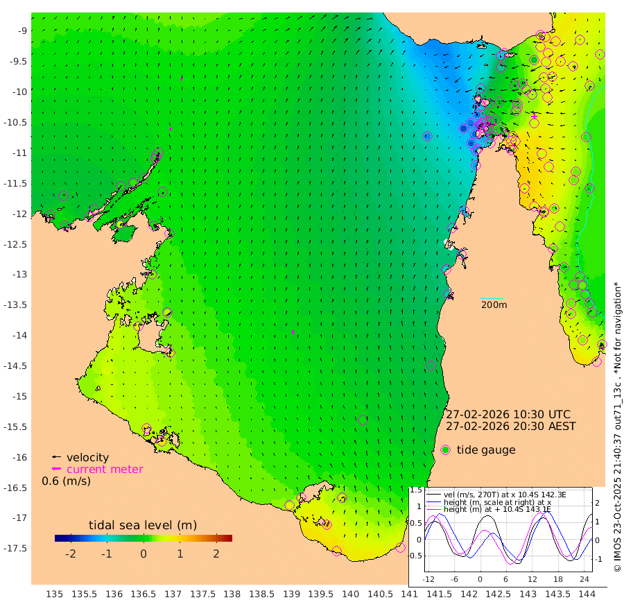 20cm/s 21T +3cm/s rms + 7cm/s -42T. ARA-GOC87 57m 28cm/s -3T +3cm/s rms + 2cm/s -2T. ARA-GOC87 60m 24cm/s 32T +2cm/s rms + 3cm/s 61T. ARA-GOC87 47m 55cm Daru 62cm Bobo Island 35cm Meer Island Barge 57cm Bramble Cay 68cm Unnamed Cay 57cm Pearce Cay 64cm Stephens Island 78cm Merrie England Shoals 67cm Mutacomal Reef 56cm Darnley Island Barge 43cm East Cay 55cm Yorke Island Barge 57cm Rennel Island 52cm Aureed Island 34cm Dungeness Reef -6cm Zagai Island -5cm Yam Island -98cm Dauan Island -83cm Saibai Island -70cm Phipi Reef -22cm Warrior Reef - West -83cm Mabuiag Island Barge 62cm Half Way Island 40cm Coconut Island 54cm Dugong Islet 19cm Poll Island 28cm Kirkcaldie Reef -12cm Suarji Island 17cm Sue Islet -147cm Hawkesbury Island -28cm Alert Patches -17cm Twin Island -151cm Badu Island -30cm St Pauls (Moa Island) -111cm Kubin (Moa Island) -58cm Ince Point -78cm Thursday Island -75cm Nardana Patches -110cm Turtle Head -111cm Round Island -150cm Goods Island -170cm Booby Island -149cm White Rocks Area -136cm Carpentaria -24cm Papou Point -155cm Bampfield Head -142cm Crab Island -157cm Red Wallis Island -125cm Packe Island 64cm Harrington Reef -142cm Herald Camp -1cm Sharp Point -89cm Red Island Point -46cm Possession Island 3cm Alpha Rock 15cm Frederick Point 56cm Wyborn Reef Light 47cm Tetley Island 18cm Triangle Reef 59cm Turtle Head Island 29cm Maclennan Cay 13cm Raine Island 57cm Mcsweeny Reef 55cm Collette Reef 30cm Shadwell Reef 67cm Hannibal Island 58cm Round Point -129cm Vrilya Point 54cm Cape Grenville 43cm Hicks Island 28cm Sir Charles Hardy Island 17cm Harvey Island 46cm Kay Reef 25cm Rocky Island 15cm Chapman Island 15cm Ham Reef 21cm Jubilee Reef 25cm Night Island 17cm Unnamed Reef No. 3 29cm Morris Island 15cm 1st 3 Mile Opening 22cm Creech Reef 31cm Fife Island 31cm Eden Reef 35cm Stanley Island 49cm Normanby River -12cm Yabooma Island -20cm Hutchison River -14cm Elcho Island -11cm North West Crocodile Island 13cm Cape Wessel 11cm Stevens Island 15cm Guluwuru Island 8cm Hopeful Bay 11cm Auster Point 12cm Two Island Bay -1cm Cadell Strait 58cm Mallison Island 13cm Melville Bay (Gove Harbour) 13cm Truant Island 12cm Cape Arnhem 32cm Cape Grey 40cm Hawk Island 67cm Milner Bay (Groote Eylandt) 62cm Cape Beatrice 84cm West Island 86cm Centre Island 69cm Mornington Island 74cm West Wellesley Islands 69cm Bountiful Island 87cm Albert River Mouth 117cm Sweers Island 82cm Karumba 14cm Nassau River Offshore -33cm Christmas Creek -75cm Archer River -93cm Boyd Point -107cm Weipa (Humbug Point) -86cm Pennefather River -124cm Cullen Point
